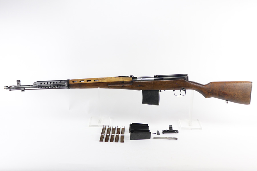 10/15/21 – This is a nice example of an early Russian SVT-40 that was made in 1940 at the Izhevsk factory, and later captured by the Finns as indicated by ‘SA’ marking on receiver. It’s a non-import example, though was obviously re-worked after captured. Mismatched numbers throughout, but stock is an original example and still features that Tula factory marking. Magazine has the Izhevsk factory marking but is also SA marked. Bore has pronounced rifling but notable frost throughout. This rifle also came to us with a small variety of additional parts, such as a spare extractor, rear sight parts, etc. They’ll all be included in the sale. We also have 10 boxes of vintage 7.62x54R ammo that can be purchased separately (15rd boxes).
