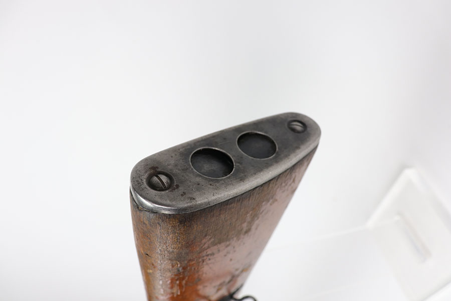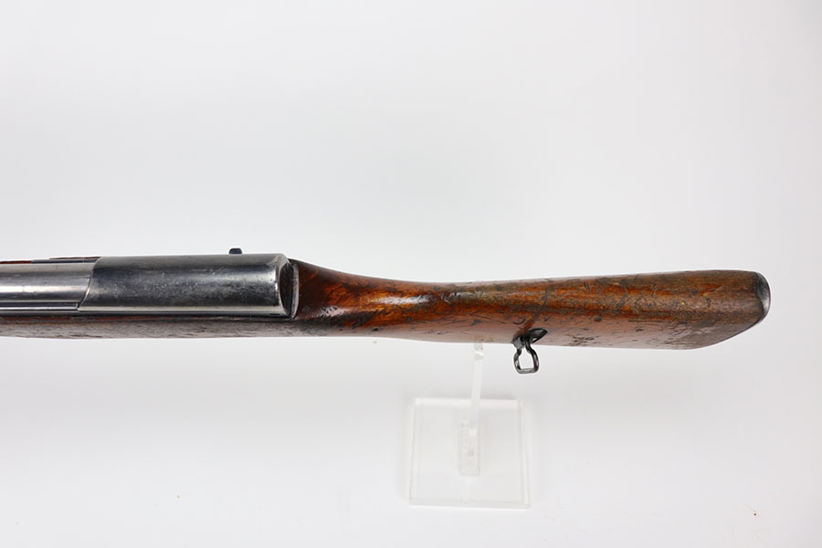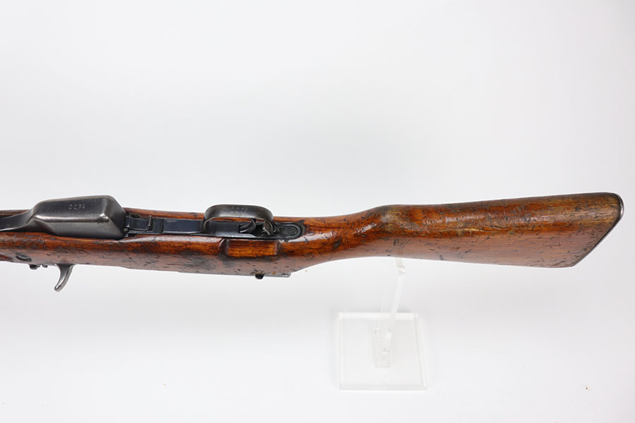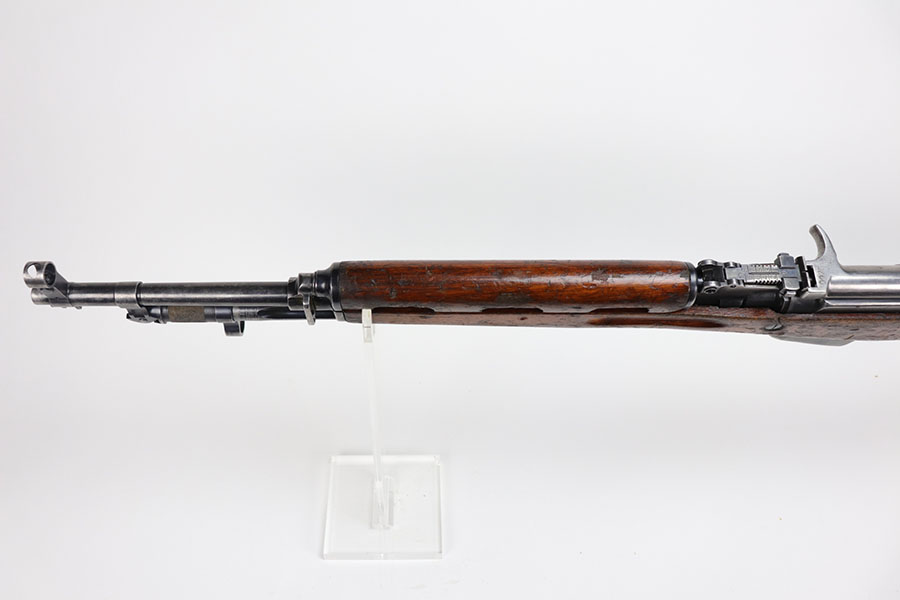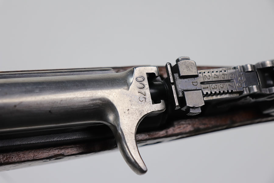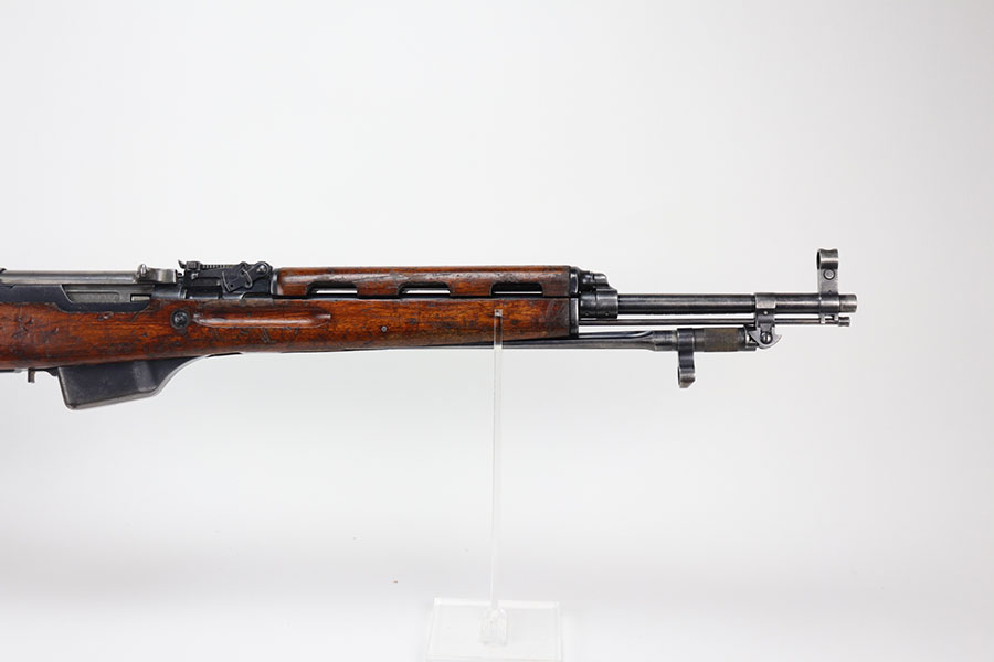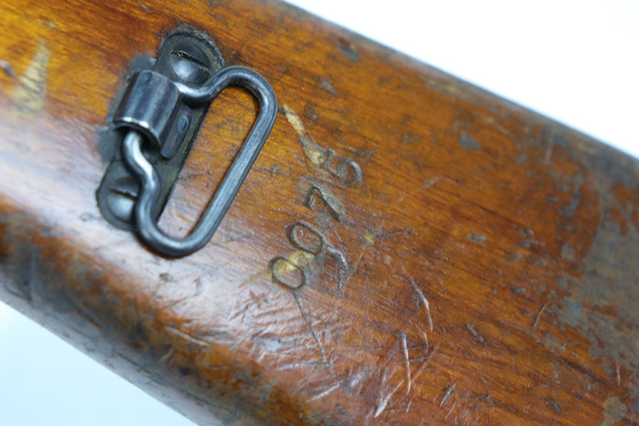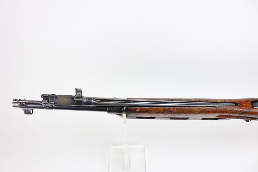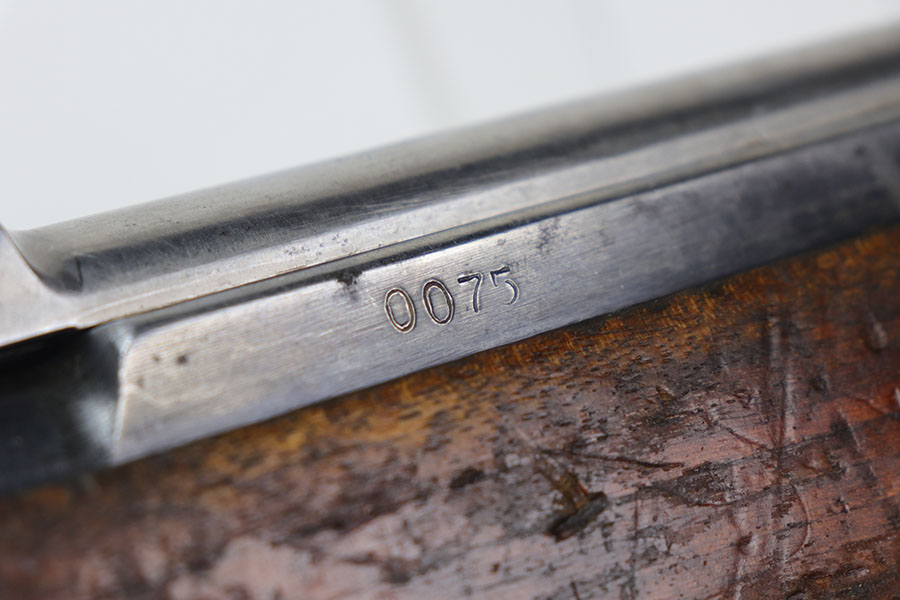 1/20/21 – This is a fairly rare and very early Albanian contract SKS that was made at the Um Gramsh factory in the late 1960s. Aside from the import mark under the barrel indicating it came from Gramsh in Albania, this variation can be identified by the longer stock and handguard, the design of the charging handle and the two holes for buttstock compartments. The gun is all matching, including receiver, stock, magazine, bolt, etc. Original finish is thin throughout but no pitting. Includes cleaning rod and folding bayonet. Mint bore. Stock has various dings and nicks but no structural issues. Very early serial, presumably indicating it was the 75th produced for this contract. There were only about 15,000-20,000 Albanian SKS rifles produced in total. C&R eligible.
