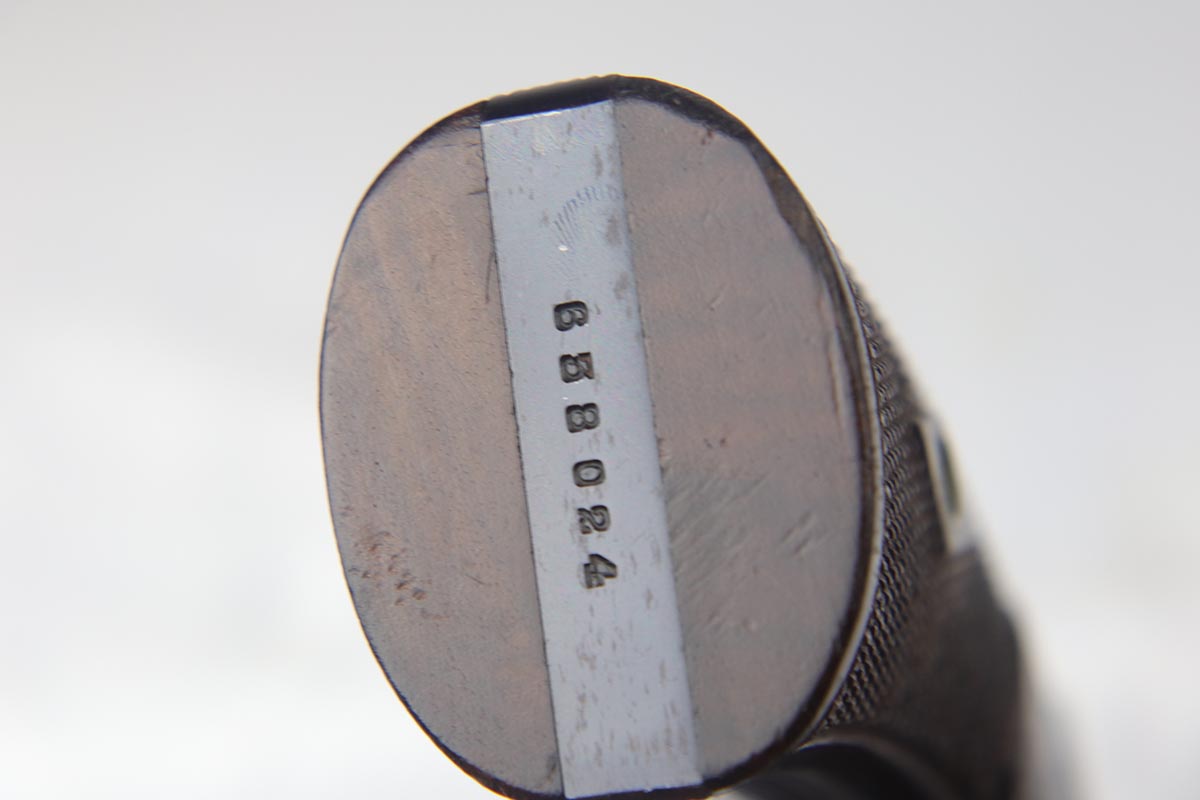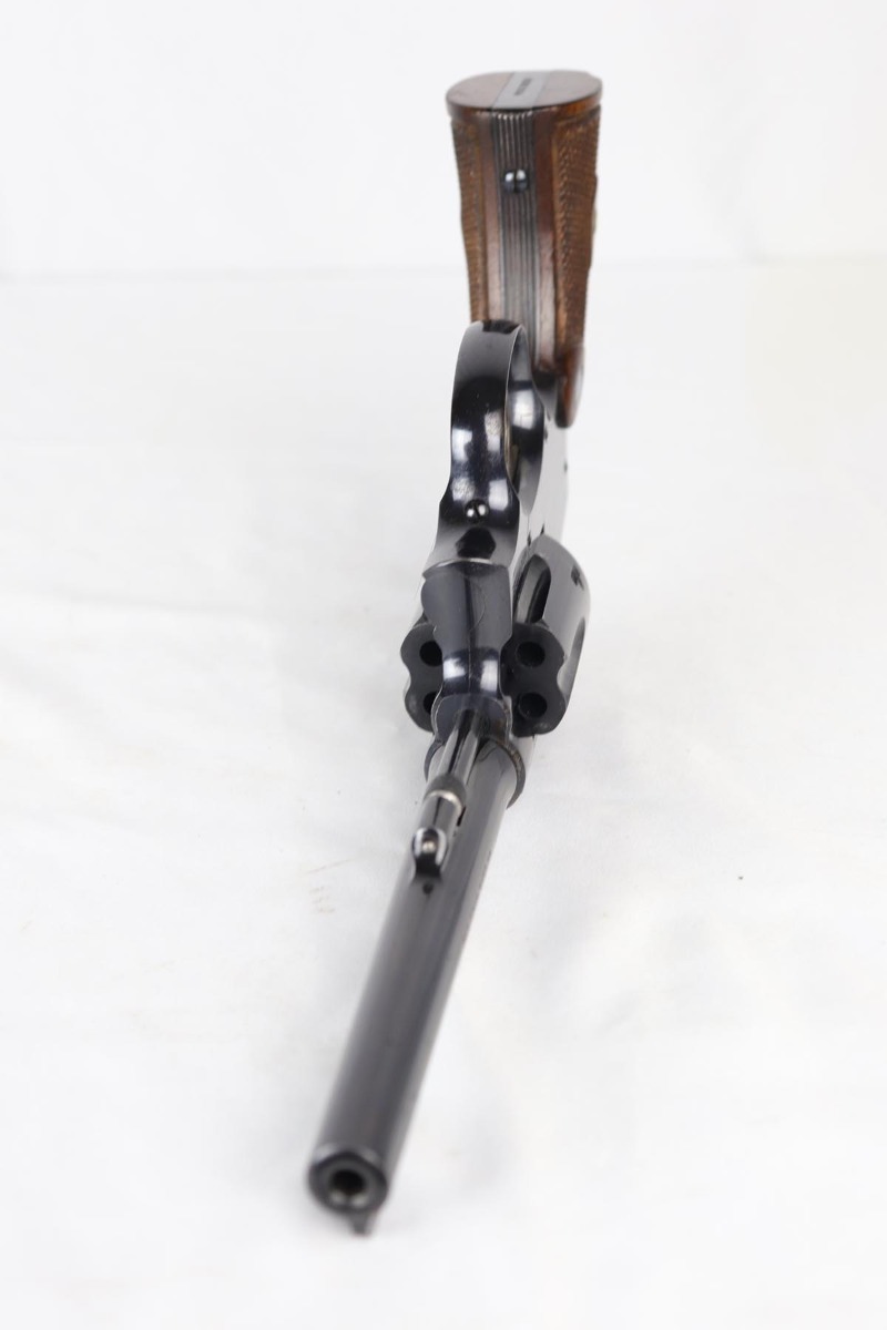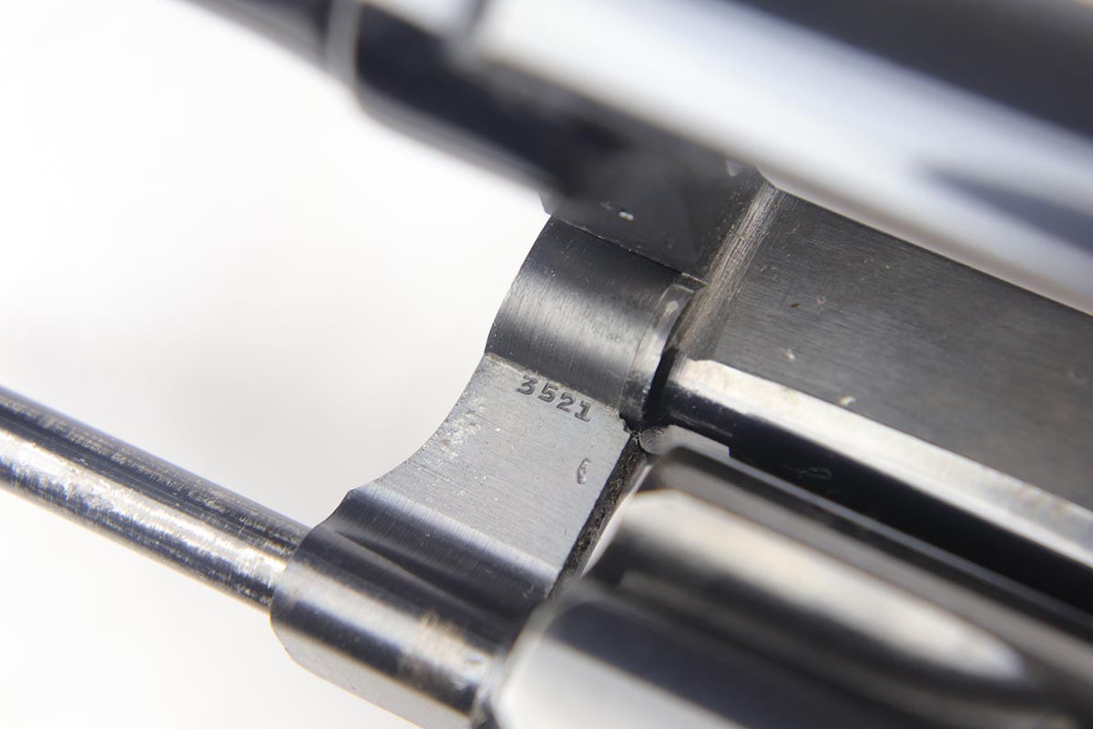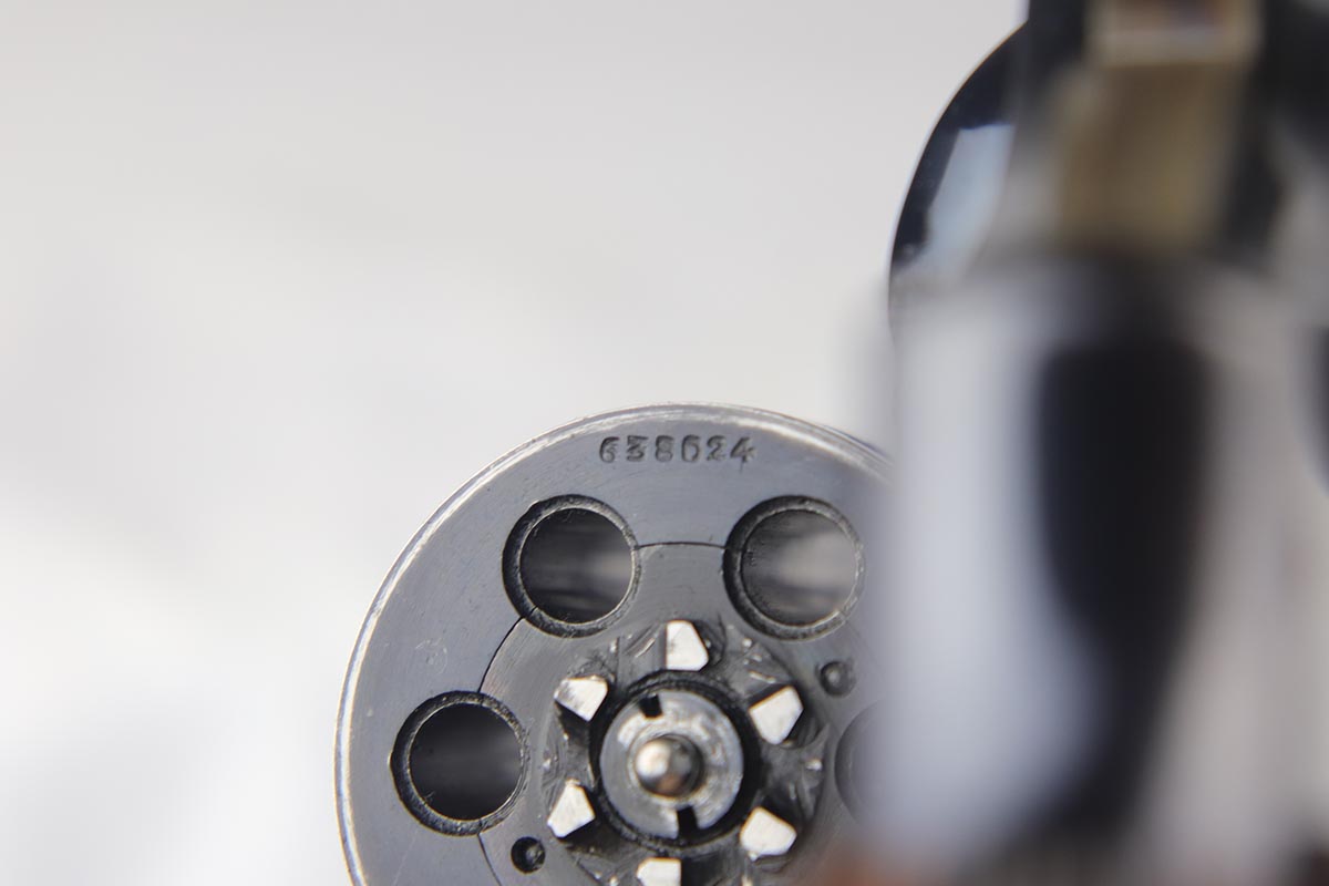 11/27/18 – This is a very nice example of a super early Smith & Wesson K-22 Outdoorsman, 1st model revolver.  Production on this variation began at serial 632xxx in 1931, and this one is 638xxx.  The original high-polish blue rates at about 95% with the majority of the finish loss on the cylinder and muzzle.  There is also minor surface freckling on the cylinder.  6 shot, 6 inch barrel on S&W K frame.  The left grip is numbered and matching to the gun, while right panel is properly not numbered.  Bore is shiny with only minor signs of use.