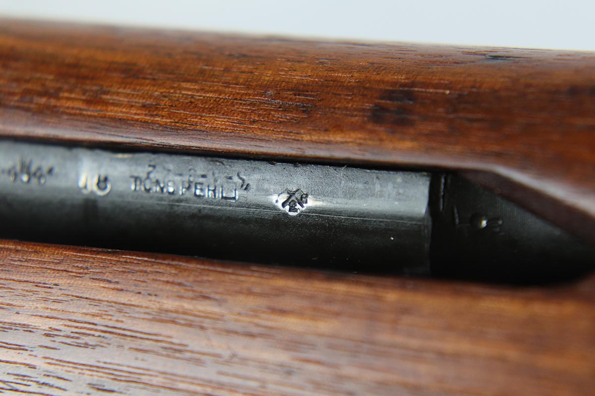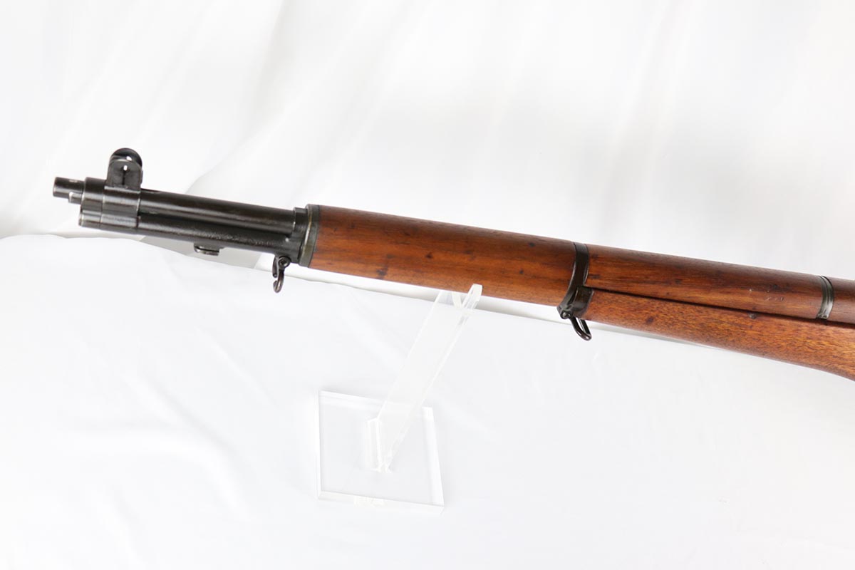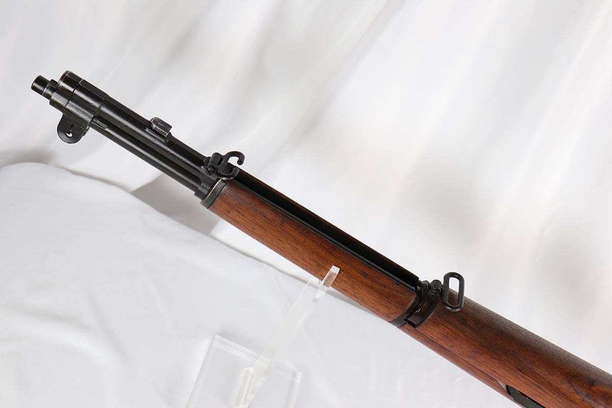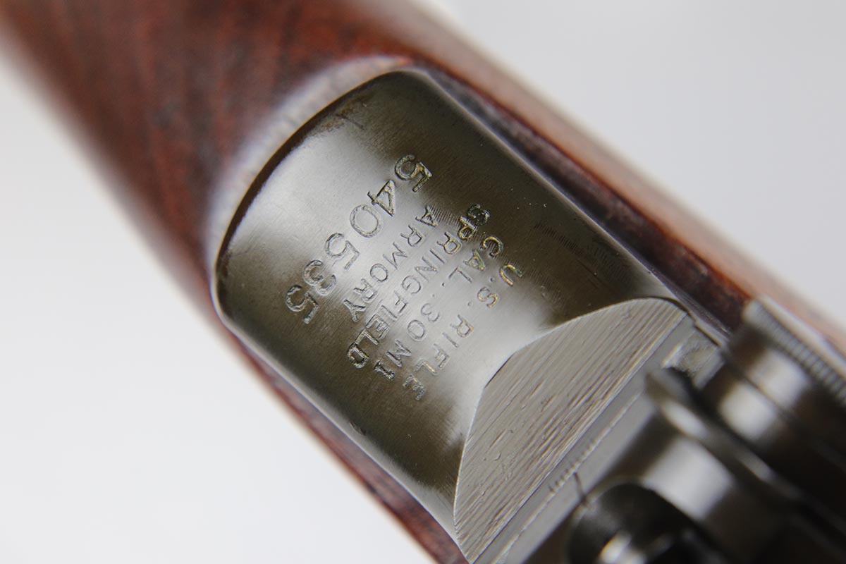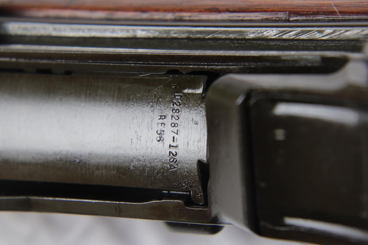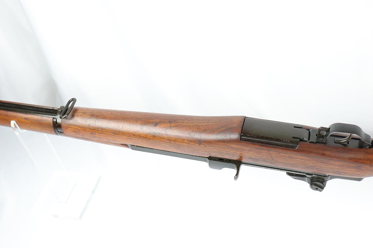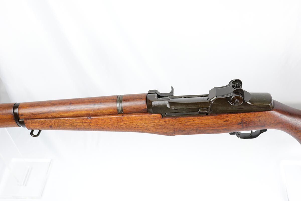 3/12/18 – This is a great example of an early WWII M1 Garand rifle, made in March of 1942. Non-reworked examples of the early garands are very uncommon as most went through three years of war and were then reworked and used in the Korean War as well. The only unmolested examples of the early guns can be found in the batch of Lend Lease guns shipped to England and then returned to the US, most likely in the 50s. This is one of these rifles, with British BNP proofs on the barrel, which is dated properly with an upside down S-A-3-42 date. It has all the correct internal parts with the ‘drawing’ numbers all dating to 1942. The stock is marked with an SA GHS cartouche and a large ‘ordnance wheel’ next to it. The serifed P in the circle is present on the pistol grip. The wood is superb with only a few scratches and minor dents. The gun has over 95% of the original green parkerizing on the metal. Bore has strong rifling with minor frosting but no corrosion. The rear sight is an original WWII lock bar type.
