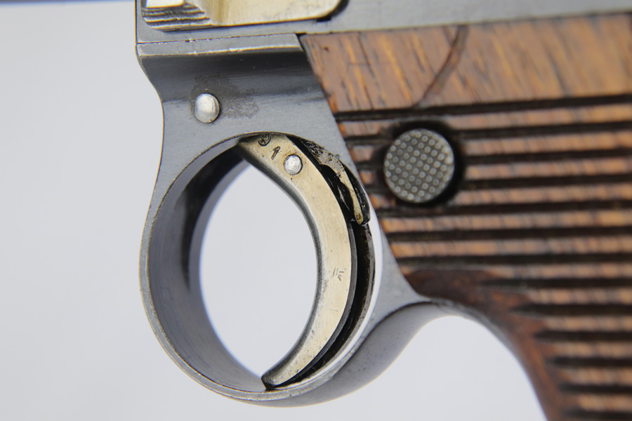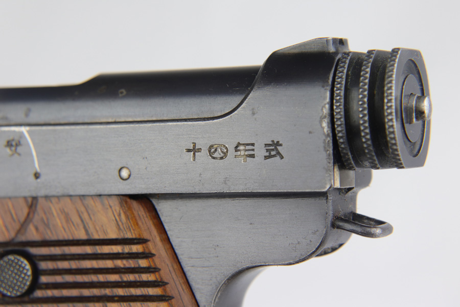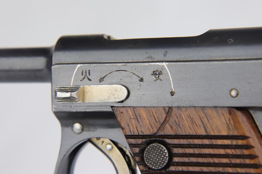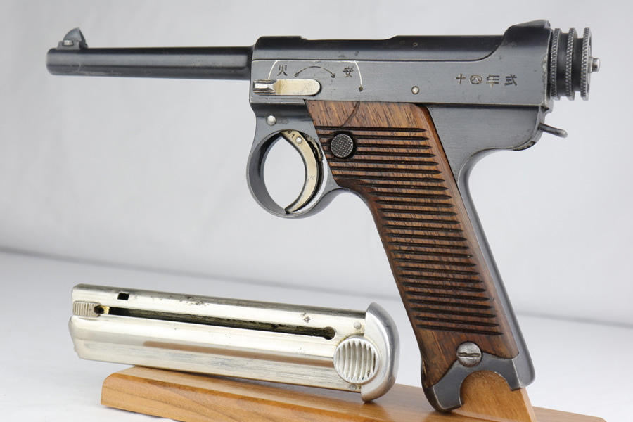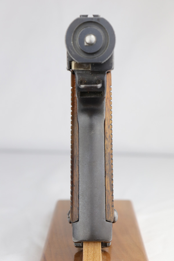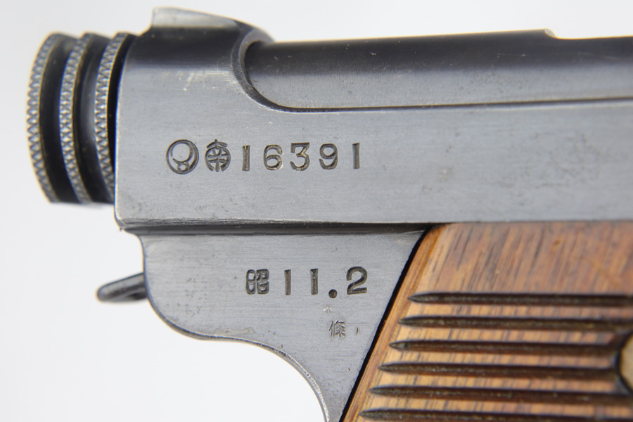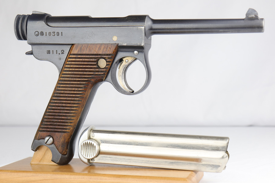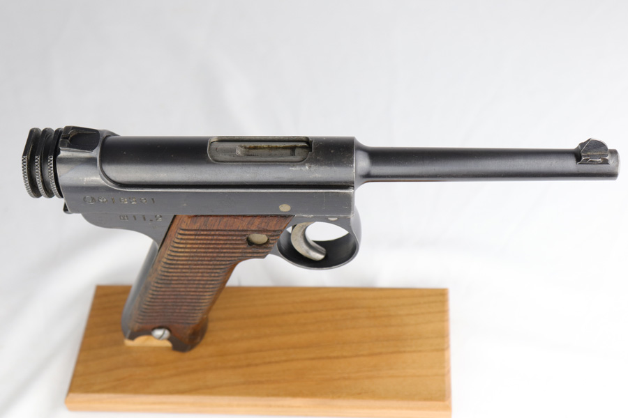 3/27/19 – This is an early 1936 WW2 production T14 Nambu pistol. The pistol is in about 93-95% overall condition with finish loss on the front and back straps, as well as on the underside of the barrel and top of the receiver. All of this wear is normal bluing loss and some light brown patina, no major rust or pitting. Very nice bore is 9/10 – clean with strong rifling. Non matching, but period correct magazine. A nice, all matching (except magazine) early nambu.