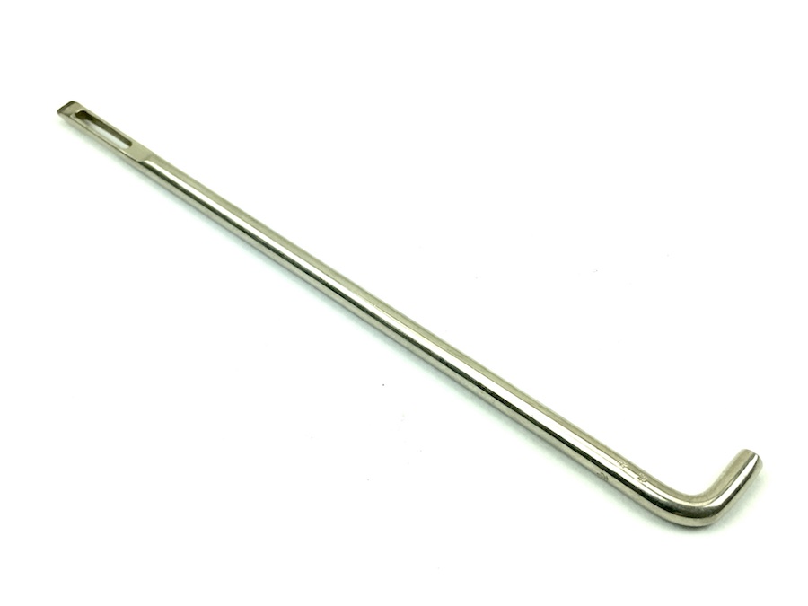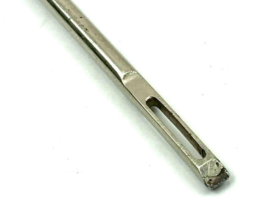8/5/19 – This is an original, early WWII Type 94 Nambu cleaning rod. The rod is in excellent condition with most of the original nickle finish in tact. There are 3 Japanese stamps or markings near the handle end. Over length is 5-3/16″. Very nice piece.