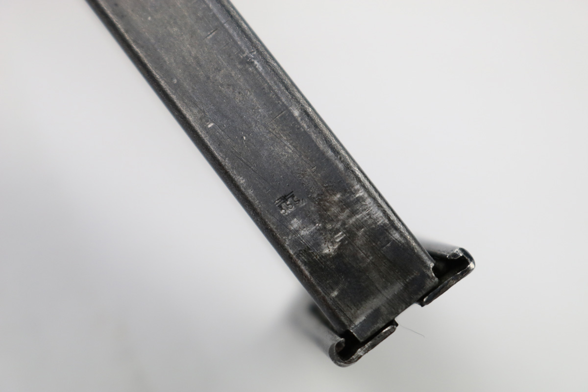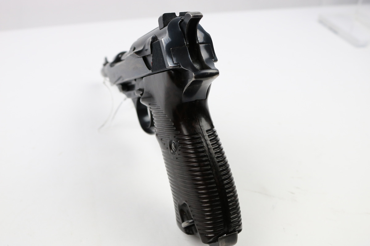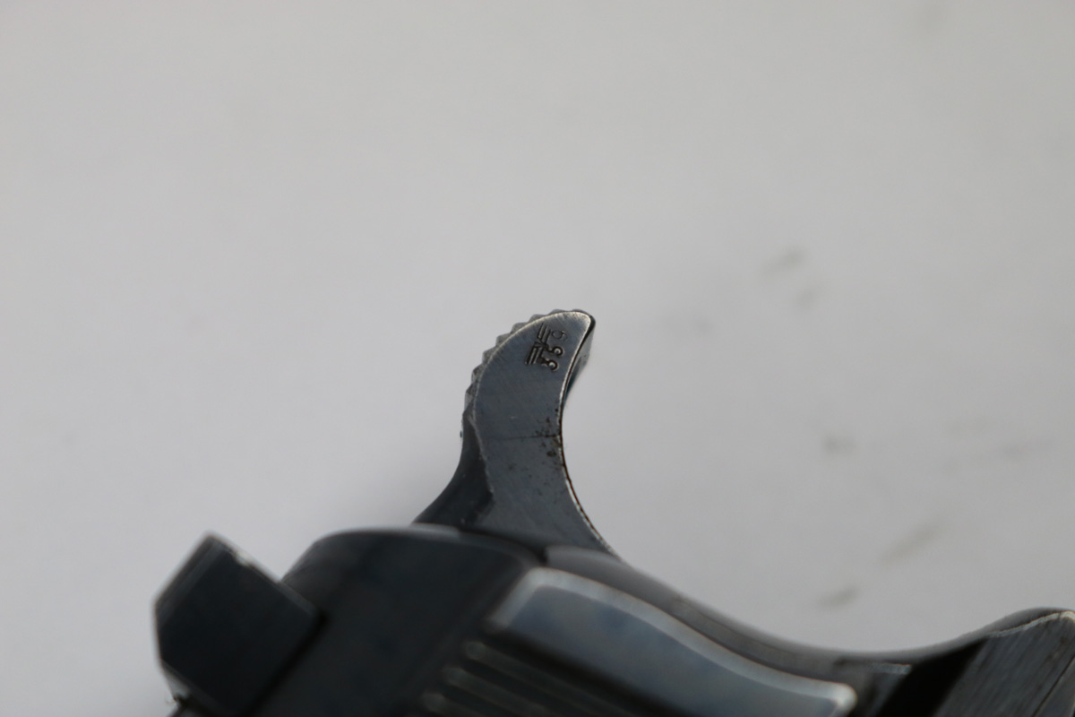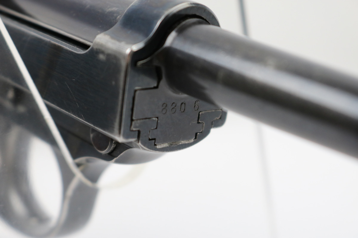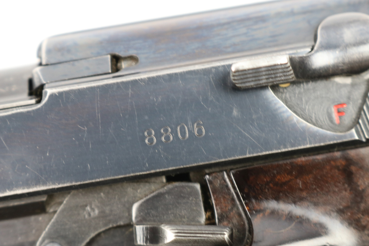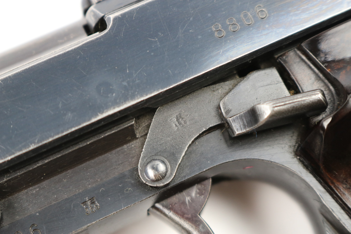 6/21/18 – This is an original early 1941 production Walther P.38. The pistol is all matching and correct with a high polish blued finish and small parts eagle/359 proofed. The pistol has no letter suffix, meaning it was produced in January of 1941. The finish rates at about 94% overall, with most of the wear being on the right side of the slide. There’s some light pitting under the proof stamps near the edge of the slide. The barrel has some bluing loss and muzzle wear. The straps are excellent with very nice bluing in tact. The bore has very minor edge wear on the grooves, and overall is shiny and excellent. Comes with original grips and a serial numbered magazine (in the ‘a’ suffix, so one month after this pistol was produced). The grips are also properly eagle/359 proof stamped. Guaranteed original !