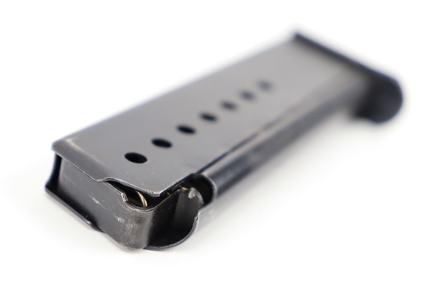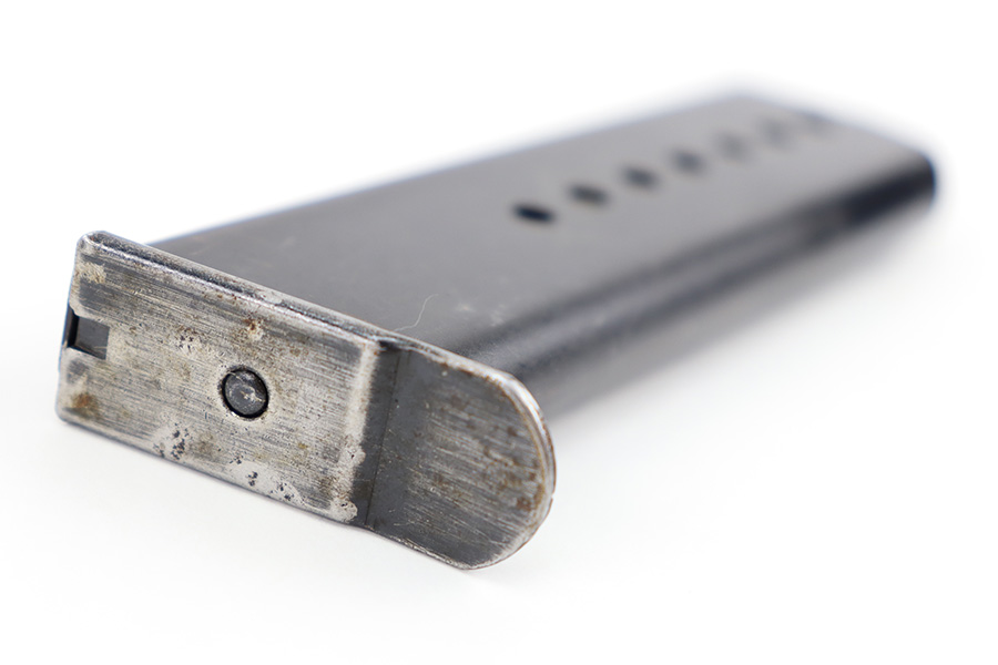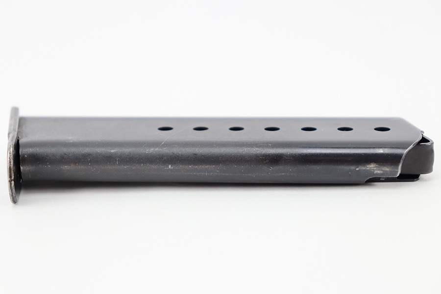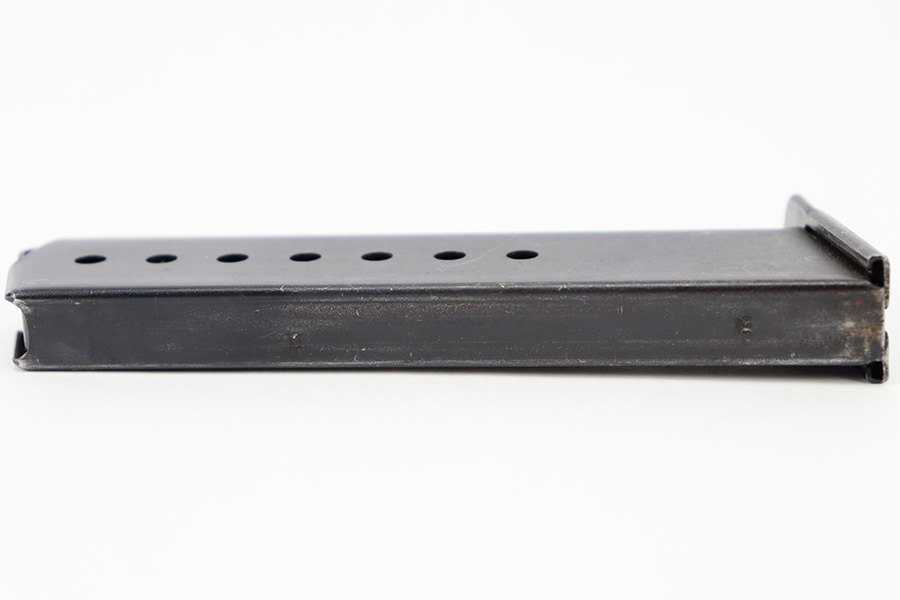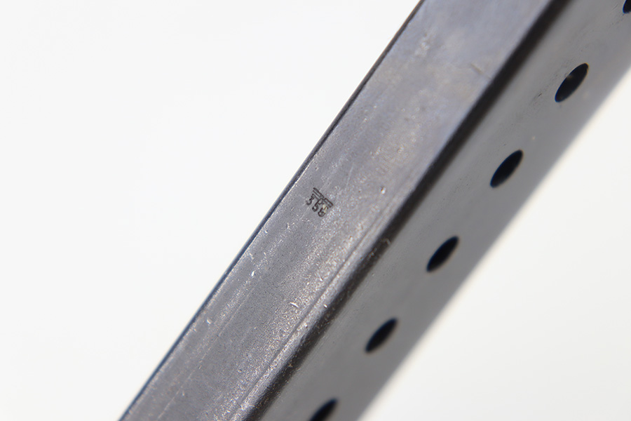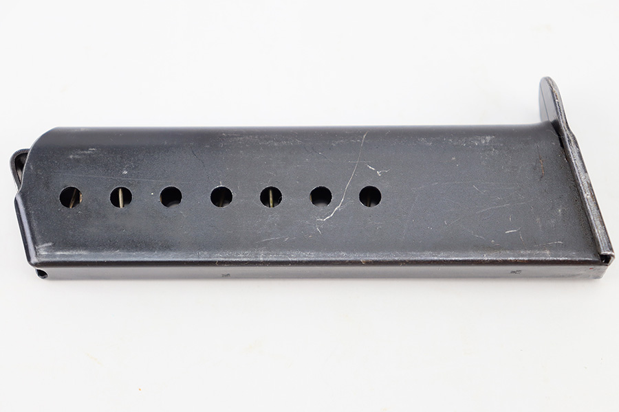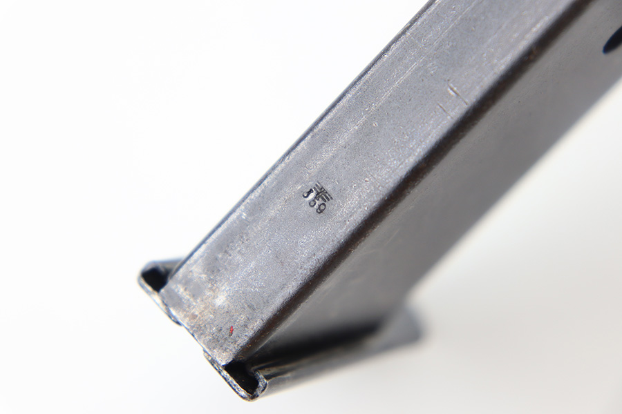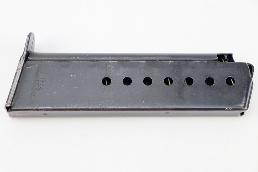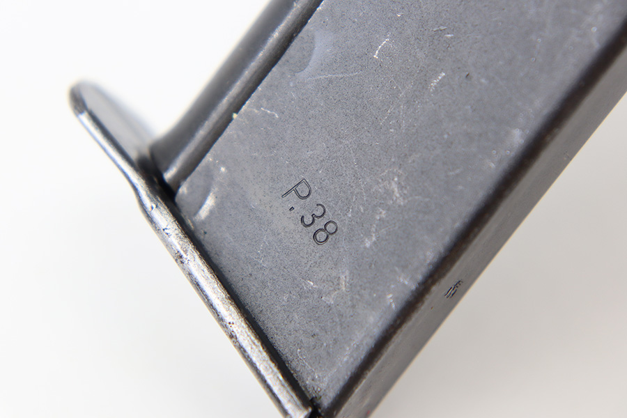 12/6/23 – This is an original WW2 Walther P.38 magazine. The magazine is an earlier wartime variation with a P.38 stamp on the left side of the tube, and two eagle/359 proofs on the spine. The tube is in excellent condition, but there’s some finish loss on the base. Fully functional with a strong spring.