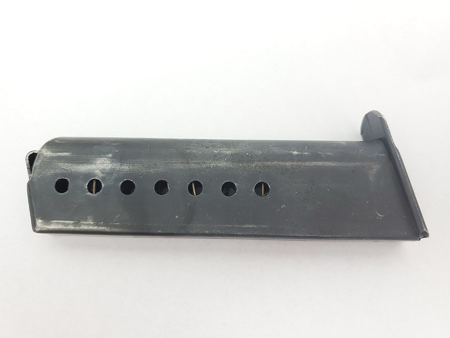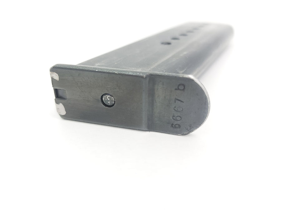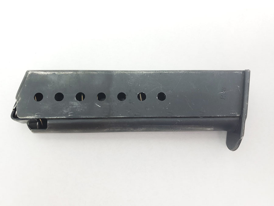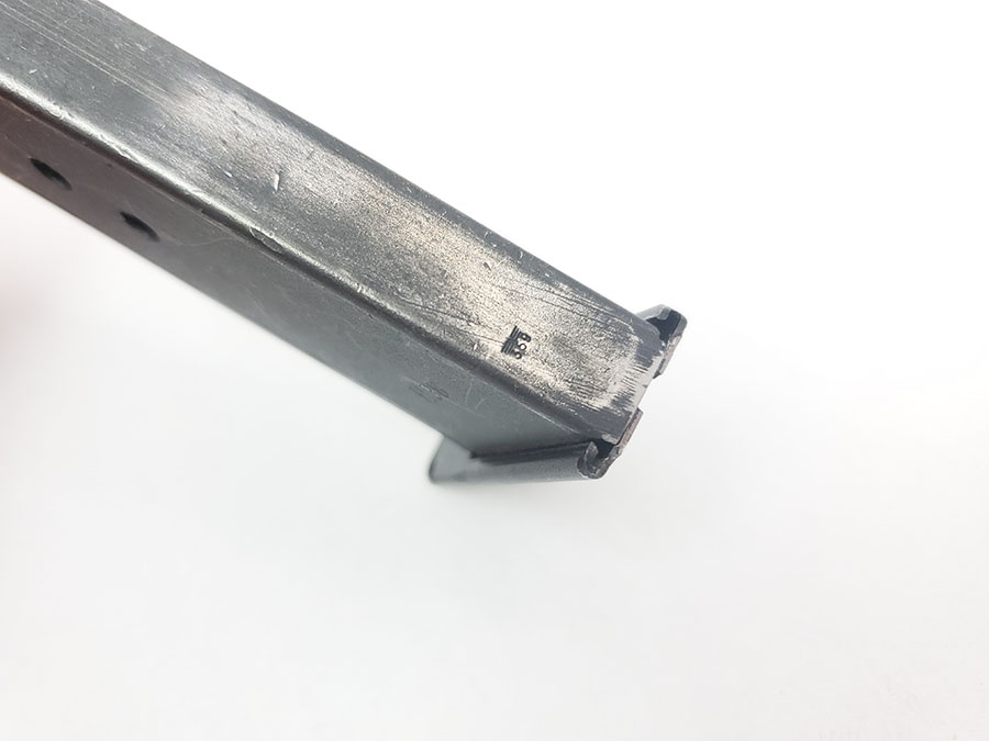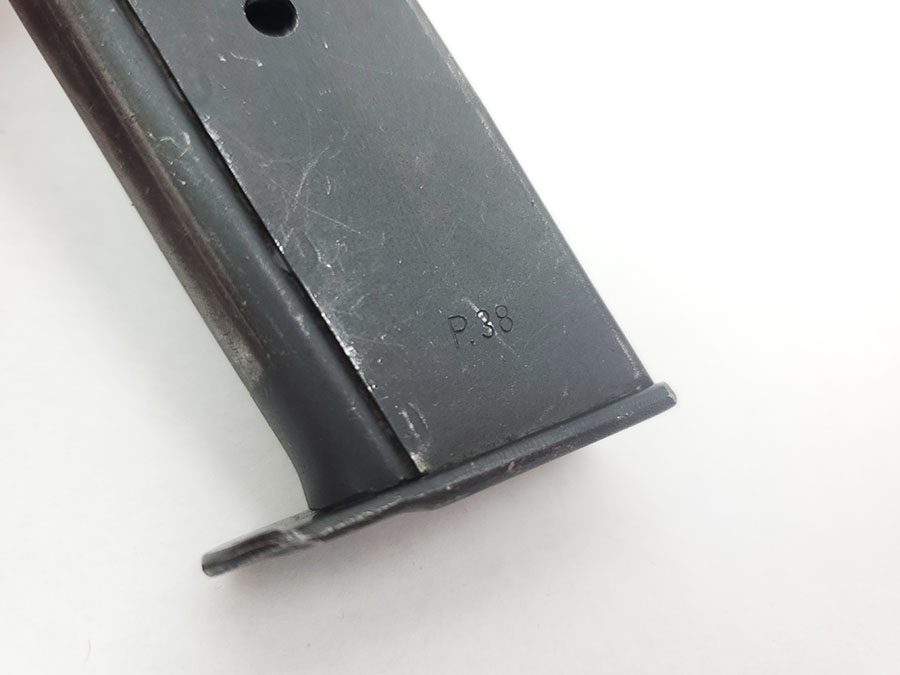 7/8/20 – This is an original Walther P.38 magazine from early WW2 production. The magazine has a dull finish on the frame, which is slightly odd because the finish should be high polish. The finish is high polish on the base however. The base is serial numbered, and the spine is double eagle 359 proof stamped. Strong, fully functional spring. Proper for an early production AC 41 pistol.