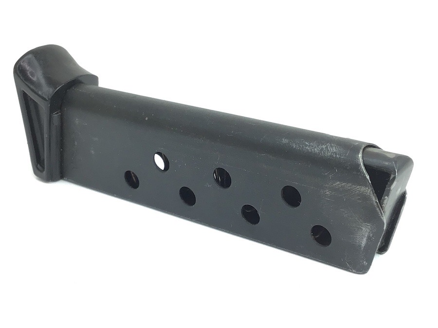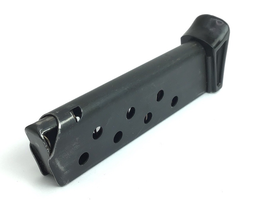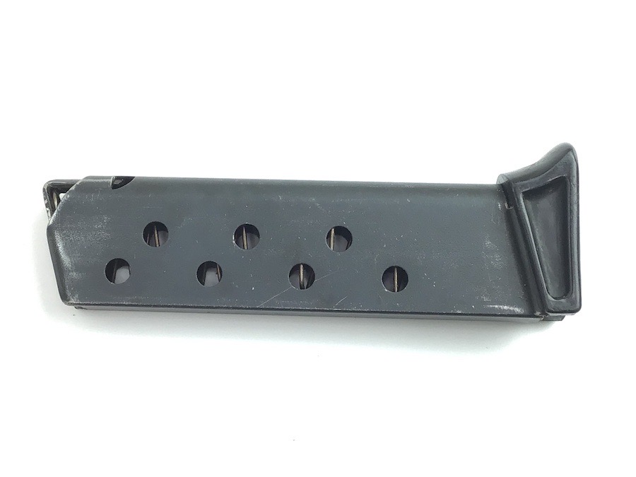 2/14/24 – Original and excellent condition. Pre WWII, Walther PP magazine with black, thin lip finger extension. Early variation with the Walther banner designation on the left side of the tube. Smooth, strong spring.