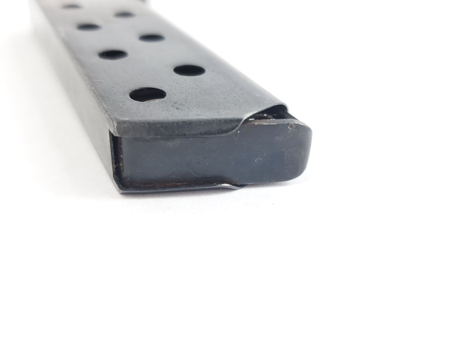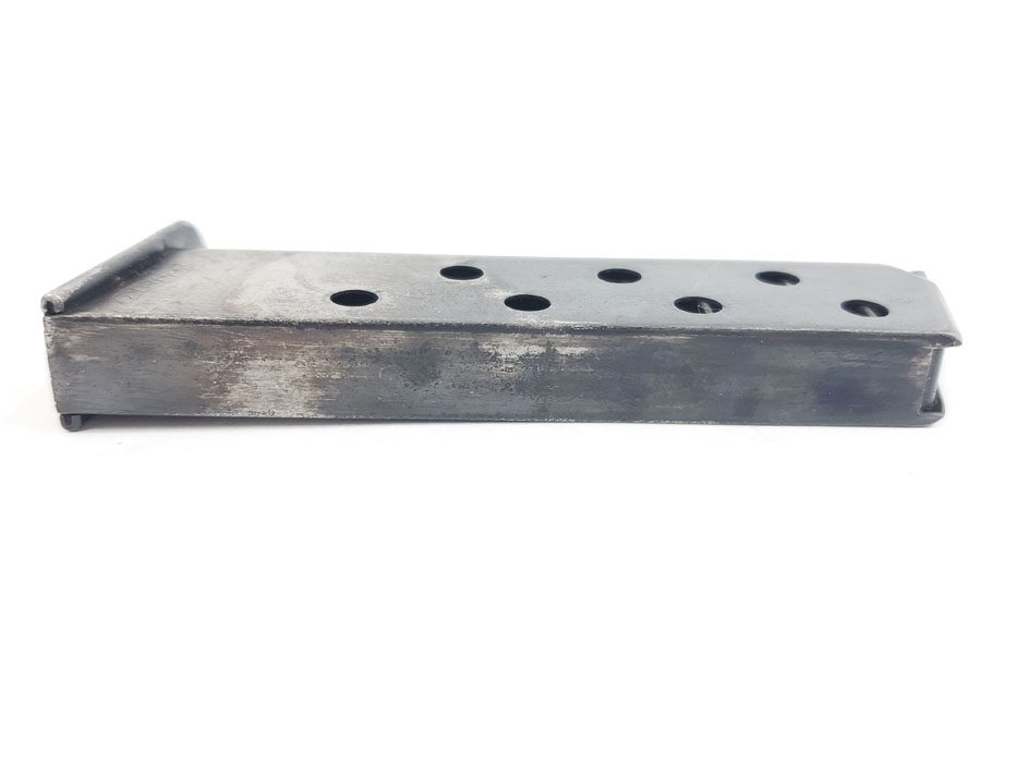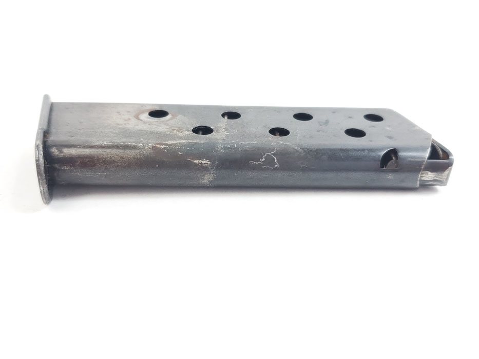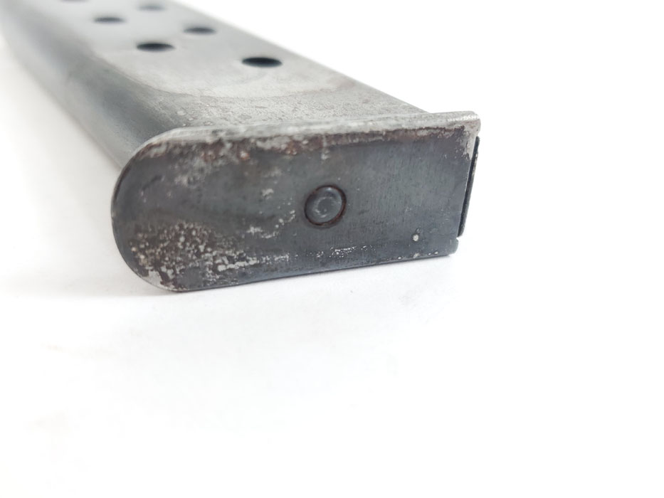 5/22/20 – This is an original early style Walther PP magazine. The high polish finish is in fair condition, as shown in photos. No rust or pitting, but clear finish loss and discoloration. Spring is still fully functional though. Priced according to condition.