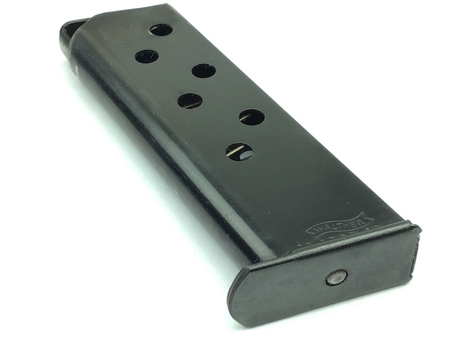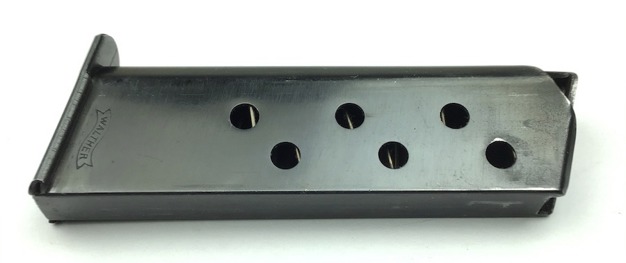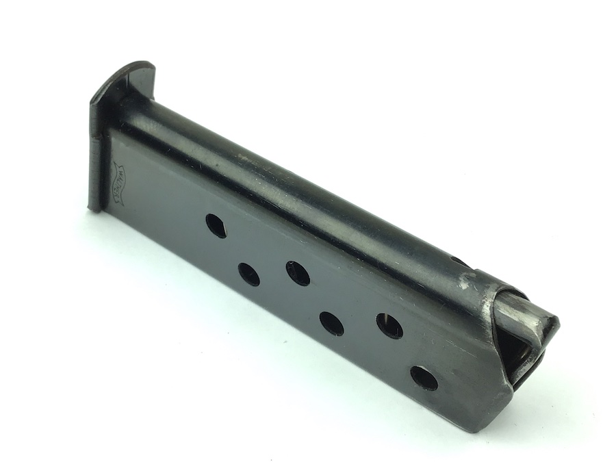 6/16/20 – This is an early WW2 production Walther PPK magazine. The magazine has a high polish blued finish in excellent condition. There is no rust or pitting. The magazine spring is strong and fully functional. Guaranteed original.