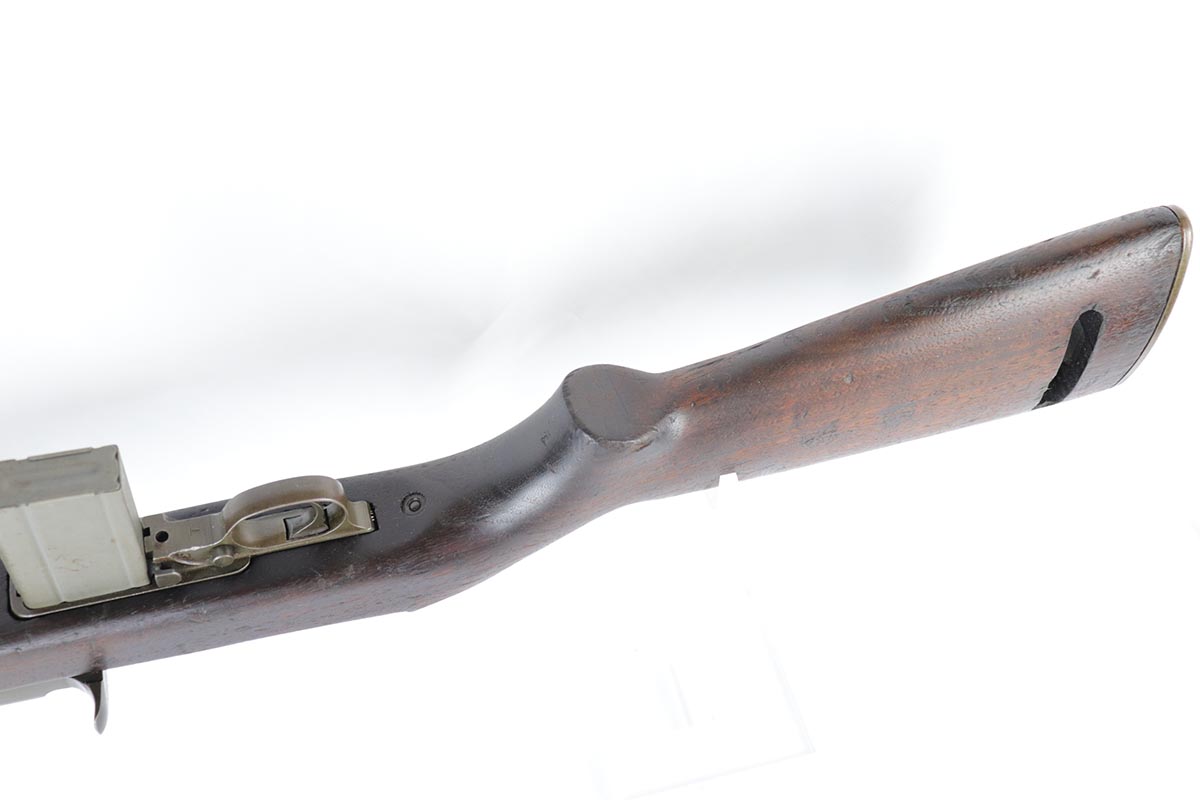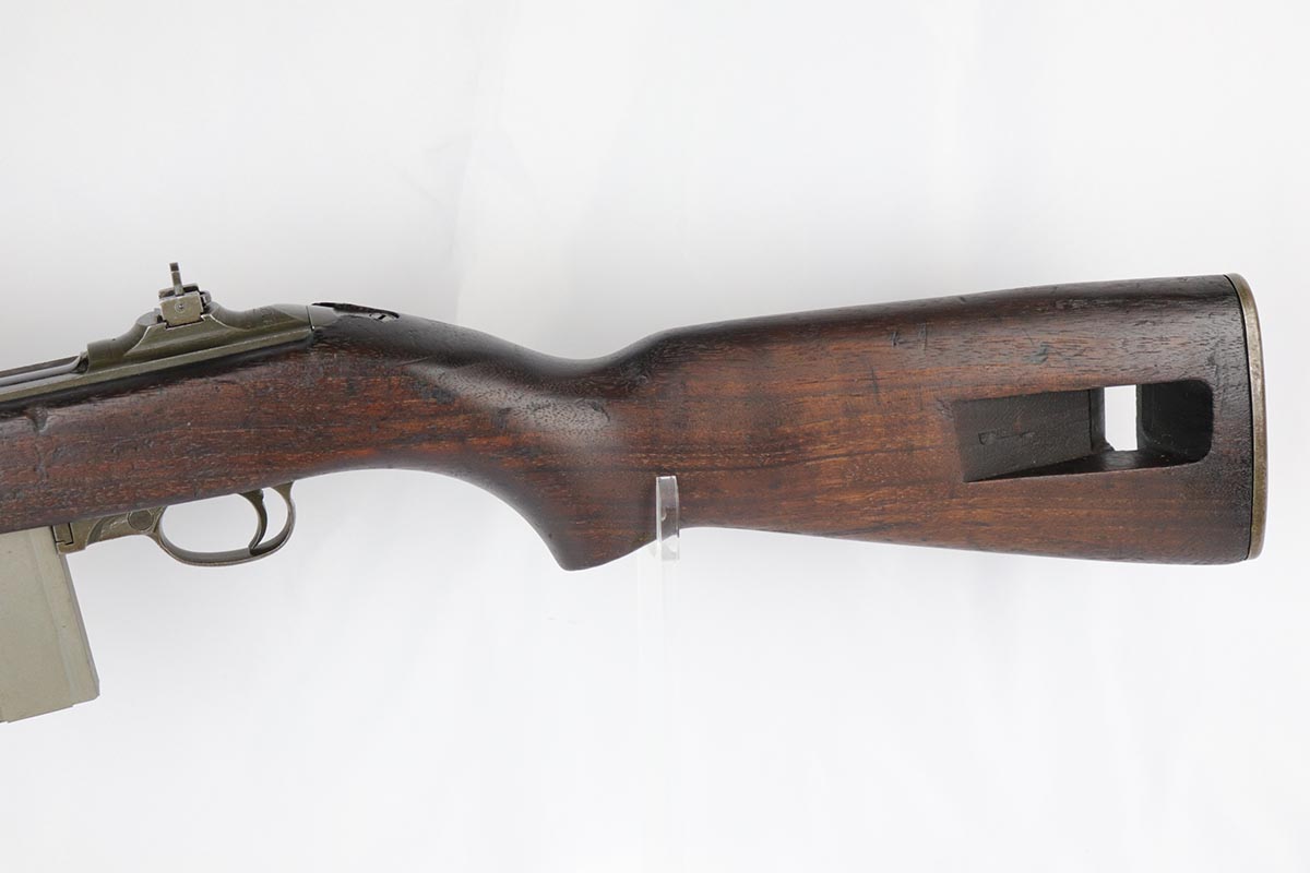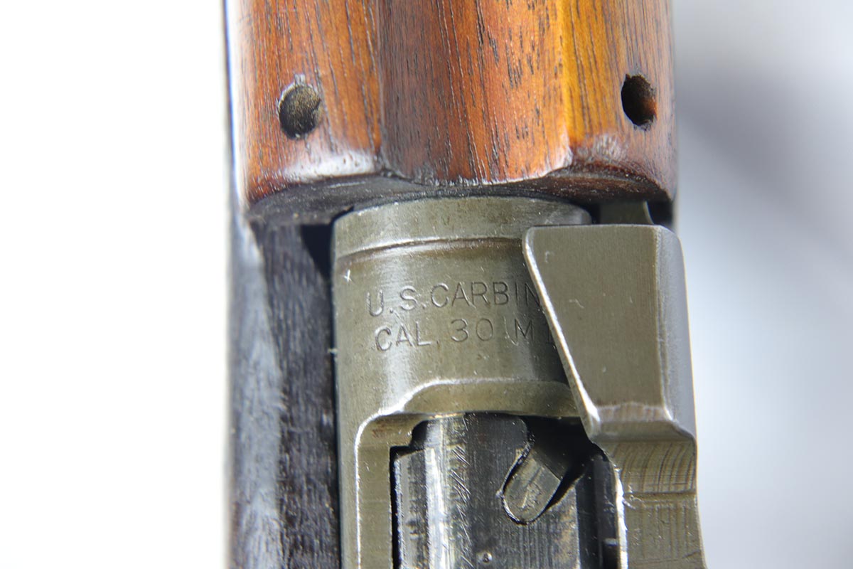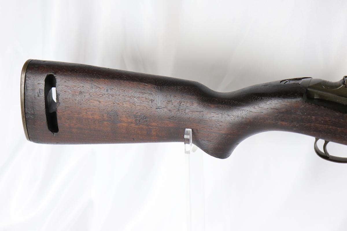 5/18/18 – This is a fabulous example is an early production Winchester M1 carbine – probably part of the first batch made by Winchester for the US army. It is in excellent original condition with about 90-95% of the original finish remaining.  The receiver is minty but the barrel has some thinning along it. The gun is all correct with all the original Winchester parts and had not been messed with. Original early highwood stock is super nice as well with no cracks and is correctly marked with the ordnance wheel cartouche and the WRA GHD inspector acceptance marking.  Excellent bore.