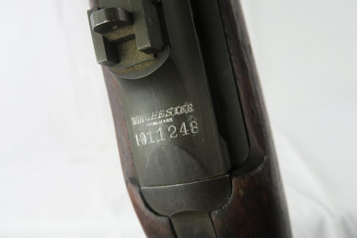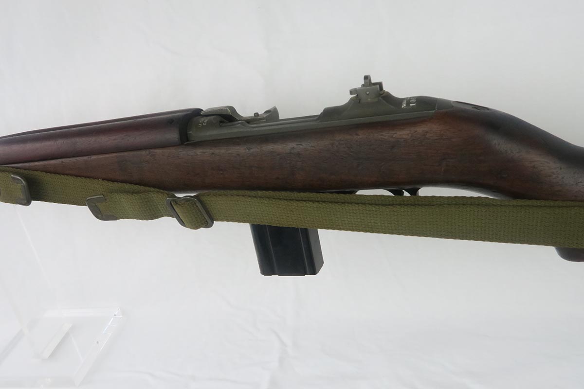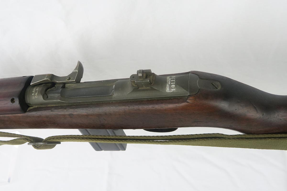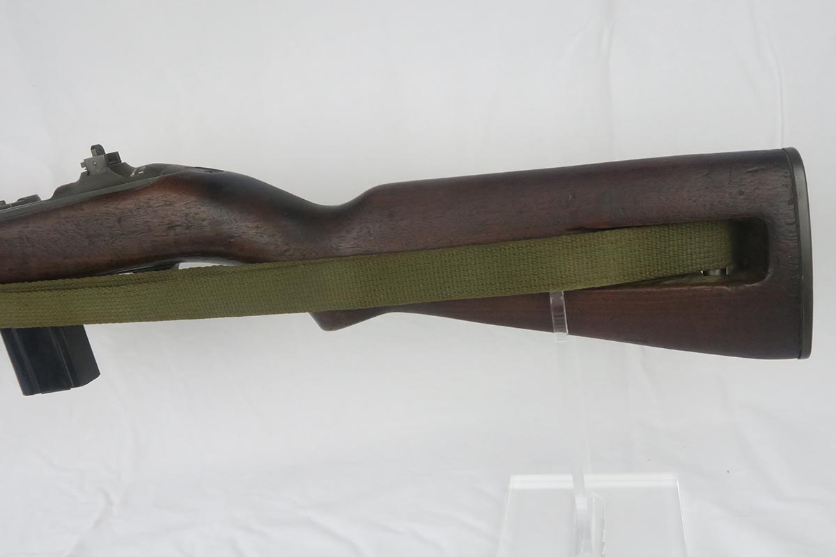 11/9/17 – This is an early Winchester M1 Carbine with I cut stock and early Winchester inspector proof.  Winchester production started in September of 1942 with serial number 1,000,000.  That makes this one of the first ~11,000 made by Winchester.  The rifle is all original and correct with wood that shows multiple dings and nicks but no major cracks or chips.  I cut, low wood stock.  Correct small barrel band, flip site and World War II strap.  Winchester magazine marked ‘BW’.  Minty bore.