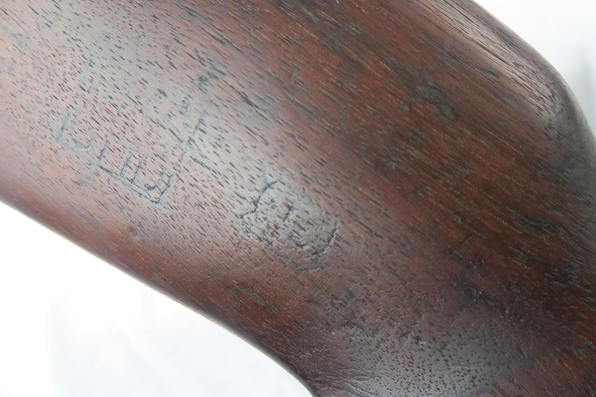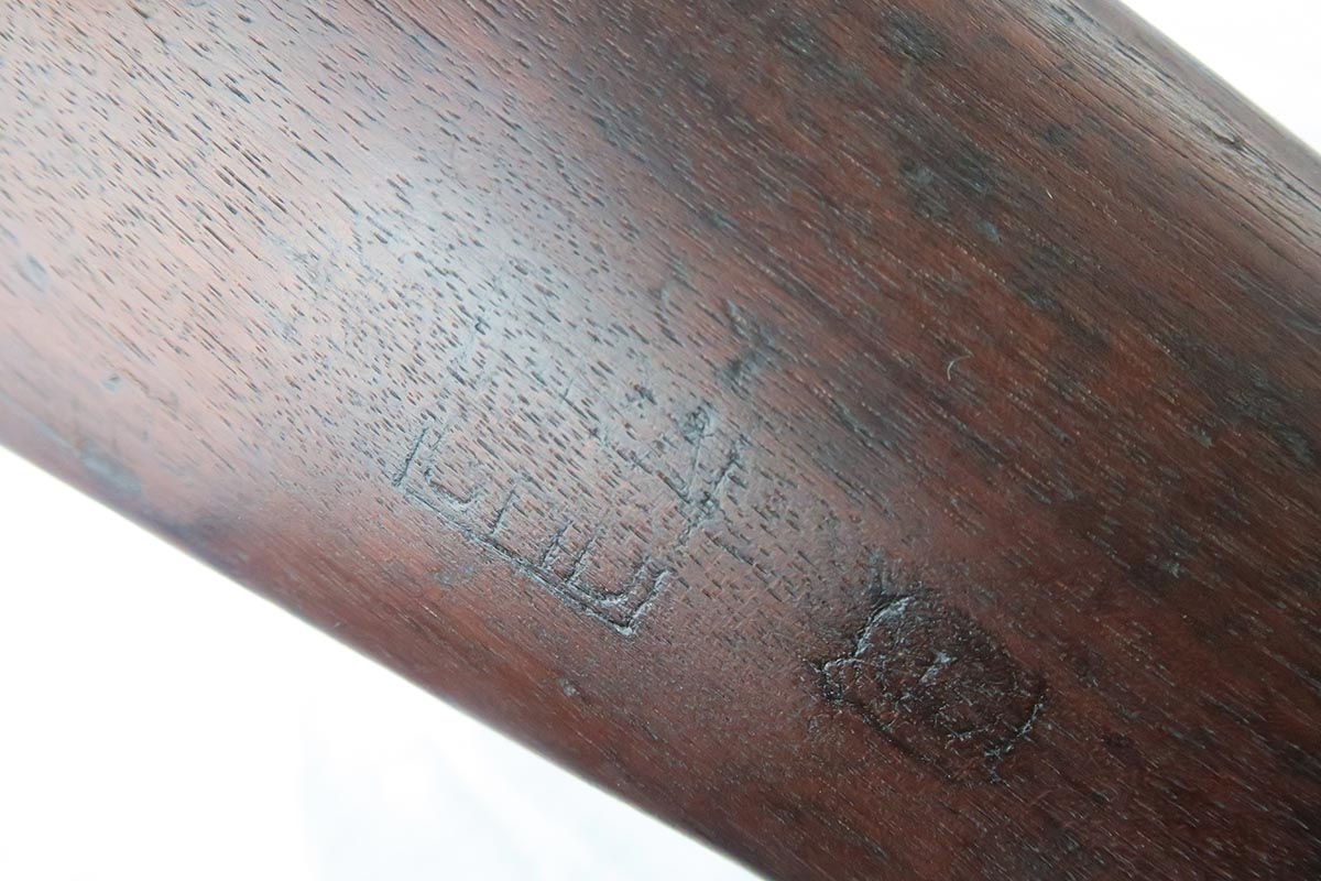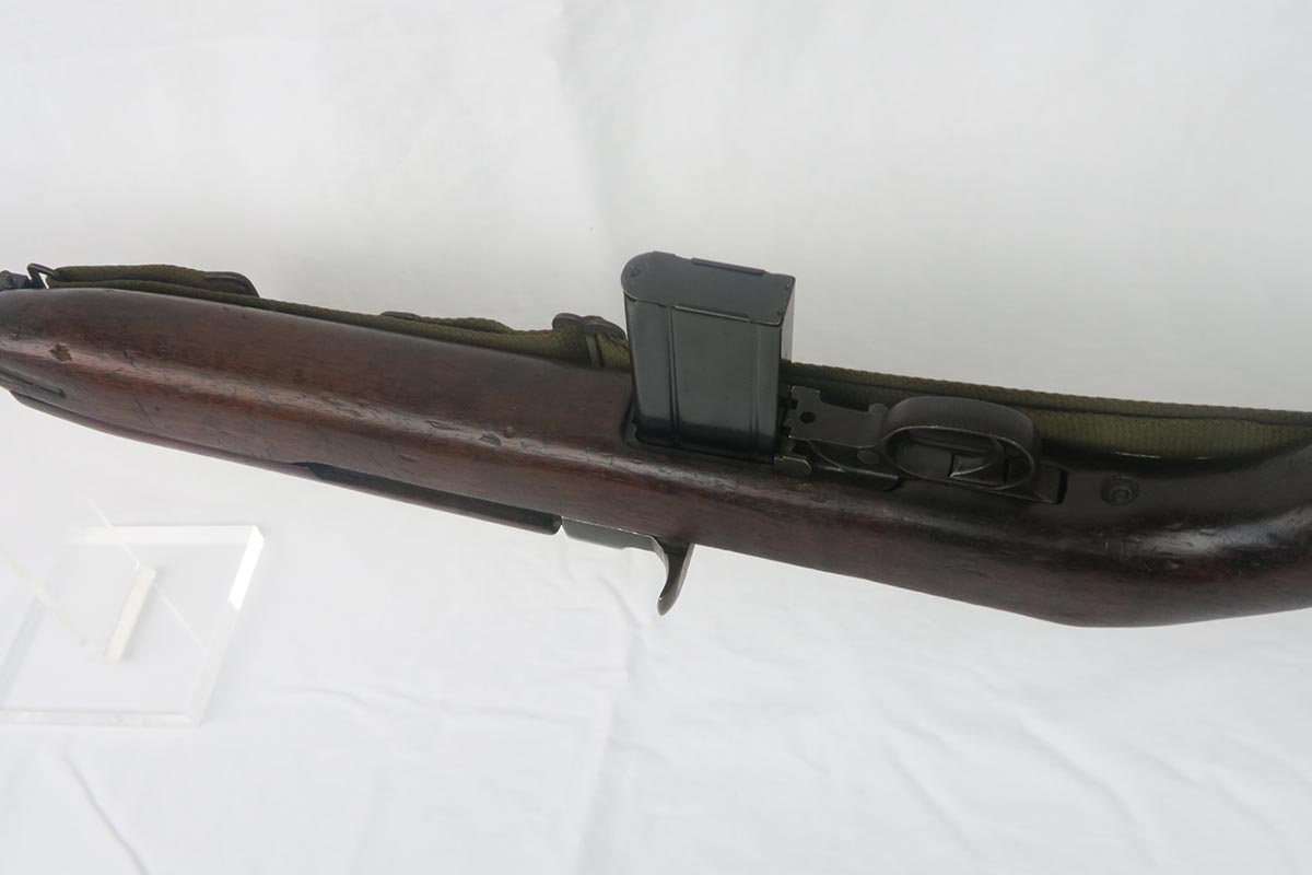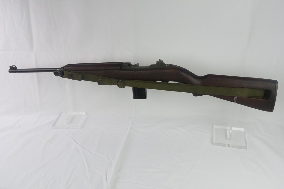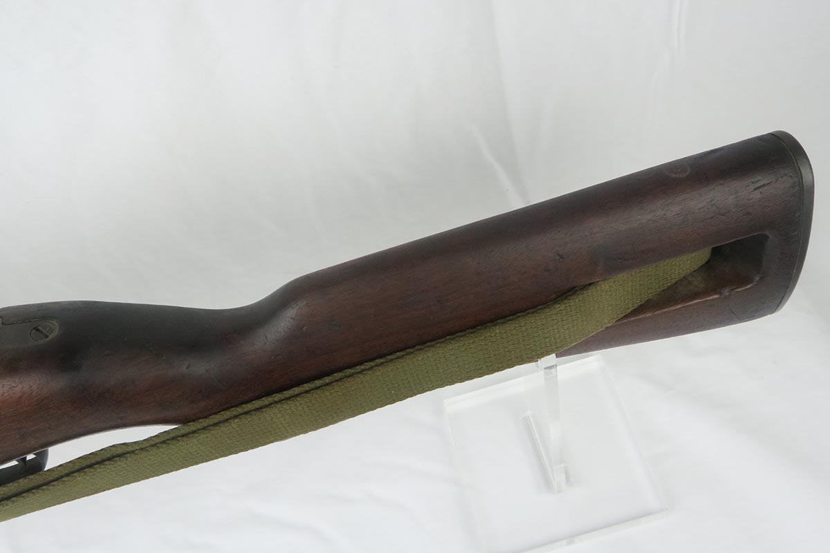 11/9/17 – This is an early Winchester M1 Carbine with I cut stock and early Winchester inspector proof.  Winchester production started in September of 1942 with serial number 1,000,000.  That makes this one of the first ~11,000 made by Winchester.  The rifle is all original and correct with wood that shows multiple dings and nicks but no major cracks or chips.  I cut, low wood stock.  Correct small barrel band, flip site and World War II strap.  Winchester magazine marked ‘BW’.  Minty bore.