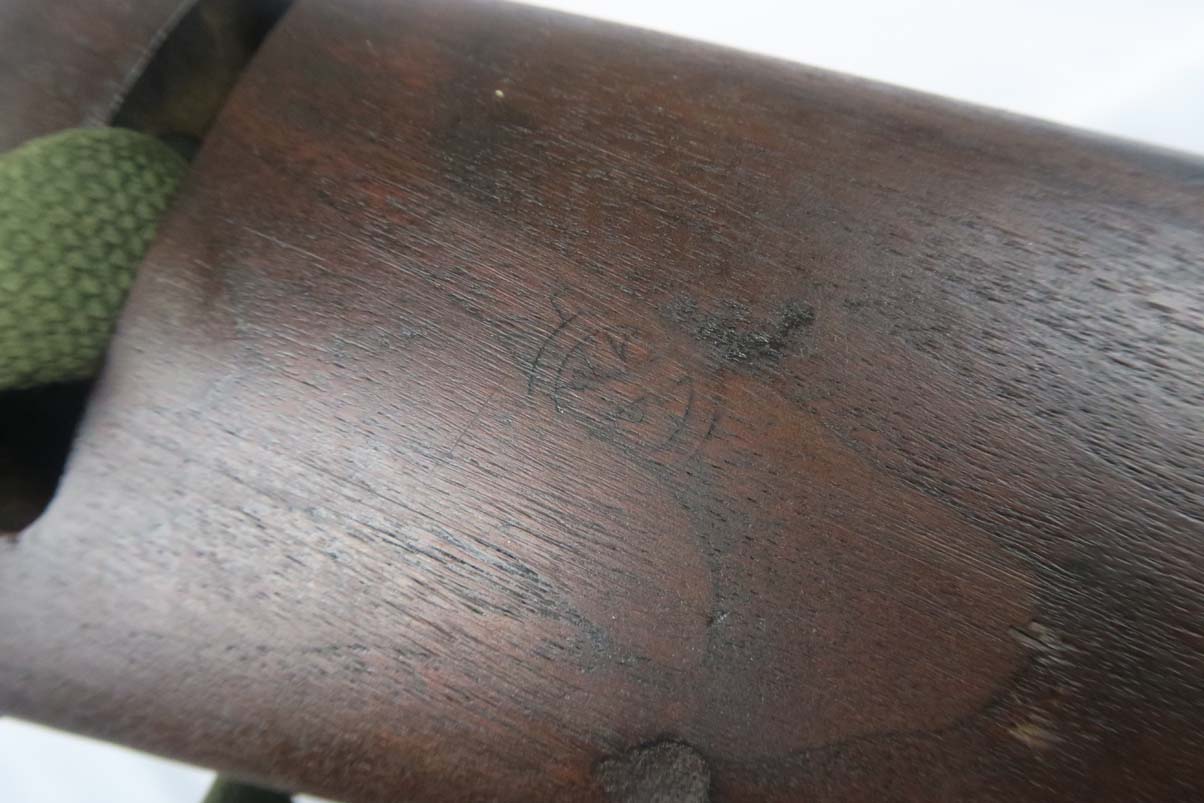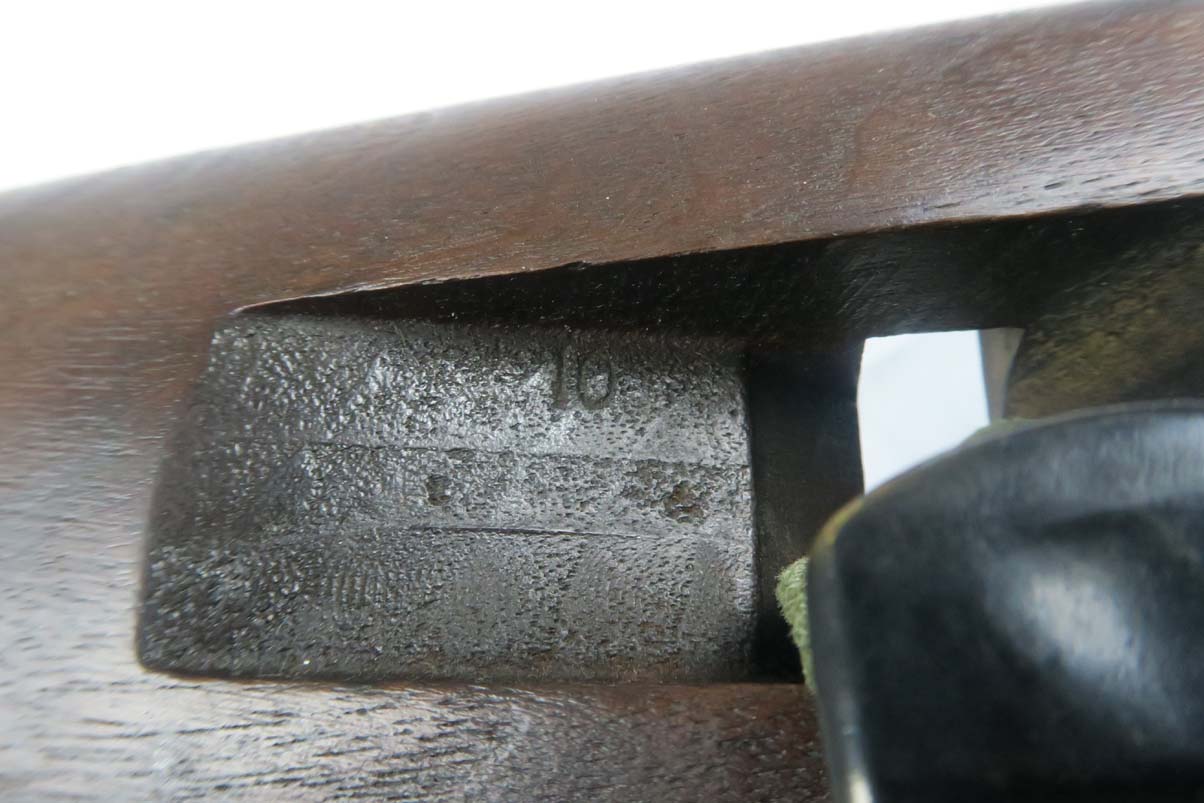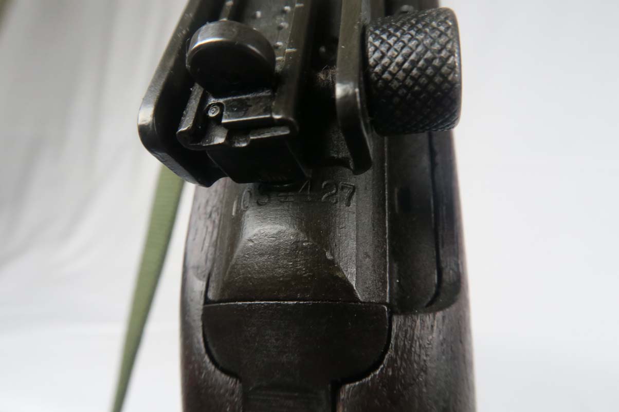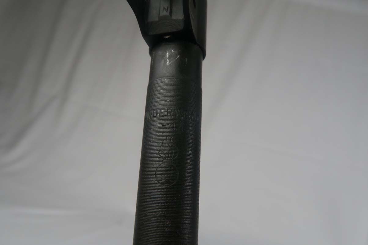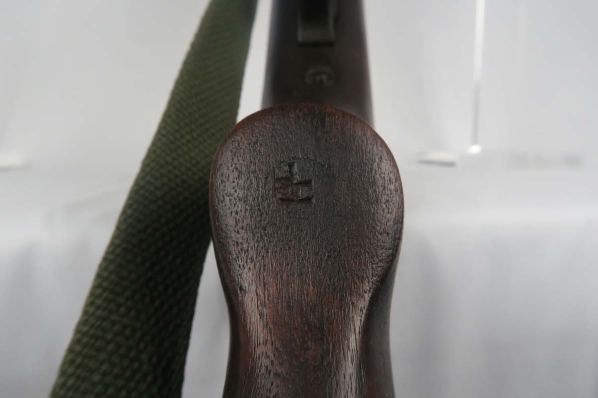 2/17/17 – This is an early Winchester M1 Carbine that was reworked following WWII to be used for the fighting in Korea. The reworked features include the adjustable rear sight and added bayo lug, and the stock shows rework markings. This rifle sports a 1944 dated Underwood barrel, and an ‘LU’ marked Underwood magazine. It features many of the original, correct proof marks including a faded crossed-cannons cartouche, ‘IO’ in the sling cut, and circle P. No import marks. Excellent bore.