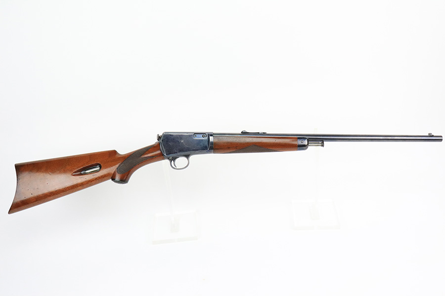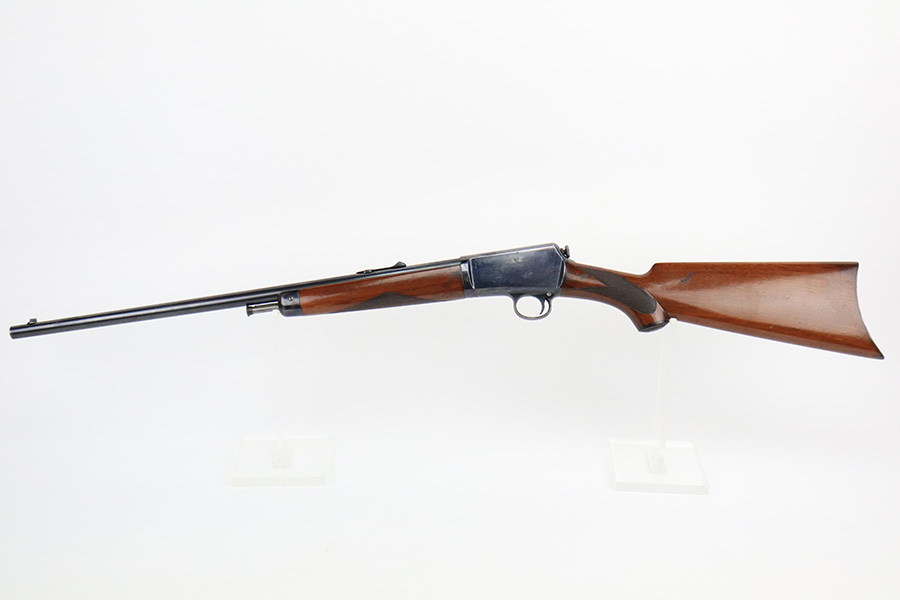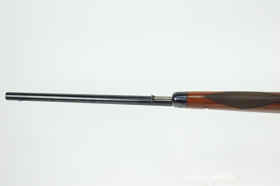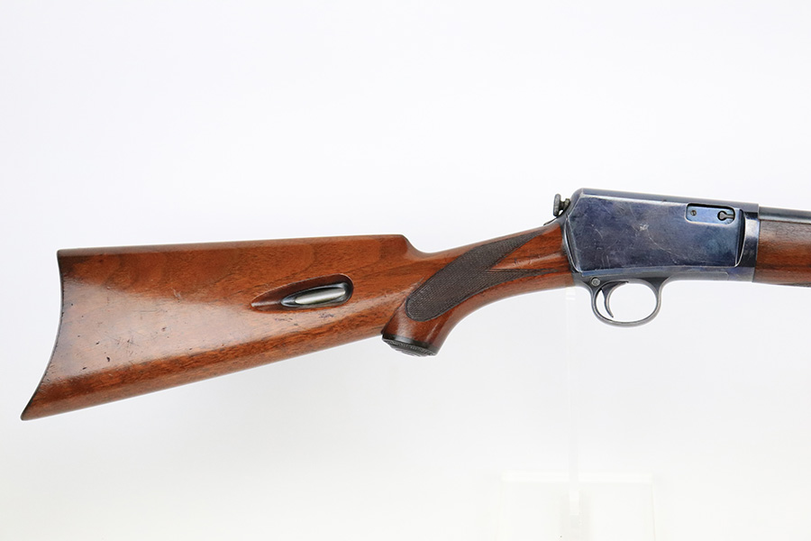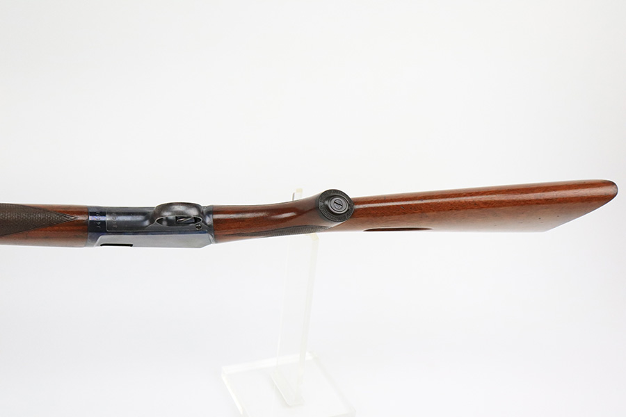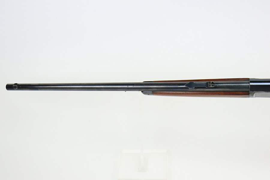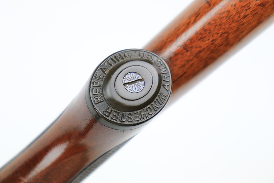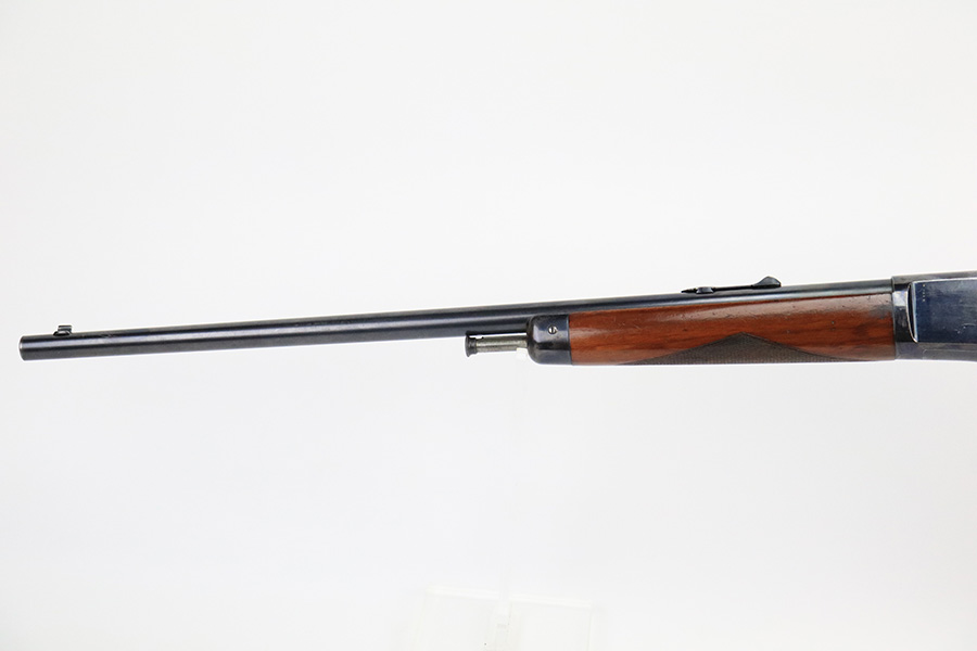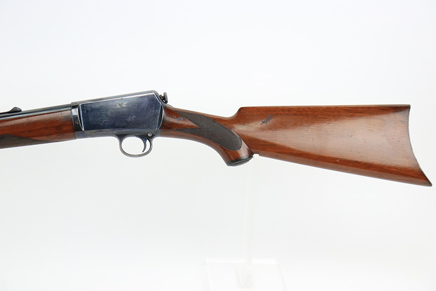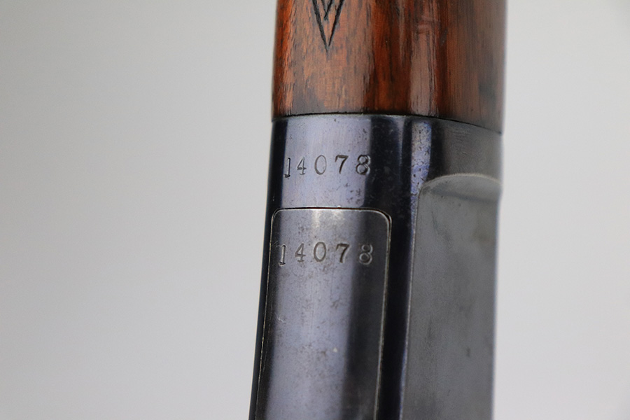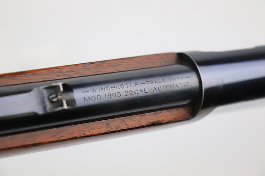8/12/22 – This is a very nice, early example of a Winchester Model 1903 semi auto rifle manufactured in 1904. The gun is matching and has retained the majority of its original bluing. Most of the wear is on the receiver, where there are some light scratches and an area of spotty wear and oxidation on the left side. Some thinning on the underside of the receiver and on the trigger guard. A few small scratches along the barrel. The stock is nice with minor handling marks throughout and a blemish on the left side of the butt stock. Excellent bore with strong rifling.