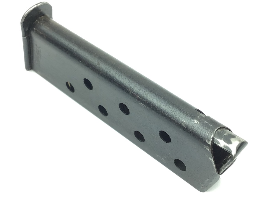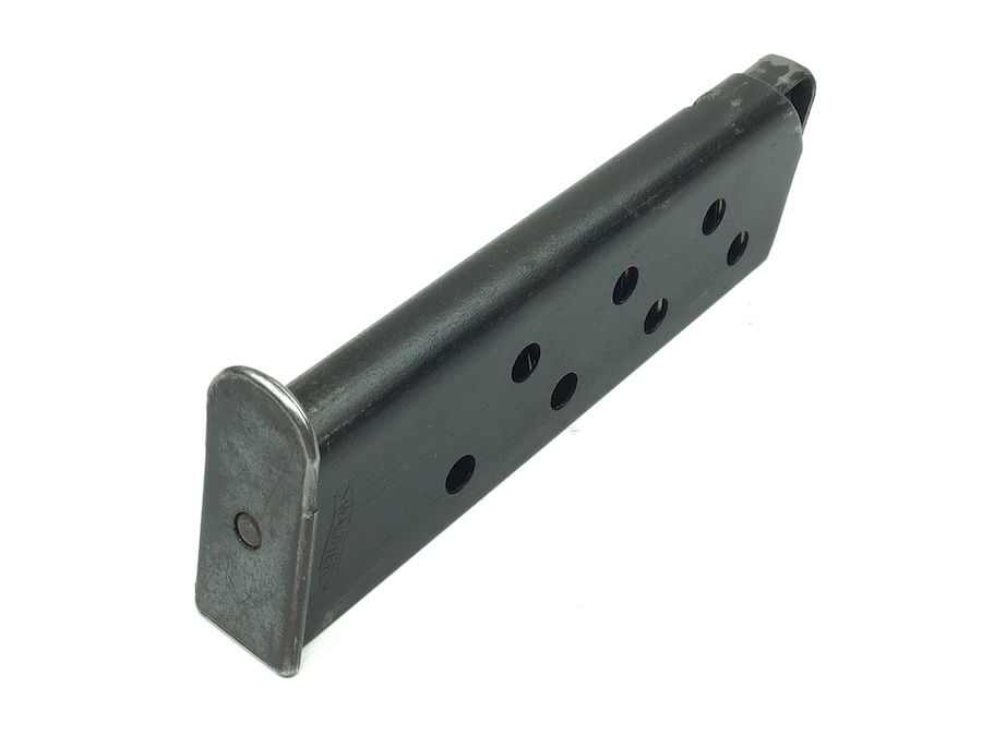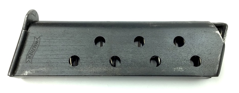 11/25/20 – This is an early variation Walther PP magazine from WW2. The magazine is high polish blued in excellent condition with a strong, fully functional spring and Walther banner stamp on one side. Guaranteed original.