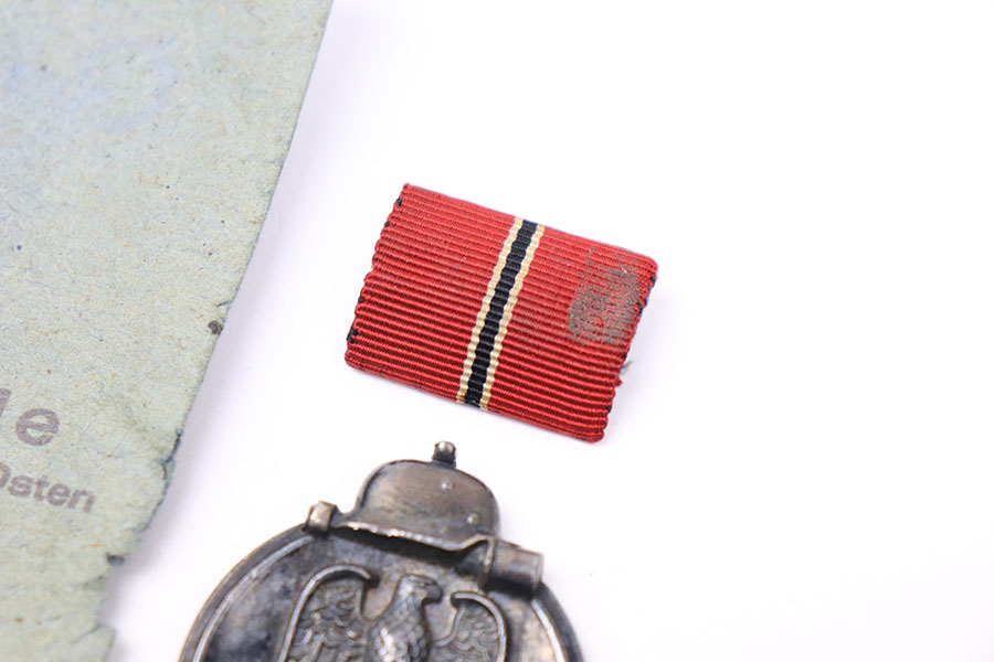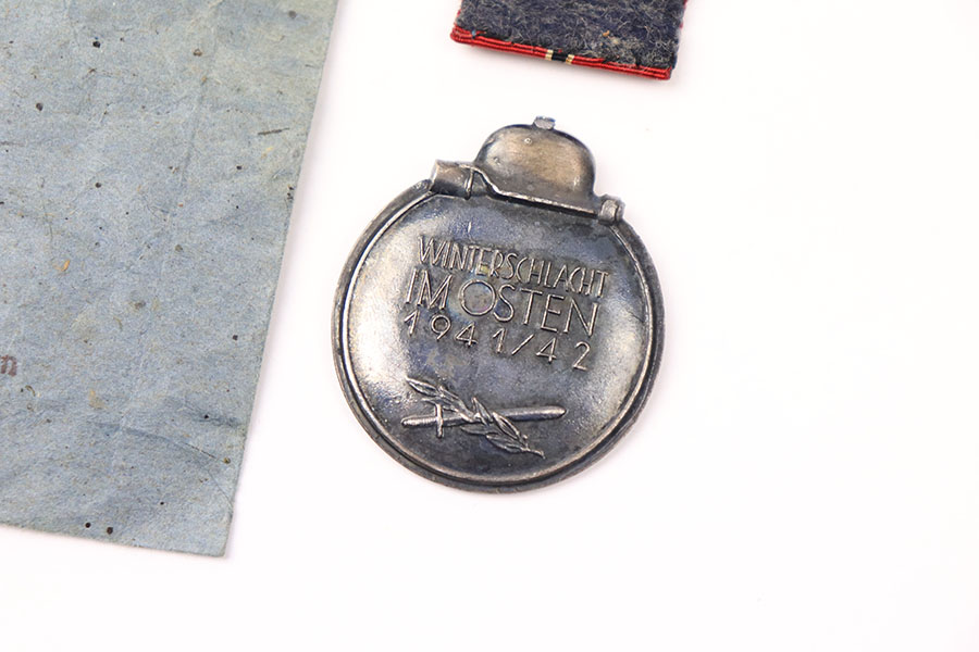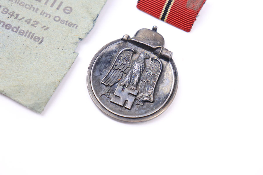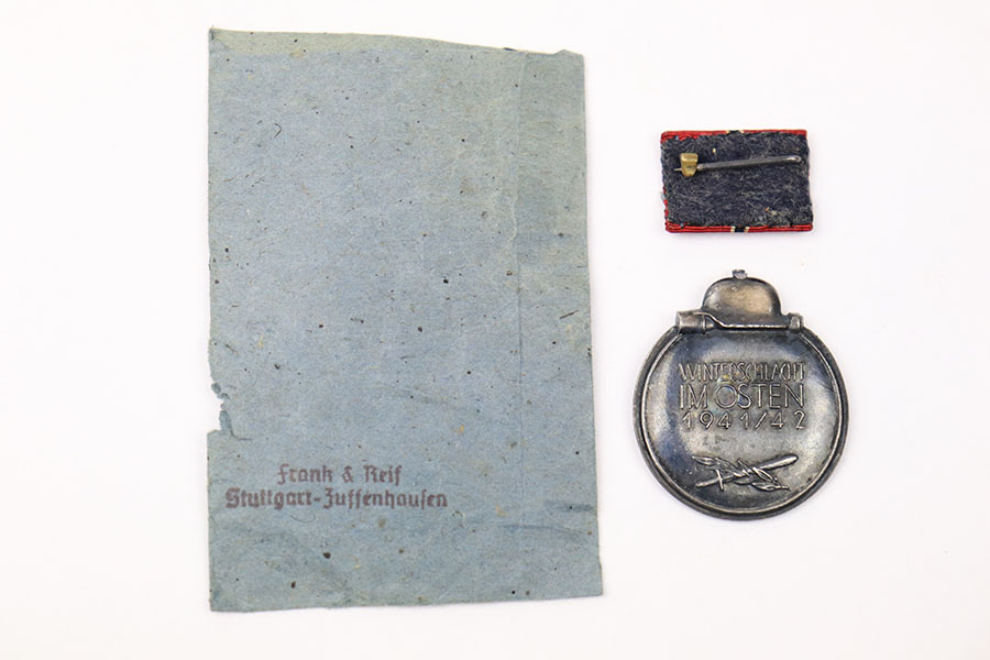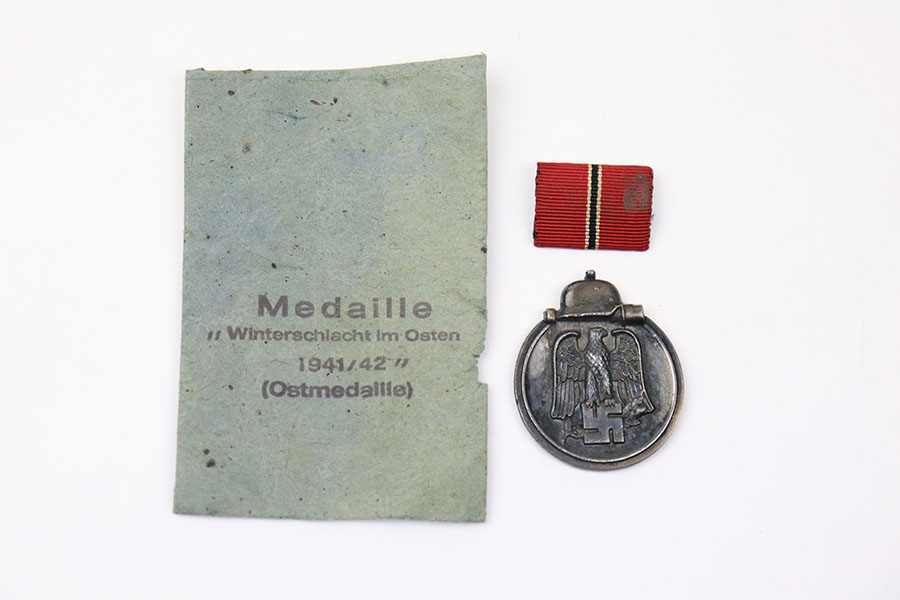 6/18/21 – This is an original German Eastern Front Medal for the efforts against Russia during WW2. The medal comes with an original uniform pin and envelope. All are in good overall condition.
