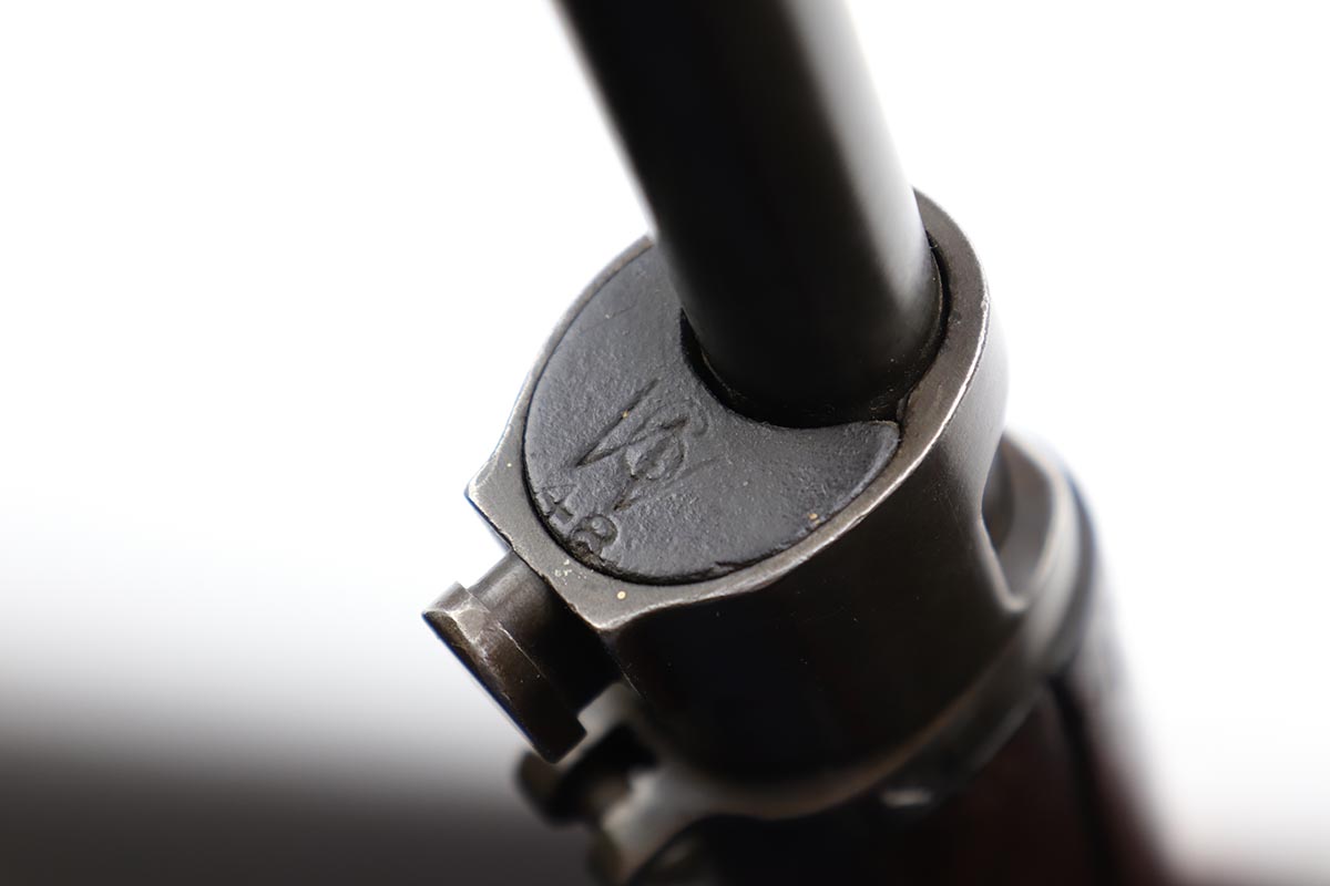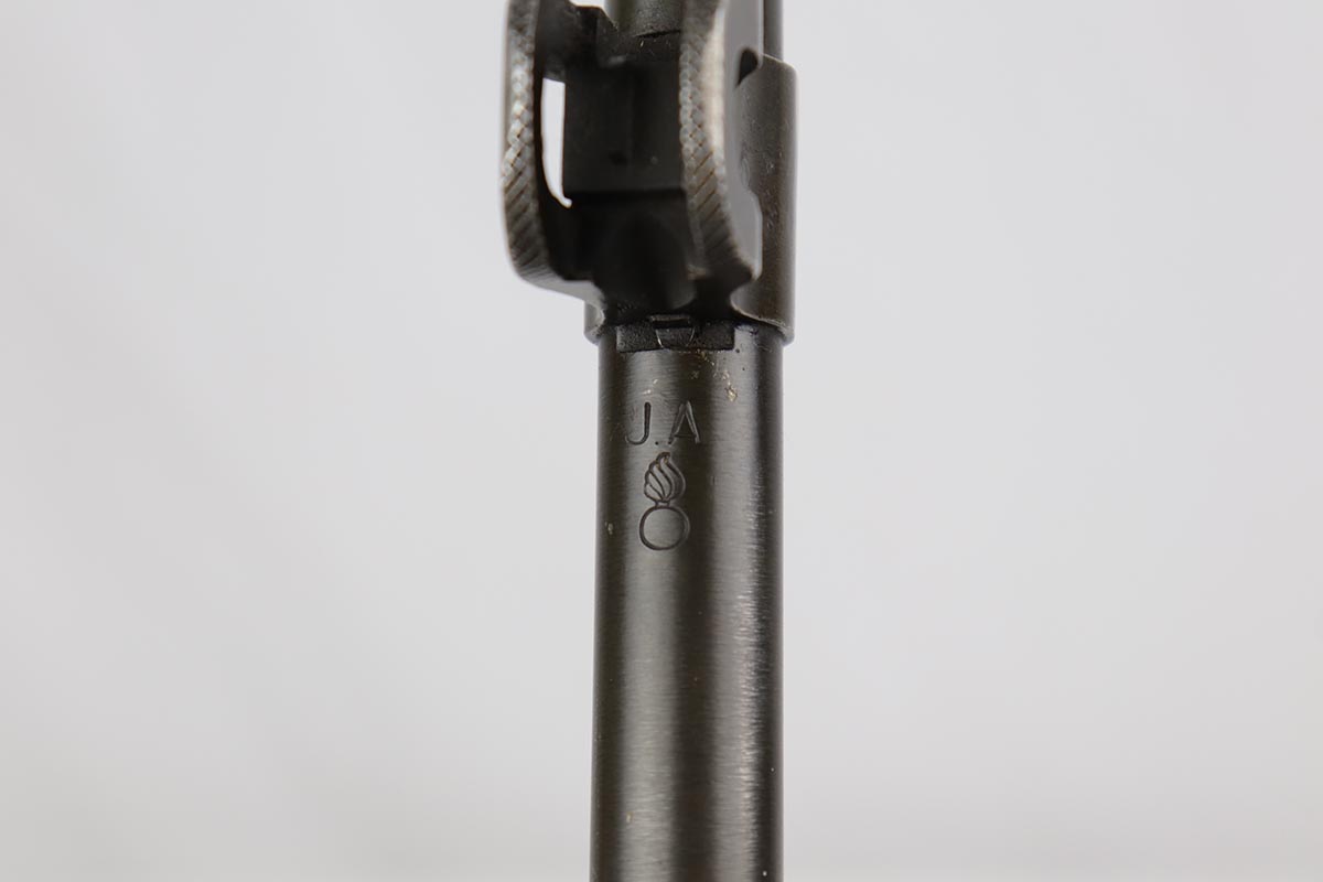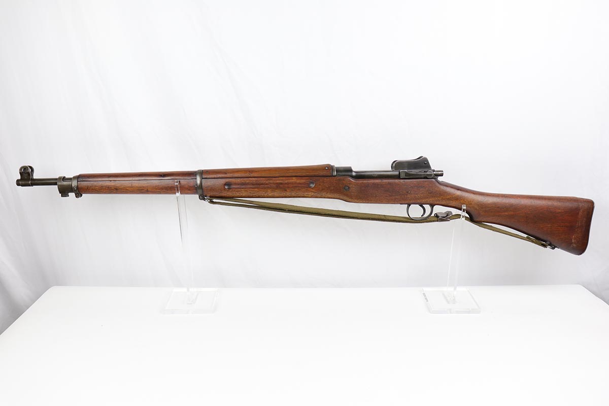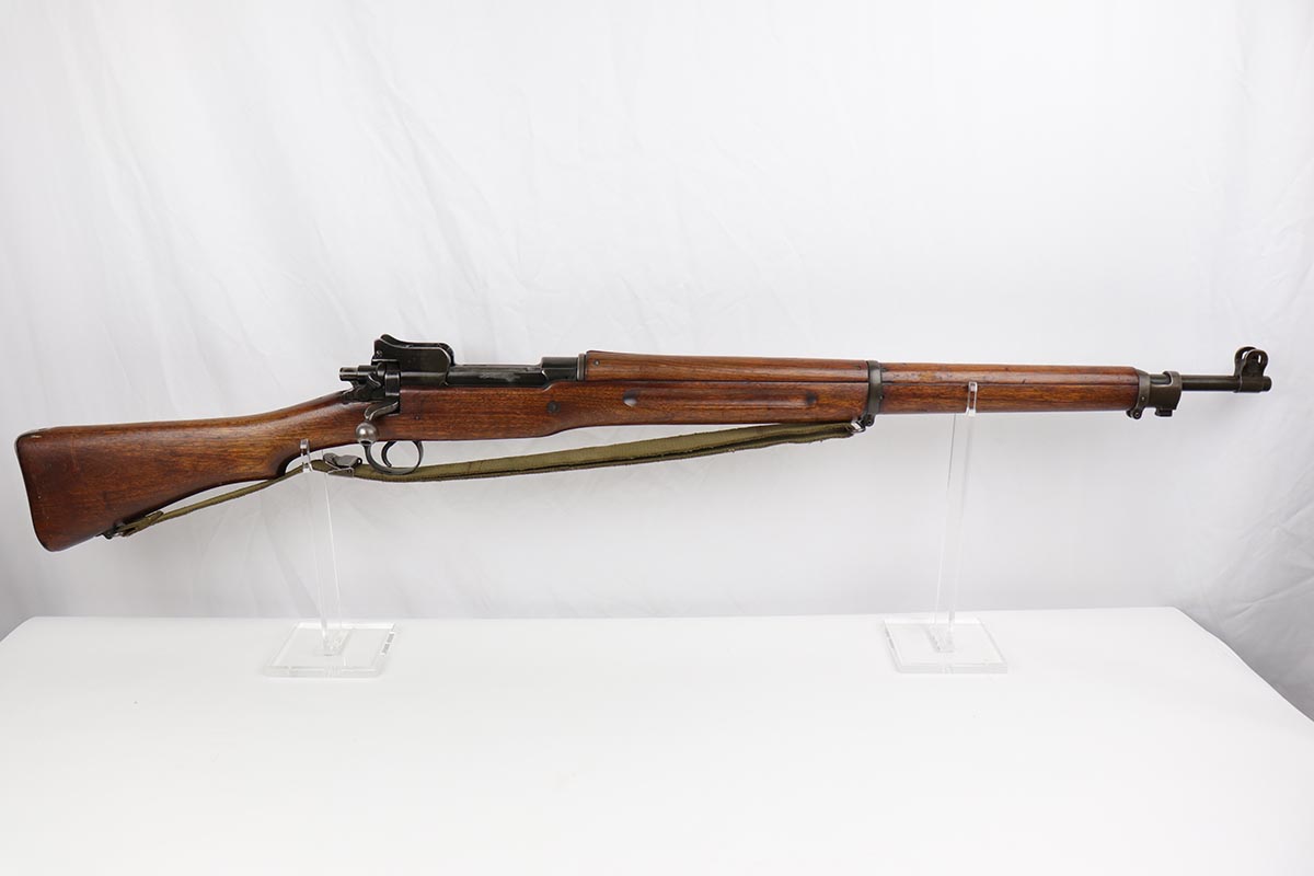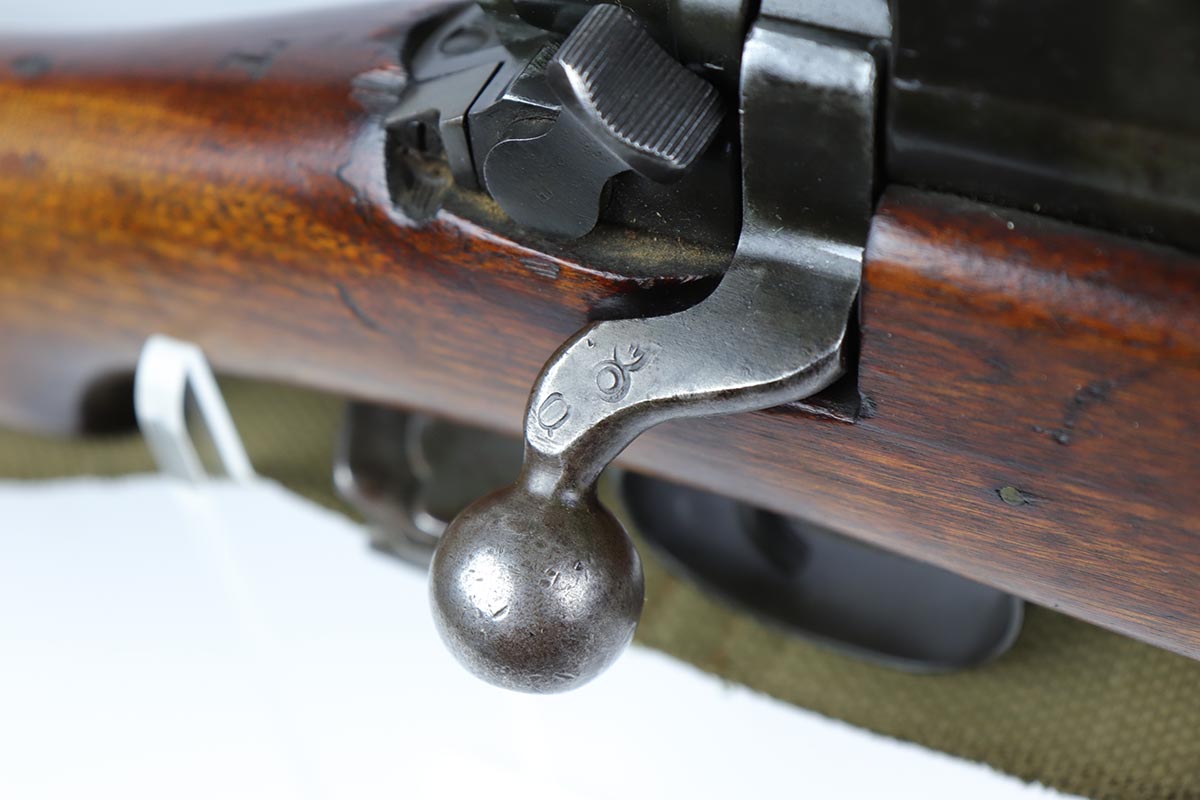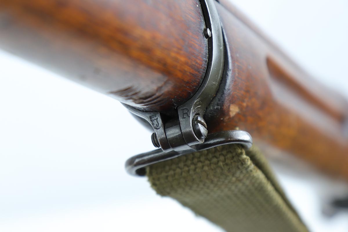 5/23/19 – This is a nice example of an Eddystone Model 1917 rifle. When the U.S. entered the Great War, it had a strong and urgent need to rifles to supply their military. The Springfield Armory had delivered approximately 843,000 M1903 Springfield rifles, but due to the difficulties in production, rather than re-tool the Pattern 14 factories to produce the standard U.S. rifle, the M1903 Springfield, it was realized that it would be much quicker to adapt the British design. The design was then modified to use the U.S. preferred .30-06 to simplify ammunition logistics. Eddystone would produced over 1,000,000 Model 1917 rifles over the course of the next few years. This particular rifle shows minor finish loss to the receiver and barrel, though it has a general dulling and some browning to the color. Some notable thinning of the bolt handle, buttplate and trigger housing assembly. Sharp flaming bomb proof on receiver, bolt and barrel. Barrel also marked ‘JA’. Stock is marked RA-P, and another proof that appears to be ‘3GM-K’ in rectangle. Very nice stock with no major chips or cracks, but a few dings and nicks. There is a minor surface crack behind the receiver, and some notches carved on the underside of the front portion. Bore has decent rifling but notable frost throughout. Original sling.