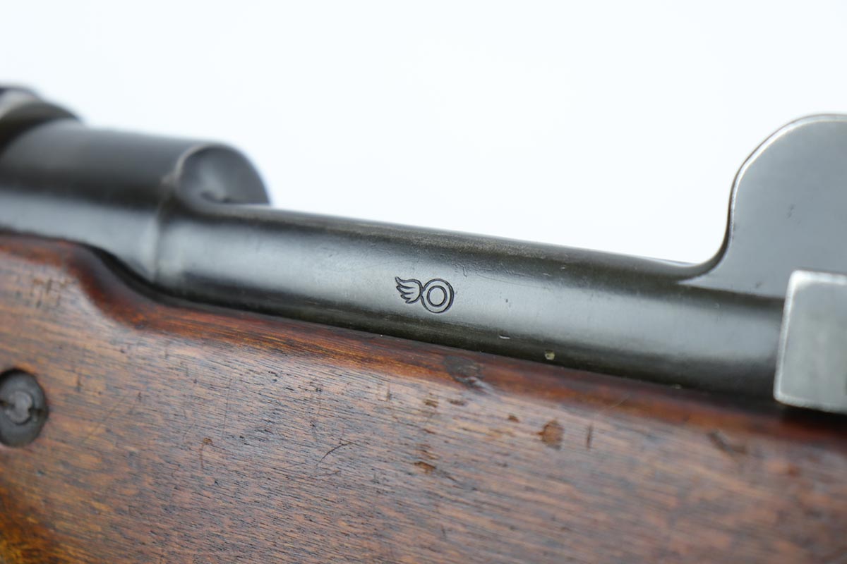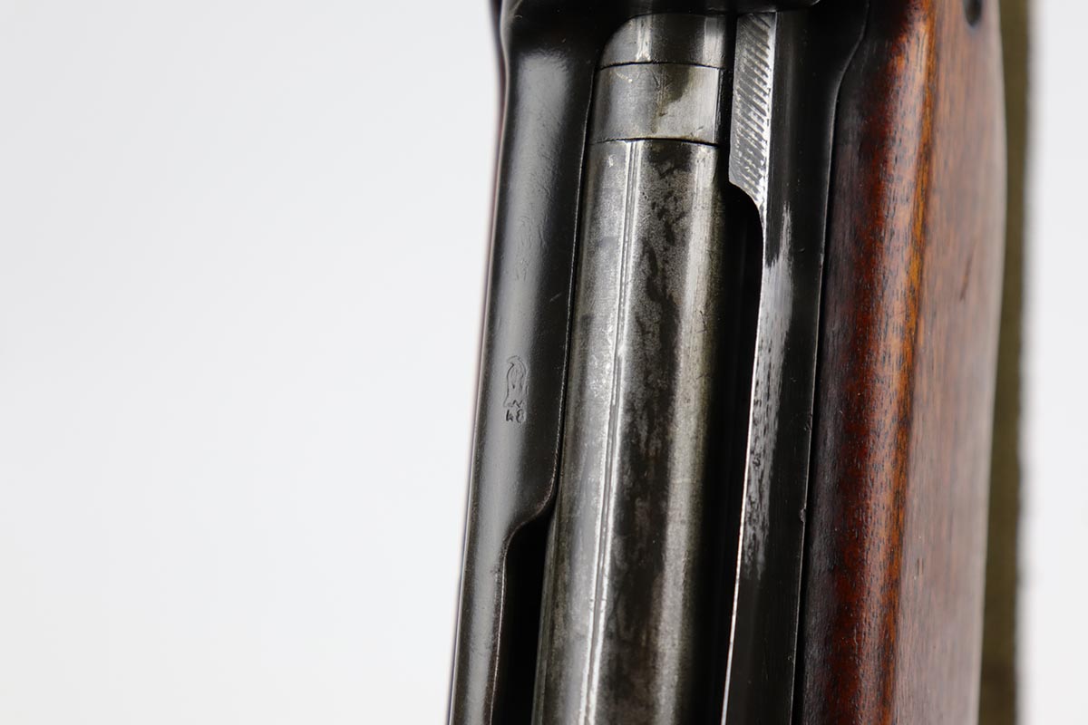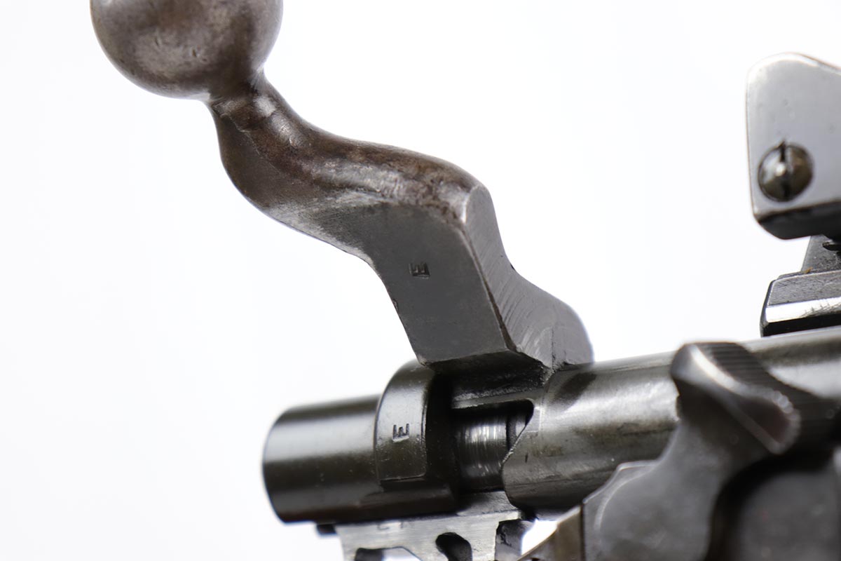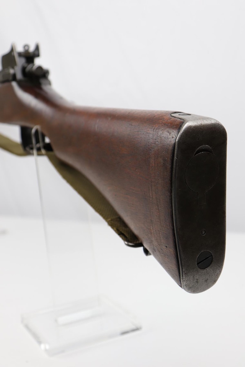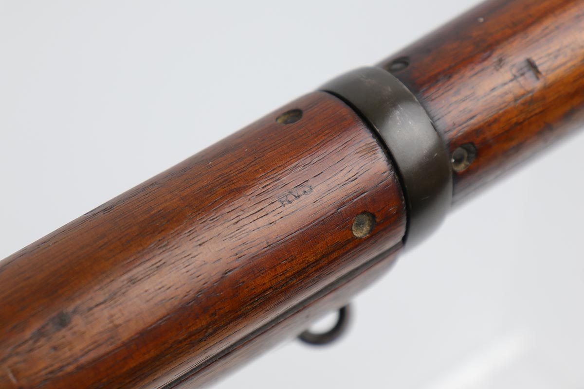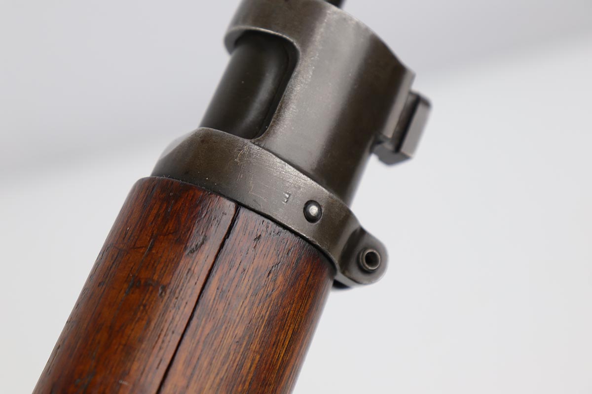 5/23/19 – This is a nice example of an Eddystone Model 1917 rifle. When the U.S. entered the Great War, it had a strong and urgent need to rifles to supply their military. The Springfield Armory had delivered approximately 843,000 M1903 Springfield rifles, but due to the difficulties in production, rather than re-tool the Pattern 14 factories to produce the standard U.S. rifle, the M1903 Springfield, it was realized that it would be much quicker to adapt the British design. The design was then modified to use the U.S. preferred .30-06 to simplify ammunition logistics. Eddystone would produced over 1,000,000 Model 1917 rifles over the course of the next few years. This particular rifle shows minor finish loss to the receiver and barrel, though it has a general dulling and some browning to the color. Some notable thinning of the bolt handle, buttplate and trigger housing assembly. Sharp flaming bomb proof on receiver, bolt and barrel. Barrel also marked ‘JA’. Stock is marked RA-P, and another proof that appears to be ‘3GM-K’ in rectangle. Very nice stock with no major chips or cracks, but a few dings and nicks. There is a minor surface crack behind the receiver, and some notches carved on the underside of the front portion. Bore has decent rifling but notable frost throughout. Original sling.