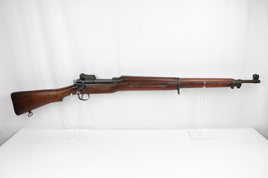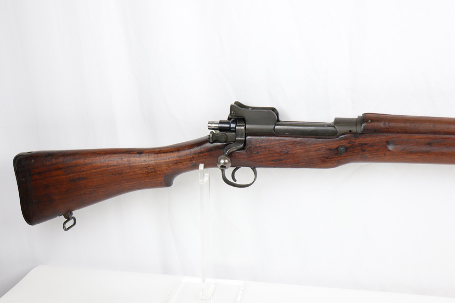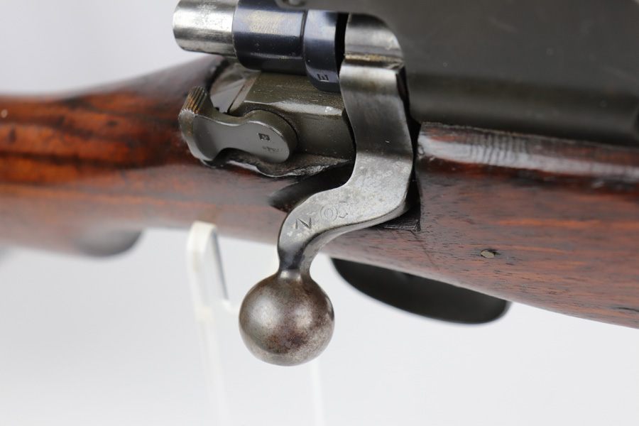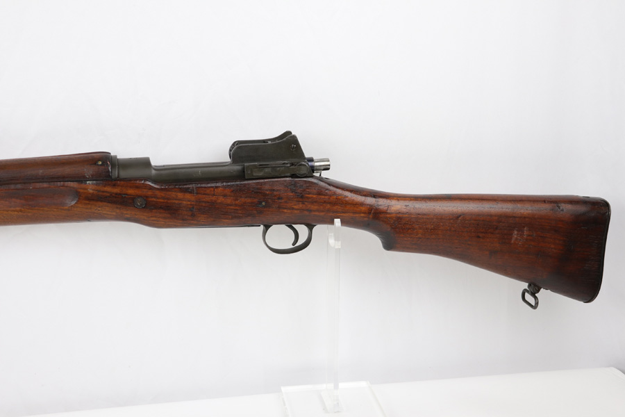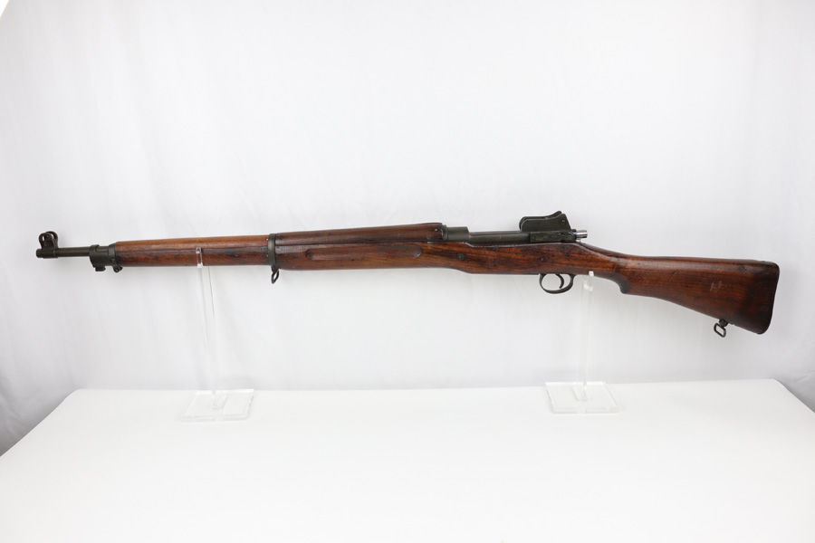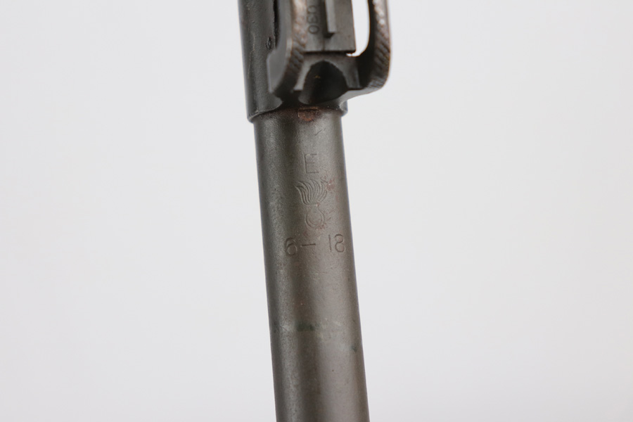 8/1/19 – This is an original late WW1 production 1918 dated Eddystone rifle. The rifle is in great to excellent condition overall. The metal has no rust or pitting, and almost all of the original bluing in tact. The receiver and barrel are flaming bomb ordnance stamped. The bore is the biggest (and only) issue with this rifle, being 5/10 rated due to corrosion and residue throughout. Would really benefit from a good cleaning, and would likely greatly improve as the rifling appears strong still. Externally there’s minimal wear of note on the metal and wood stock. 1918 dated on the barrel. Smooth action and fully functional.