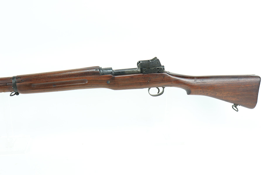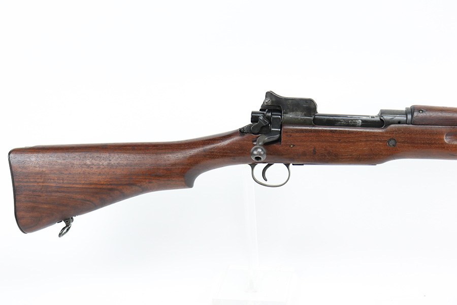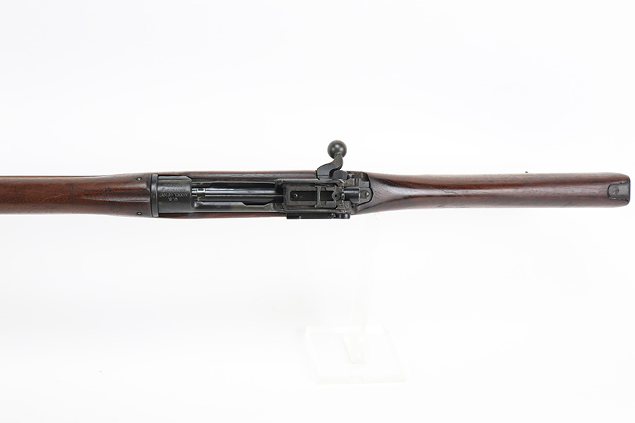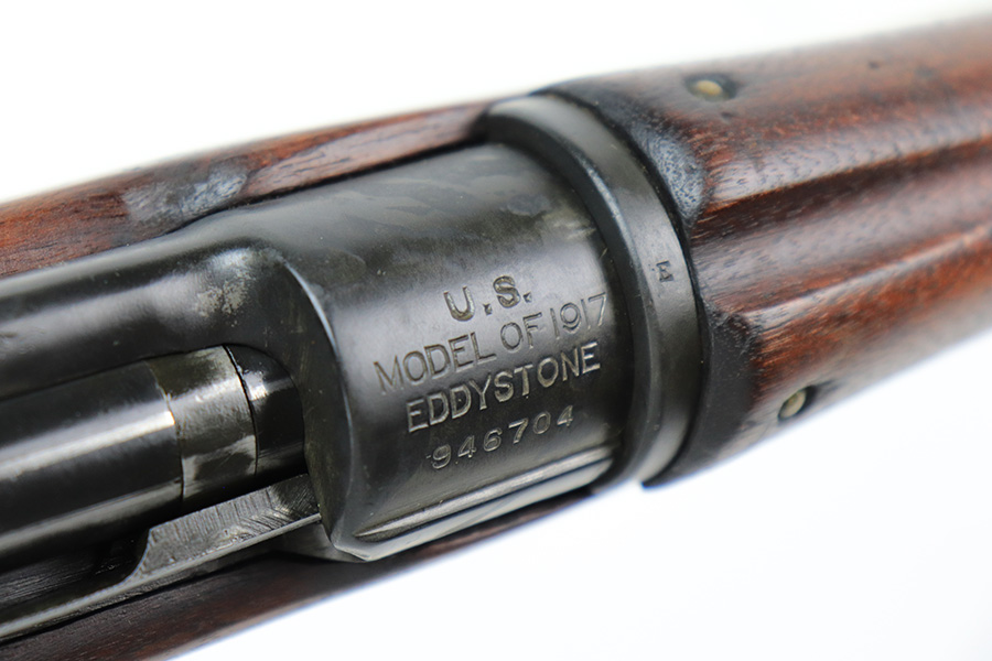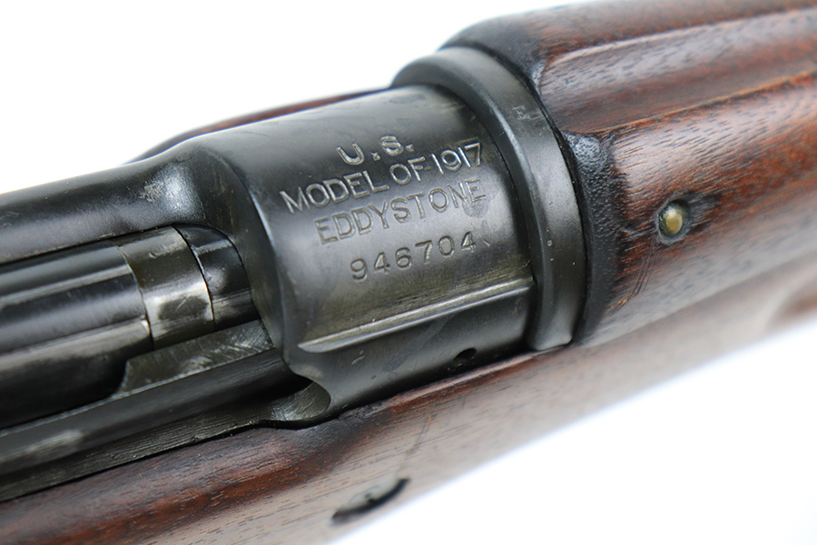 6/9/22 – This is a very nice example of an Eddystone Model 1917 issued to the US military in 1918. Most of the parts are “E” marked, but the barrel is Winchester and dated September of 1918. Flaming bomb and Eagle Head military proofs on the receiver. The stock has an “S SAA” San Antonio Arsenal rework marking. There is also a “P” proof and Eagle Head stamp on the underside of the wrist. There isn’t a ton of actual finish loss, but there is splotchy discoloration on the receiver. Excellent stock with only a few light handling marks and scratches here and there. Minty bore.