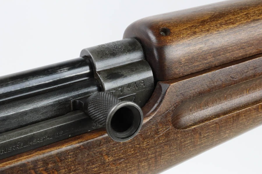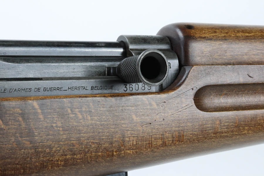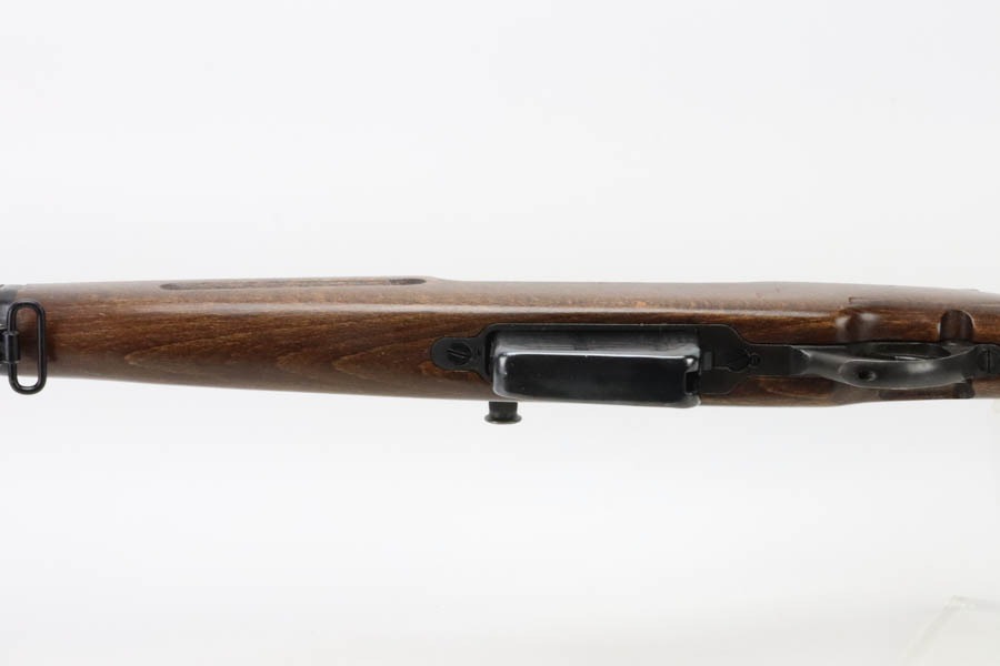 10/29/24 – For sale is an Egyptian Contract FN49 made in 1949. The rifle was rebuilt by Century Arms prior to sale to the US Market. The finish on the metal is well worn with some of the parkerized finish remaining. The stock is a replacement and is not serialized to the rifle. The receiver cover and receiver are not matching. The bore is fairly bright but there is some fine pin prickling of pitting visible in the grooves. Theres some pressure marks on the stock.
