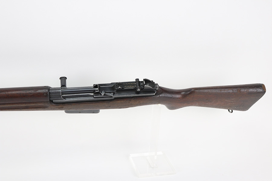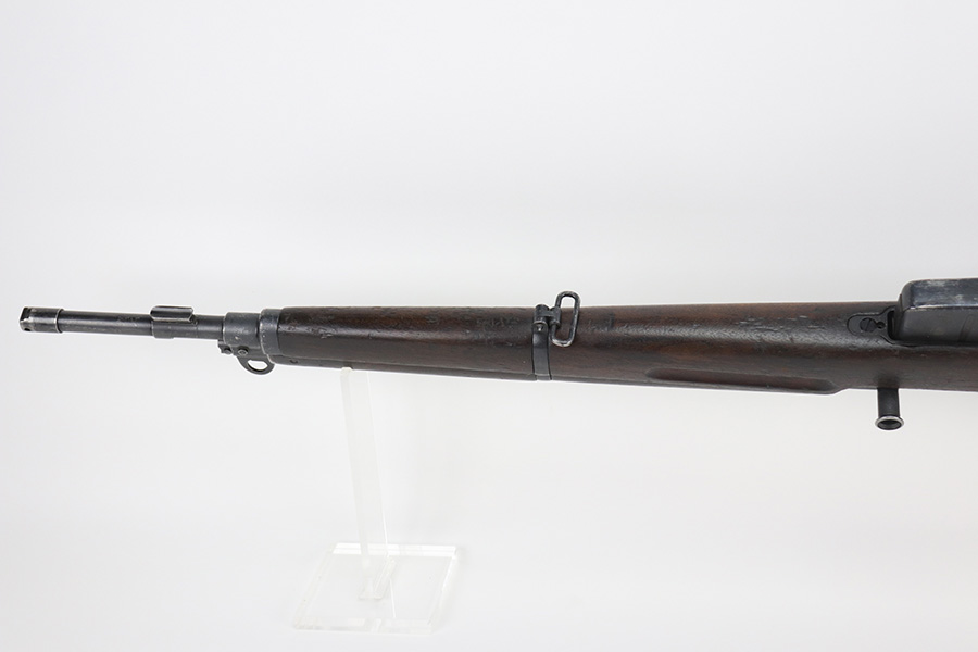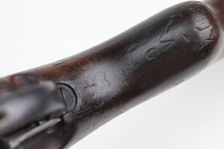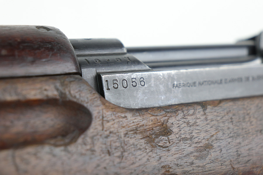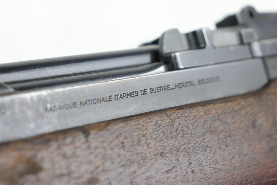 11/23/21 – This is a nice example of an FN Model 1949 rifle that was part of an Egyptian military contract. There’s standard high edge wear on the receiver, barrel and magazine, and an import mark on the barrel. The FN49 was designed by the Belgian manufacturer Fabrique Nationale before WWII; however, plans to produce the semi-automatic rifle were abandoned when the Germans occupied Belgium. Many FN engineers fled to England during the war and returned to Belgium when it was liberated by the allies in 1944. With their return to Belgium these engineers revitalized their plans for what would eventually become the FN49 (also known as the SAFN short for “semi-automatic FN”). While the FN49 was high quality in its time, it saw limited production and use because it did not come into production until after WWII and it eventually had to compete with the popular HK G3 and FN FAL rifles which utilized more modern technology. The FN49 was produced for 8 primary contracts. This particular rifle was produced for the second contract which brought 37,641 FN49 rifles to Egypt in 1949. Many rifles in this contract were used in Suez Crisis in 1956. As with all Egyptian contract FN49s, this rifle is chambered for 7.92x57mm Mauser. The receiver, stock and barrel are matching serials in Arabic numerals (see photos). Markings, including the Egyptian crest, are sharp and clear on the receiver. The stock is in good condition, with stock disk present. It does have many dings but no cracks. Excellent bore.