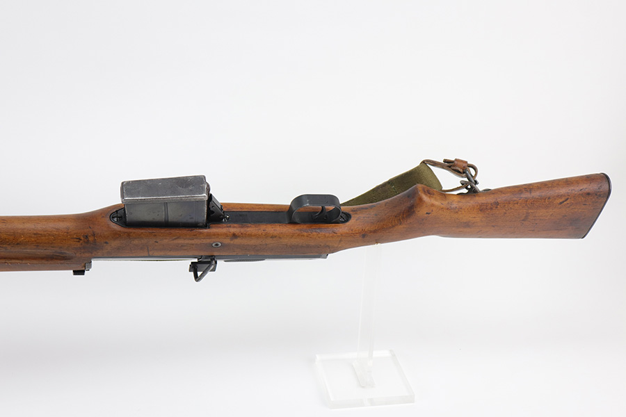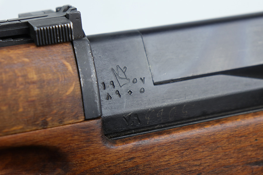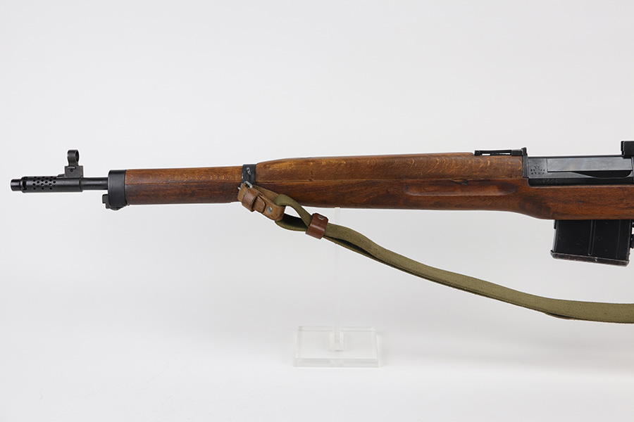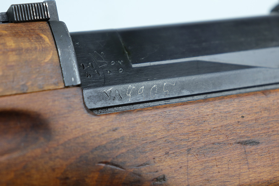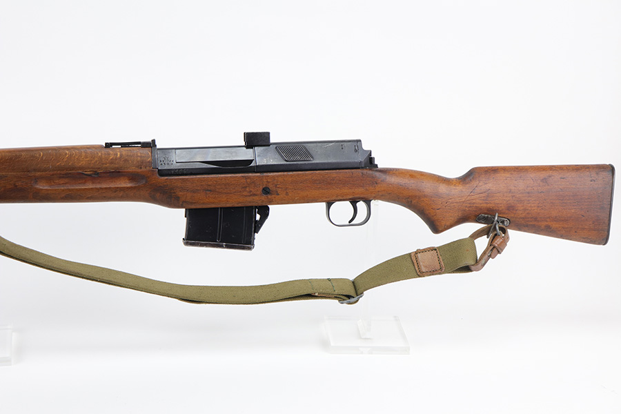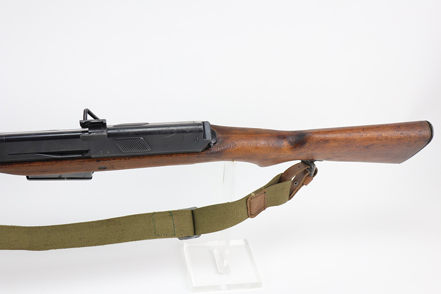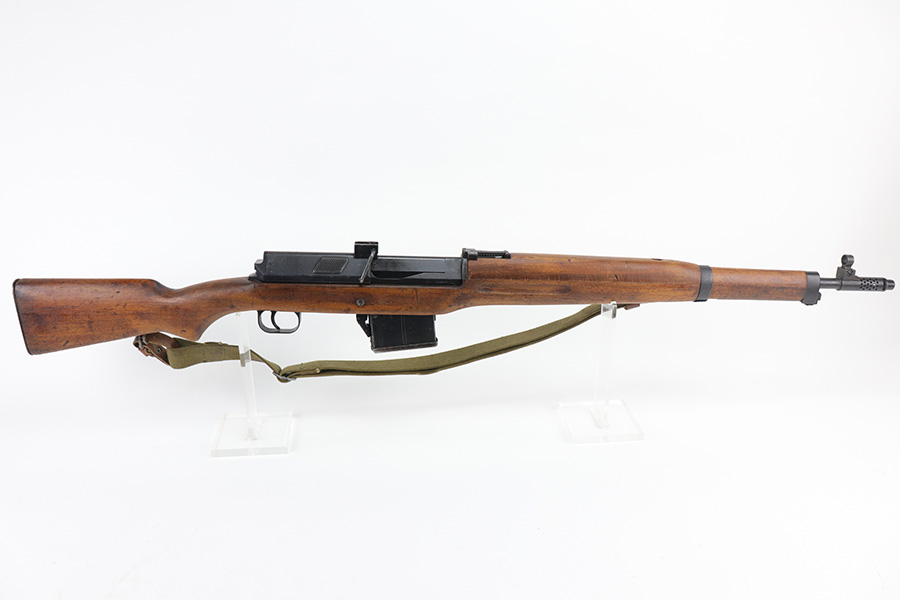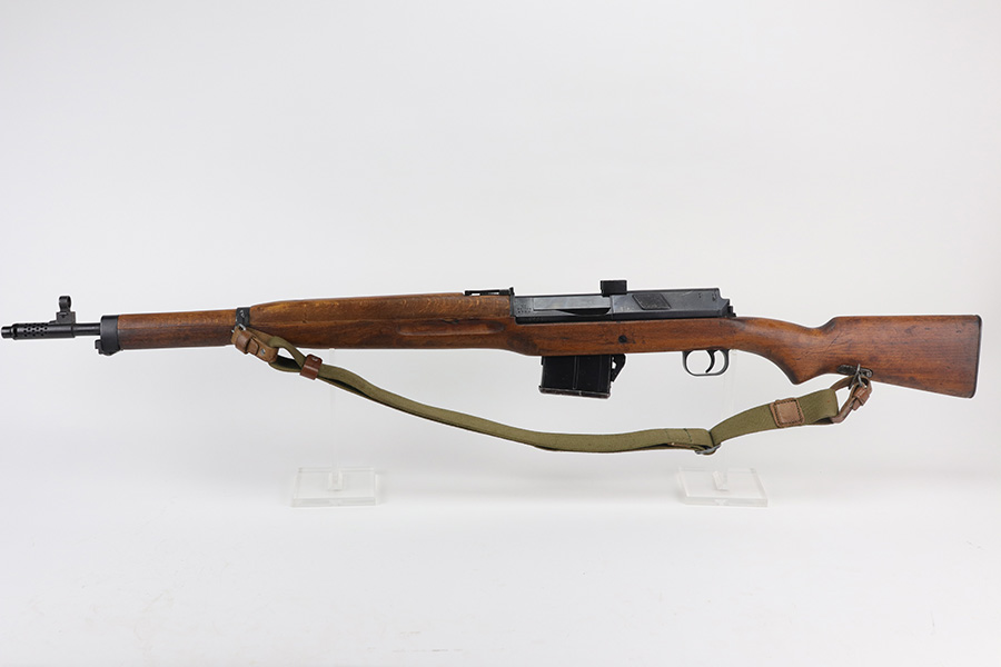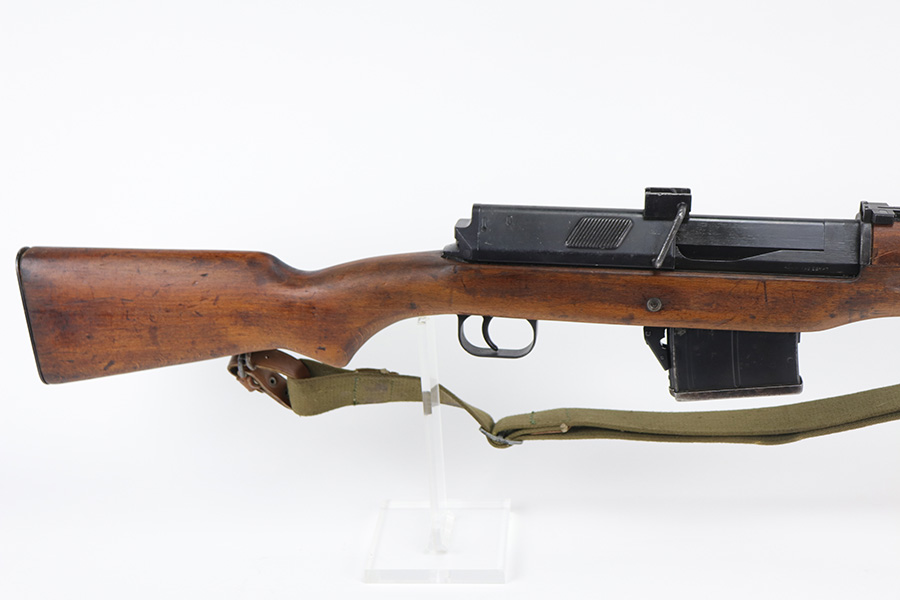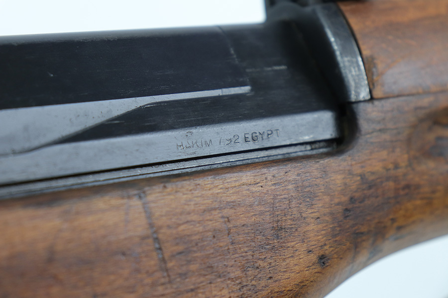 9/8/21 – The Hakim Rifle is a gas operated semi-automatic rifle. It was originally designed by Sweden and produced as the Ag m/42 for the Swedish Army. The tooling and design were later sold to Egypt, and the Hakim was produced there during the 1950s and early 1960s. It was replaced in the mid-1960s by the Maadi AK-47 (a licensed copy of the Soviet rifle) but was stored in military reserve arsenals. In more recent years, it has been observed in use by some Egyptian police units. Around 70,000 were made. This particular example is in excellent condition, but does have a small import mark on the underside of the barrel. Excellent bluing on barrel and receiver but may be arsenal refurbished. Bore has strong rifling but needs a thorough cleaning and is frosted throughout. Very nice stock with just a small chip on left side. Includes canvas sling.