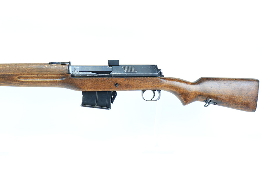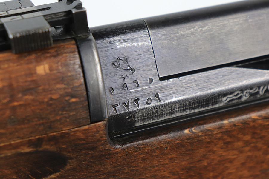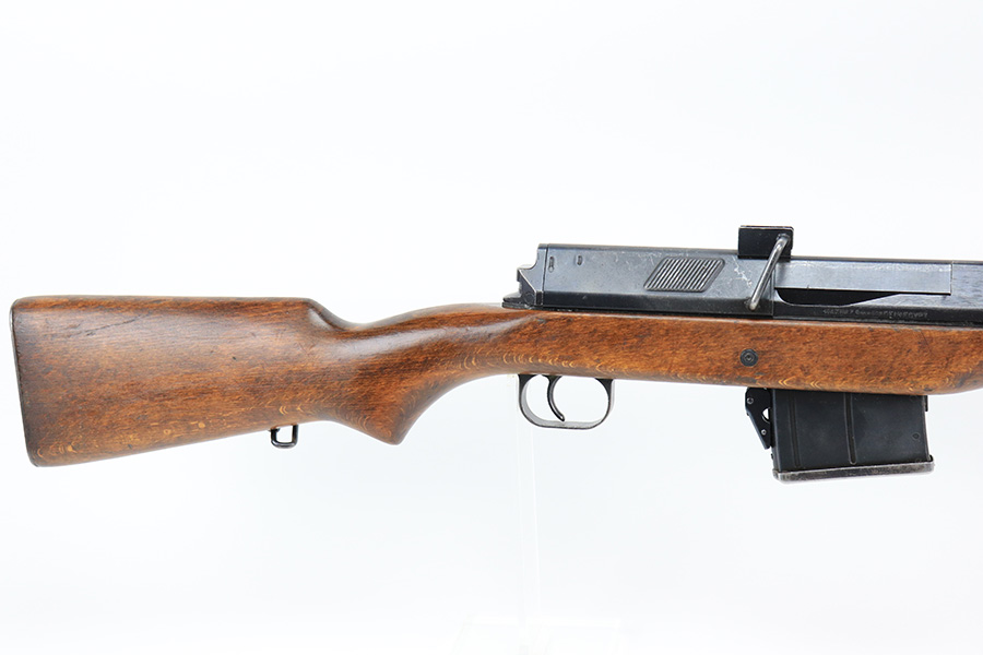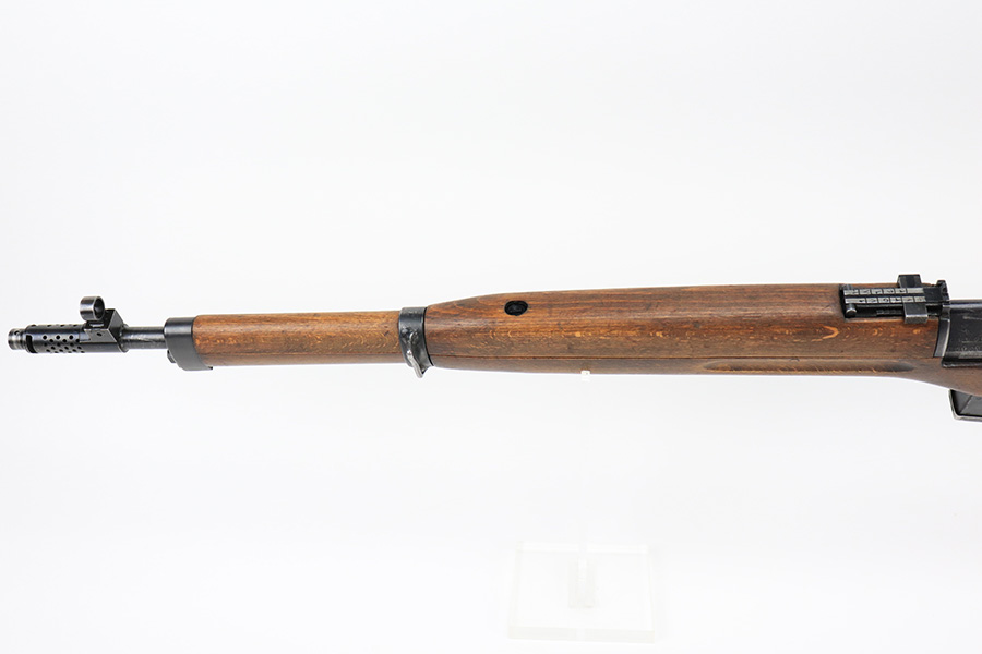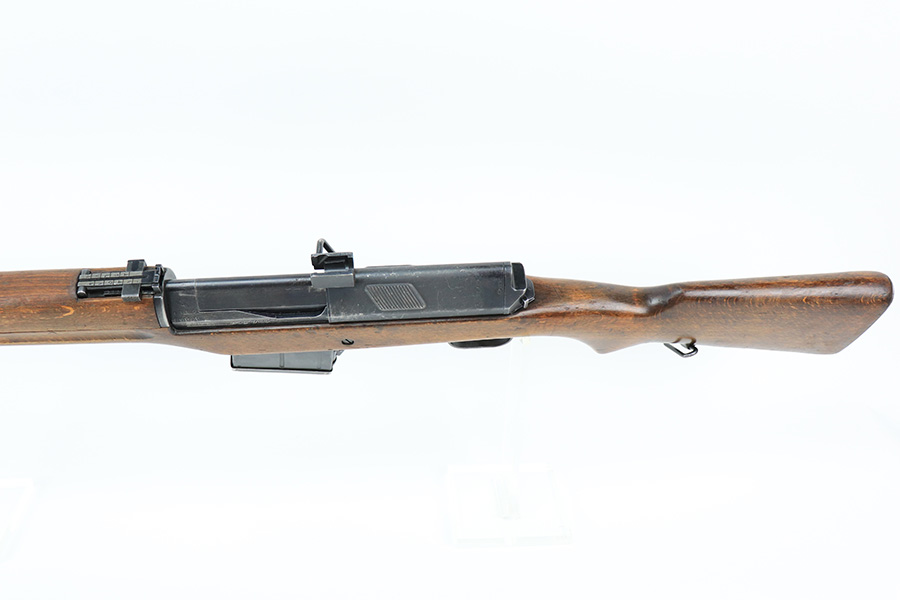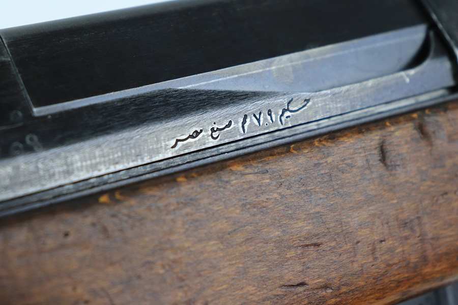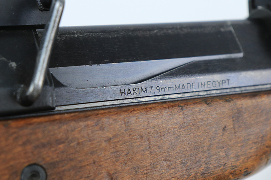 5/5/22 – The Hakim Rifle is a gas operated semi-automatic rifle. It was originally designed by Sweden and produced as the Ag m/42 for the Swedish Army. The tooling and design were later sold to Egypt, and the Hakim was produced there during the 1950s and early 1960s. It was replaced in the mid-1960s by the Maadi AK-47 (a licensed copy of the Soviet rifle) but was stored in military reserve arsenals. In more recent years, it has been observed in use by some Egyptian police units. Around 70,000 were made. This particular example is all original with import mark on barrel. It has retained most of its finish, but there are some light scratches and scuffs in the finish throughout, most noticeable on the breech cover. Very nice stock with tiny bruises throughout. Shiny bore with strong rifling.
