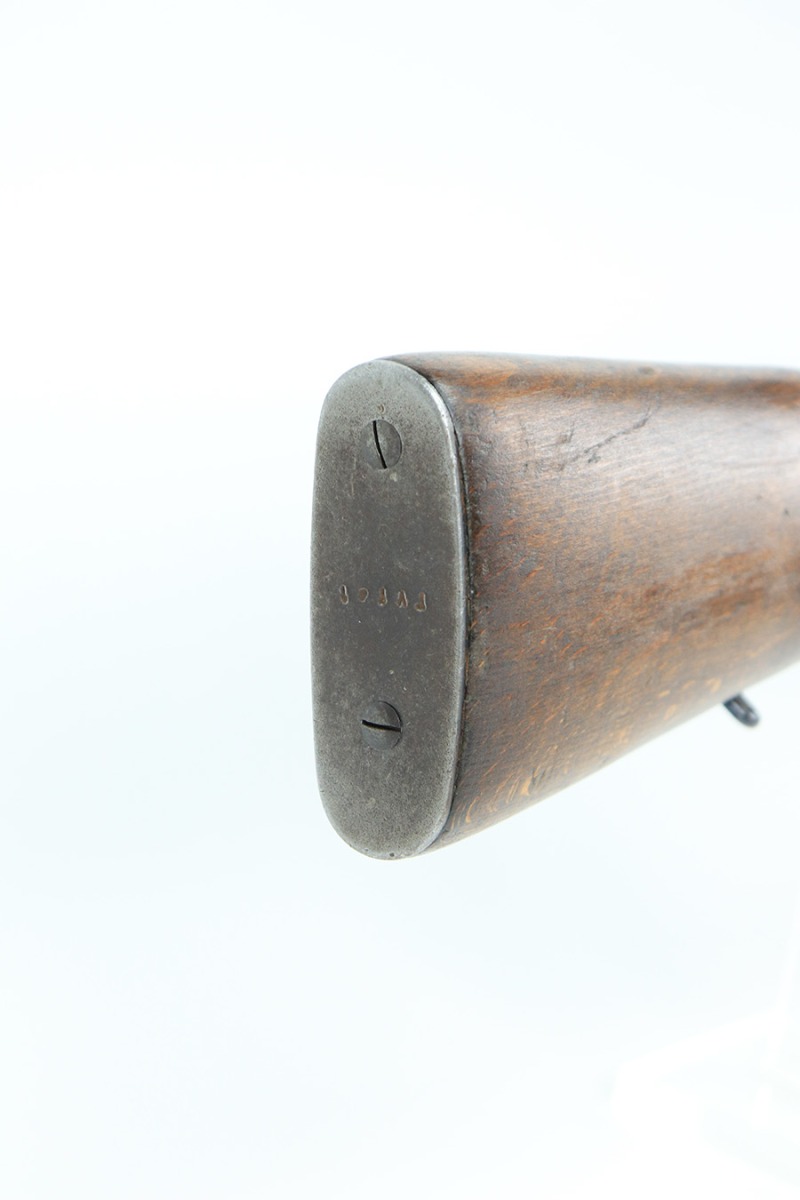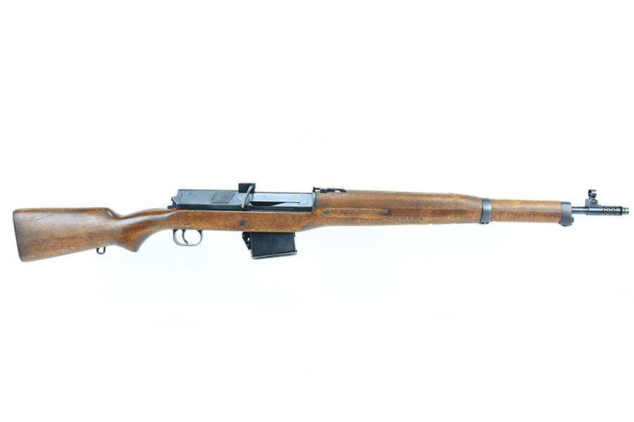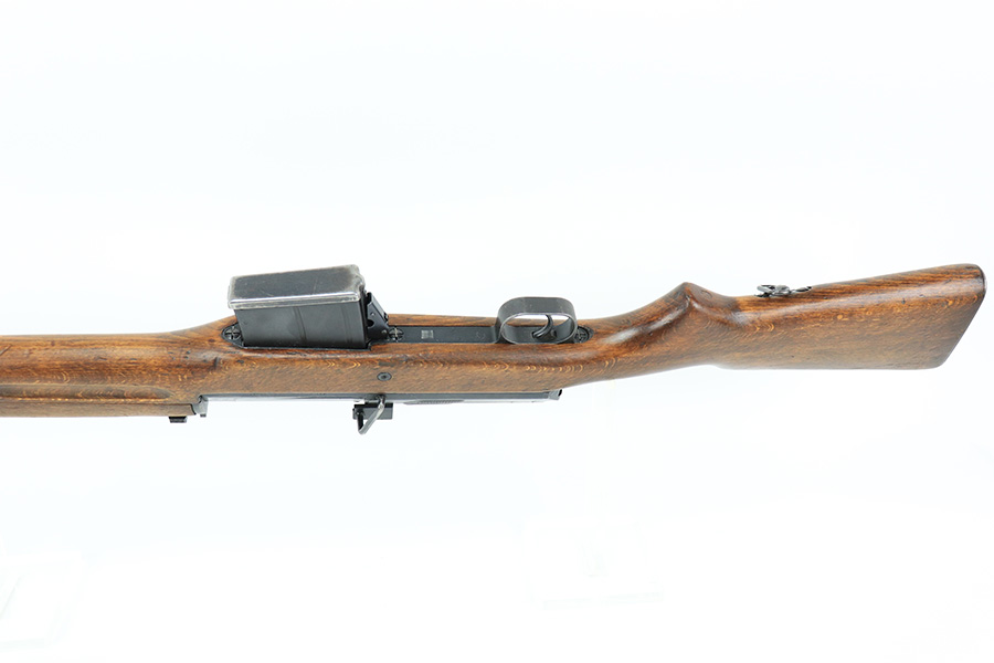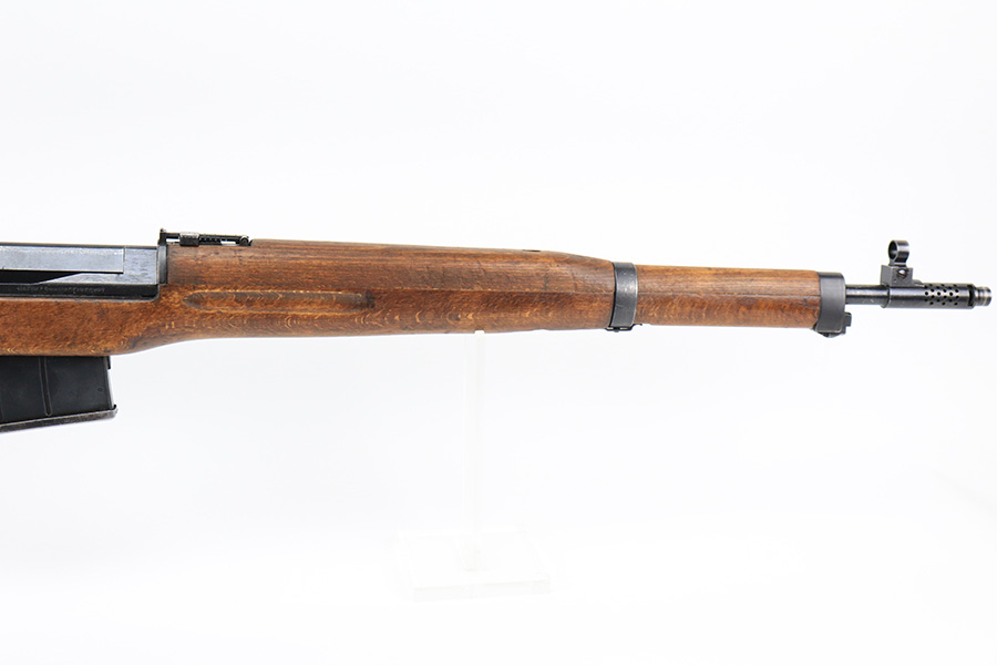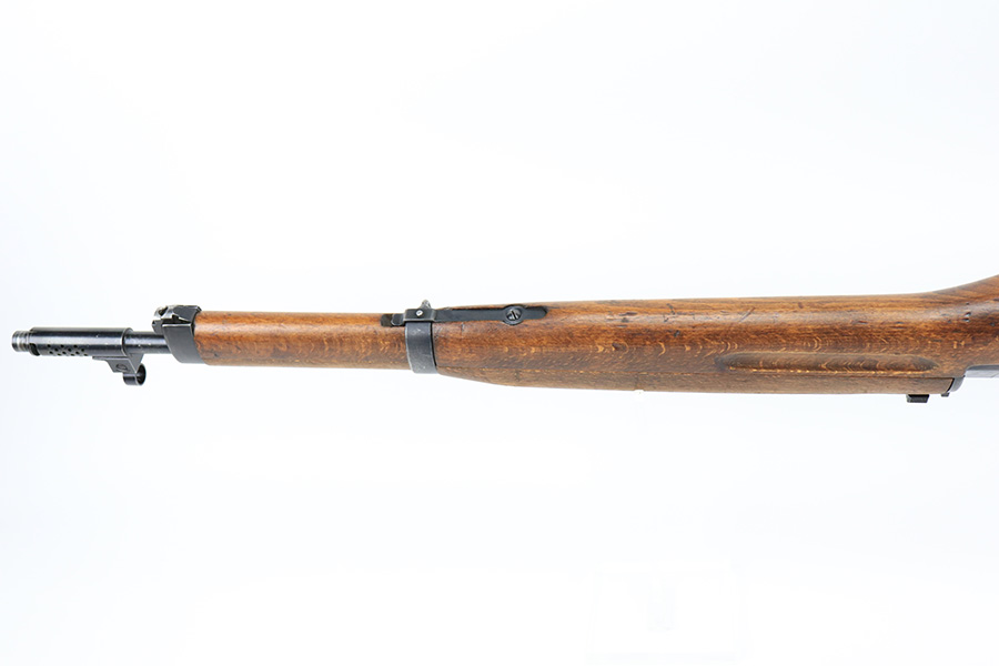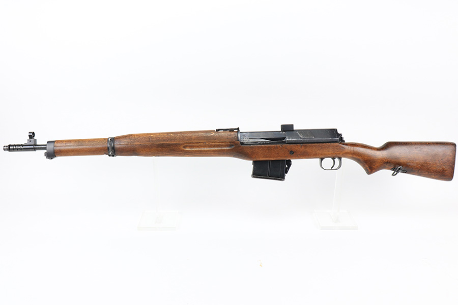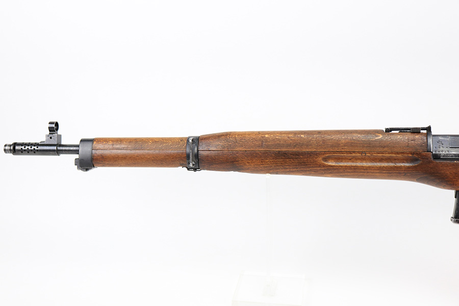 5/5/22 – The Hakim Rifle is a gas operated semi-automatic rifle. It was originally designed by Sweden and produced as the Ag m/42 for the Swedish Army. The tooling and design were later sold to Egypt, and the Hakim was produced there during the 1950s and early 1960s. It was replaced in the mid-1960s by the Maadi AK-47 (a licensed copy of the Soviet rifle) but was stored in military reserve arsenals. In more recent years, it has been observed in use by some Egyptian police units. Around 70,000 were made. This particular example is all original with import mark on barrel. It has retained most of its finish, but there are some light scratches and scuffs in the finish throughout, most noticeable on the breech cover. Very nice stock with tiny bruises throughout. Shiny bore with strong rifling.