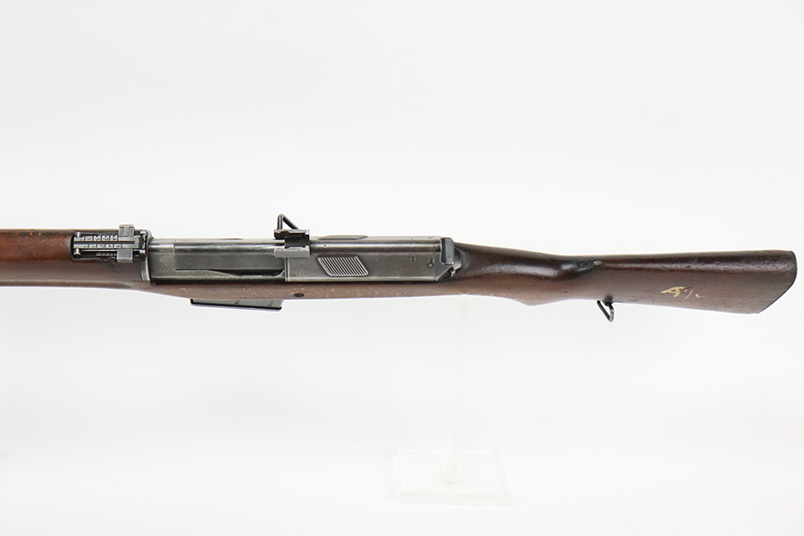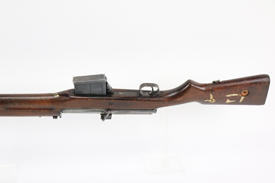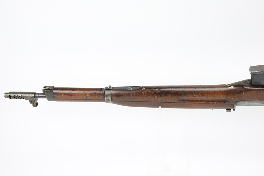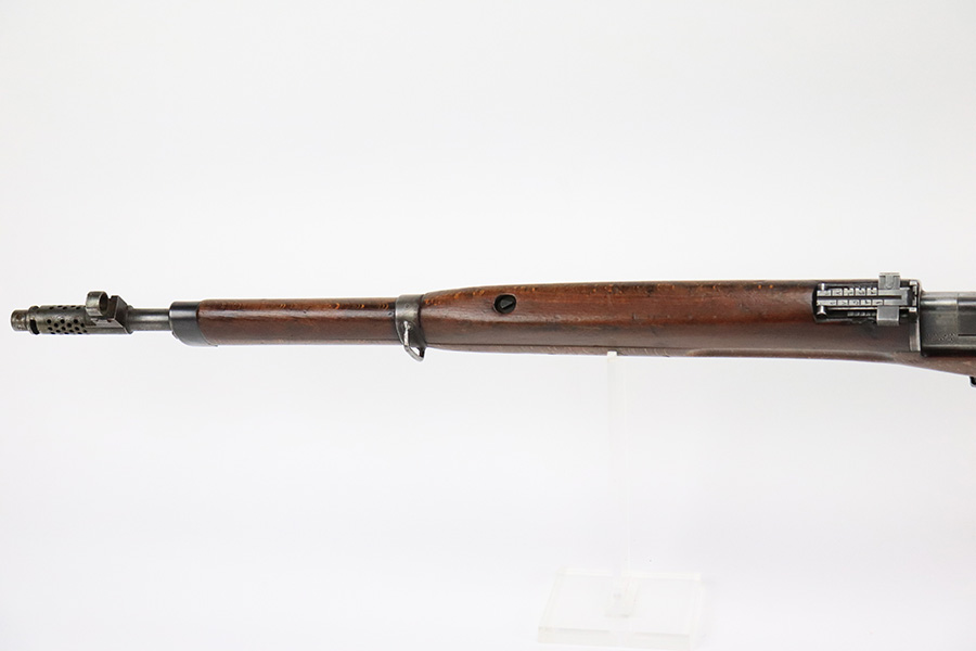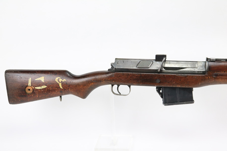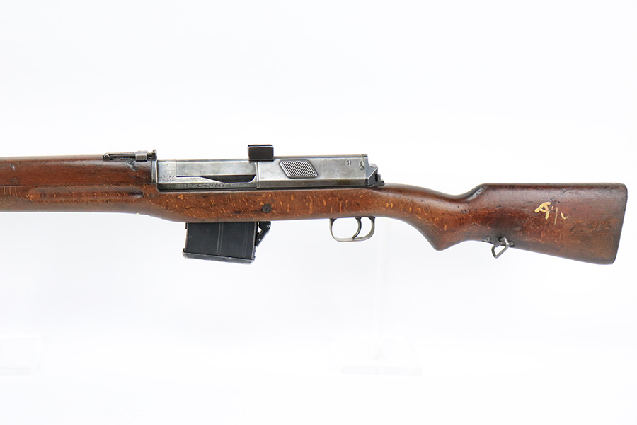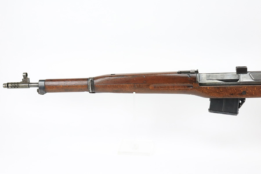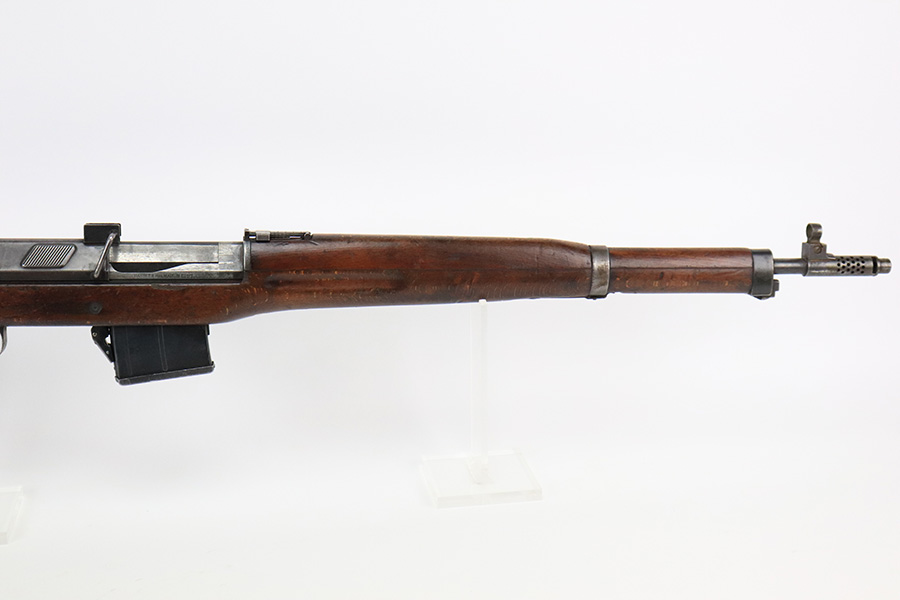 7/29/22 – The Hakim Rifle is a gas operated semi-automatic rifle. It was originally designed by Sweden and produced as the Ag m/42 for the Swedish Army. The tooling and design were later sold to Egypt, and the Hakim was produced there during the 1950s and early 1960s. It was replaced in the mid-1960s by the Maadi AK-47 (a licensed copy of the Soviet rifle) but was stored in military reserve arsenals. In more recent years, it has been observed in use by some Egyptian police units. Around 70,000 were made. This particular example is all original with import mark on barrel. The finish is original but shows thinning and/or patina in most areas. Very nice stock with tiny bruises throughout. Bore has strong rifling but some frost throughout.
