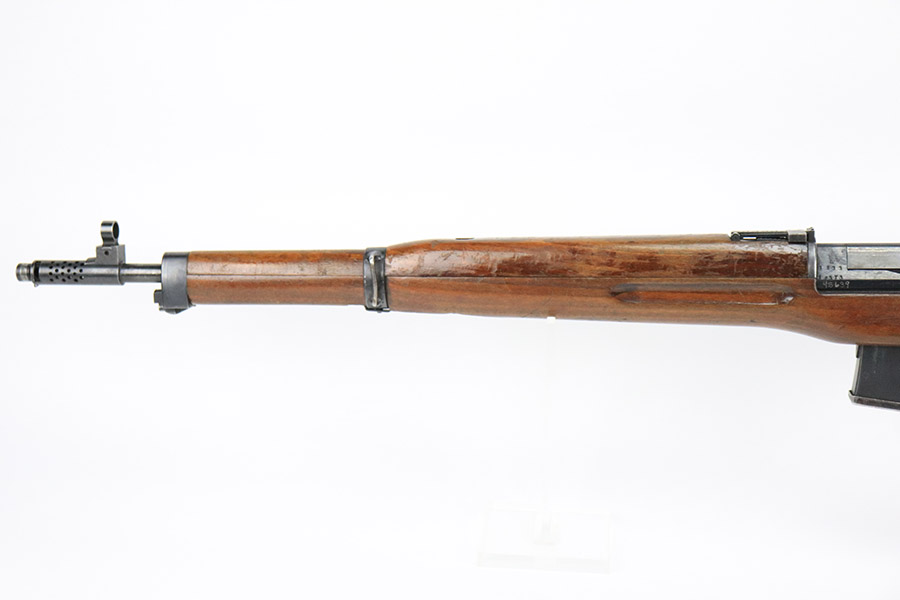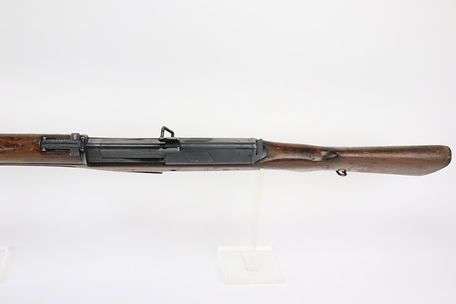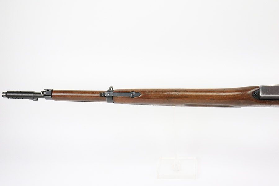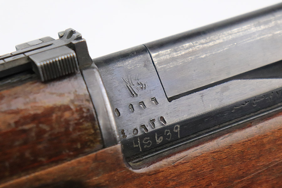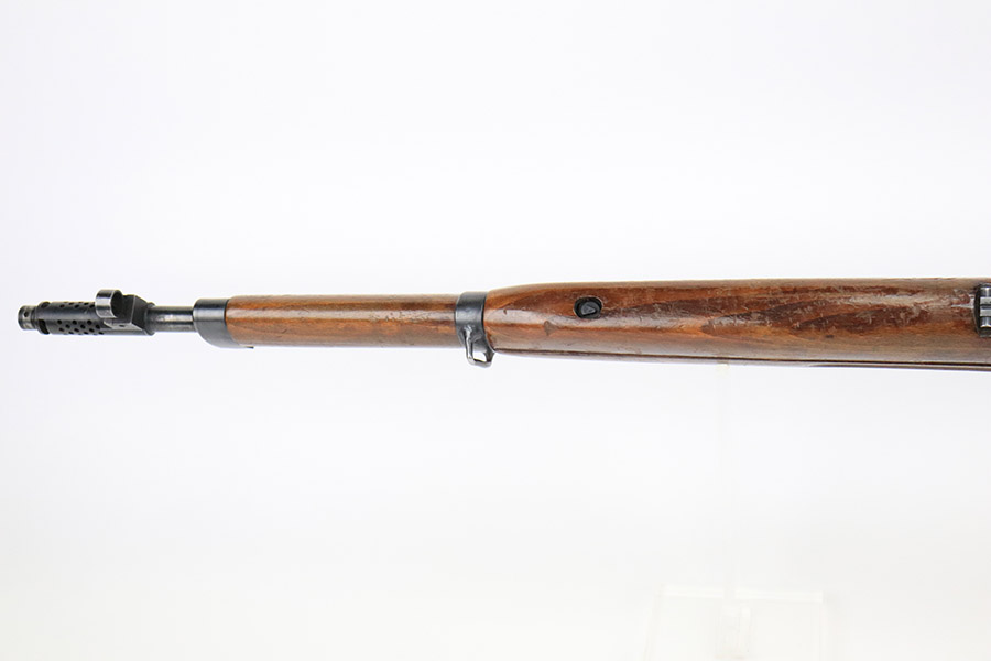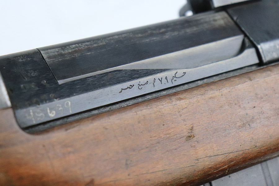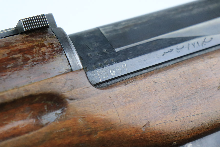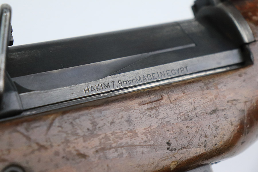 11/5/22 – The Hakim Rifle is a gas operated semi-automatic rifle. It was originally designed by Sweden and produced as the Ag m/42 for the Swedish Army. The tooling and design were later sold to Egypt, and the Hakim was produced there during the 1950s and early 1960s. It was replaced in the mid-1960s by the Maadi AK-47 (a licensed copy of the Soviet rifle) but was stored in military reserve arsenals. In more recent years, it has been observed in use by some Egyptian police units. Around 70,000 were made. This particular example is all original with no import mark. The finish is original and shows minor thinning in several areas but no corrosion or particularly worn areas. The stock has scuffs and scratches all over, and the upper handguard was lacquered at some point. Minor surface crack above the wrist. Bore has strong rifling with minor frost.