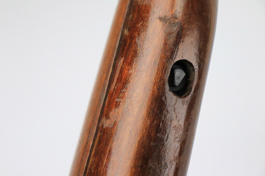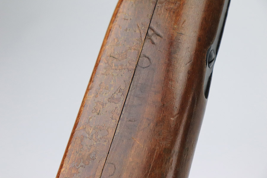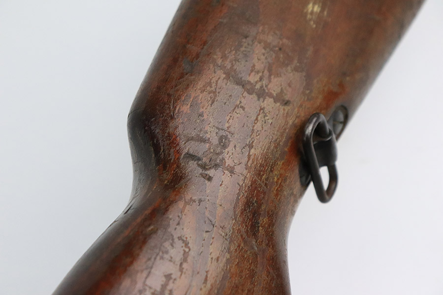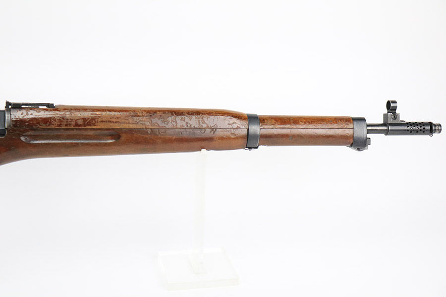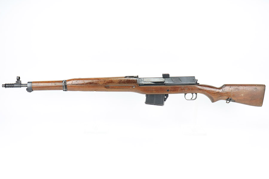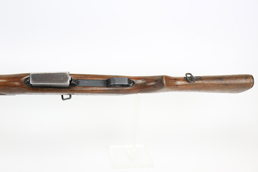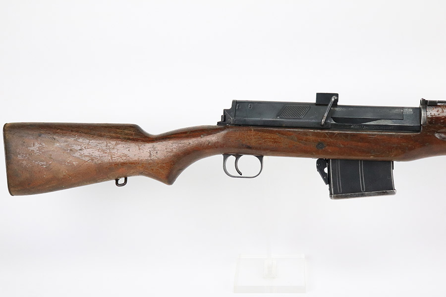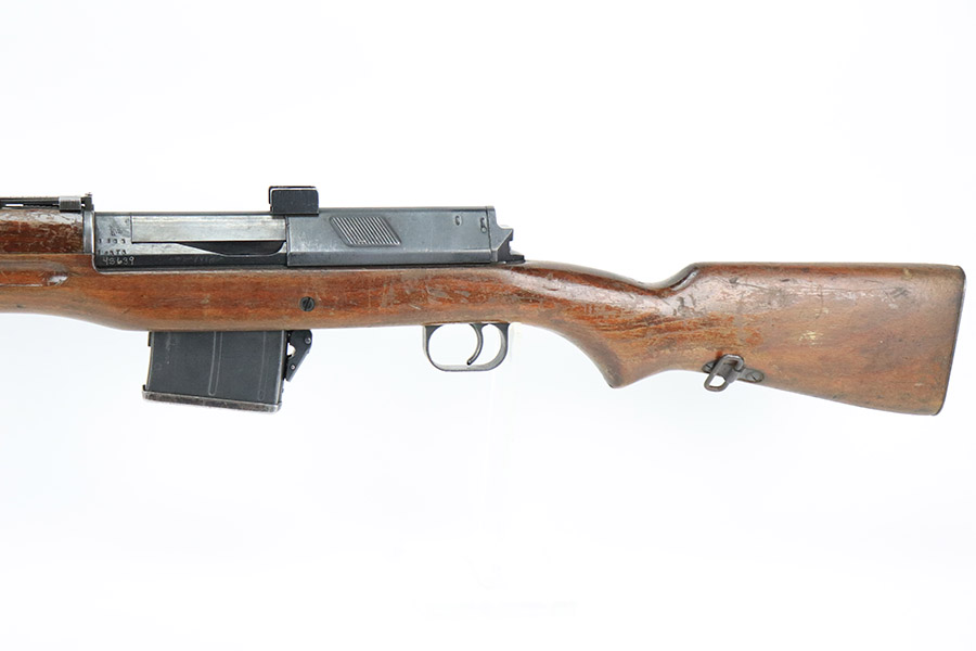 11/5/22 – The Hakim Rifle is a gas operated semi-automatic rifle. It was originally designed by Sweden and produced as the Ag m/42 for the Swedish Army. The tooling and design were later sold to Egypt, and the Hakim was produced there during the 1950s and early 1960s. It was replaced in the mid-1960s by the Maadi AK-47 (a licensed copy of the Soviet rifle) but was stored in military reserve arsenals. In more recent years, it has been observed in use by some Egyptian police units. Around 70,000 were made. This particular example is all original with no import mark. The finish is original and shows minor thinning in several areas but no corrosion or particularly worn areas. The stock has scuffs and scratches all over, and the upper handguard was lacquered at some point. Minor surface crack above the wrist. Bore has strong rifling with minor frost.