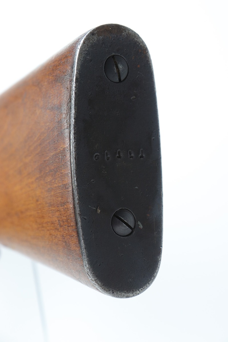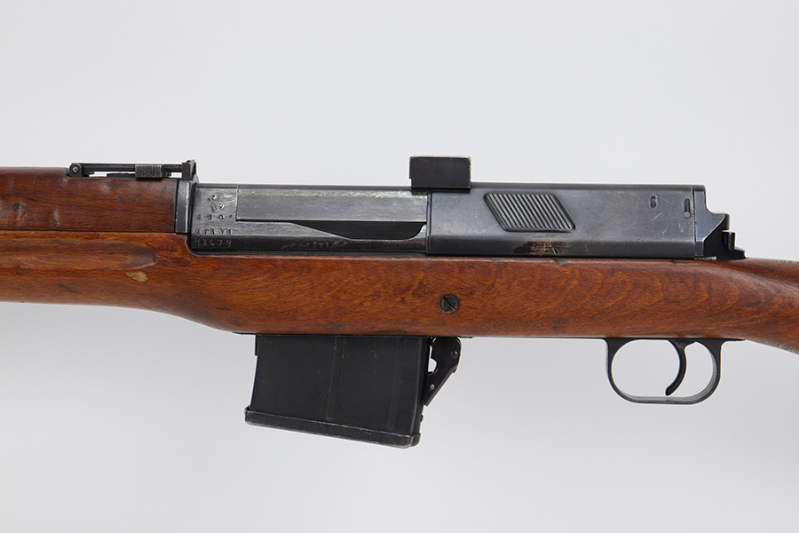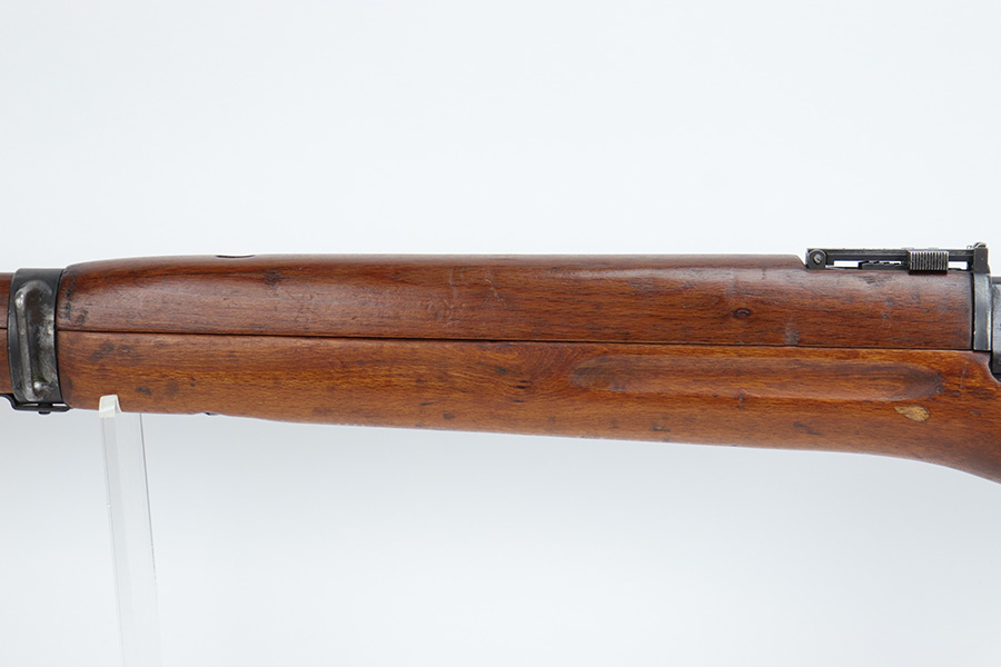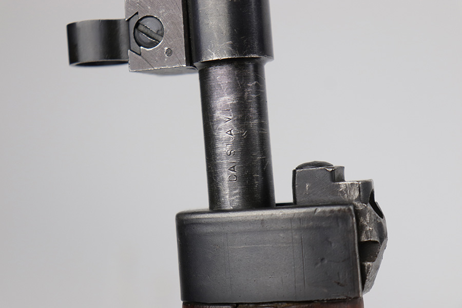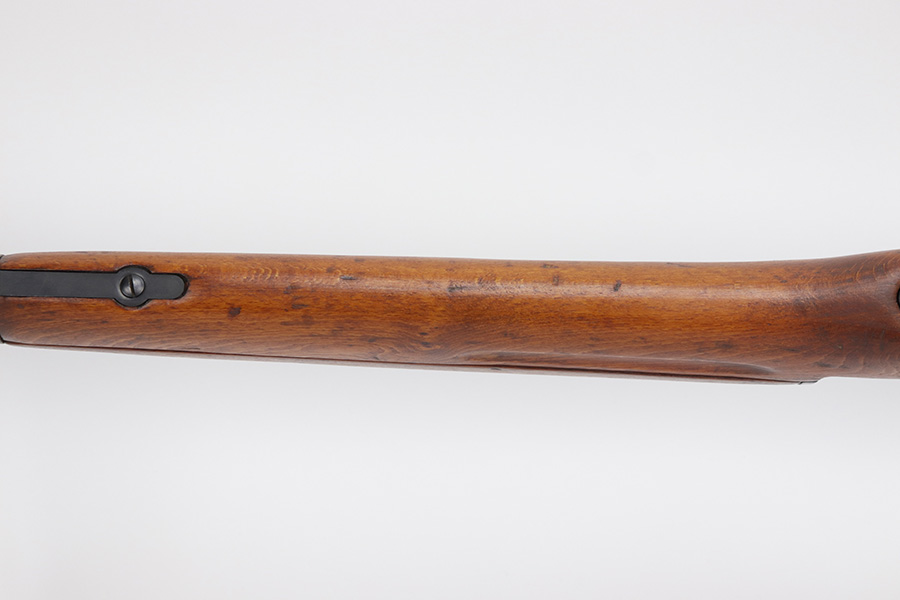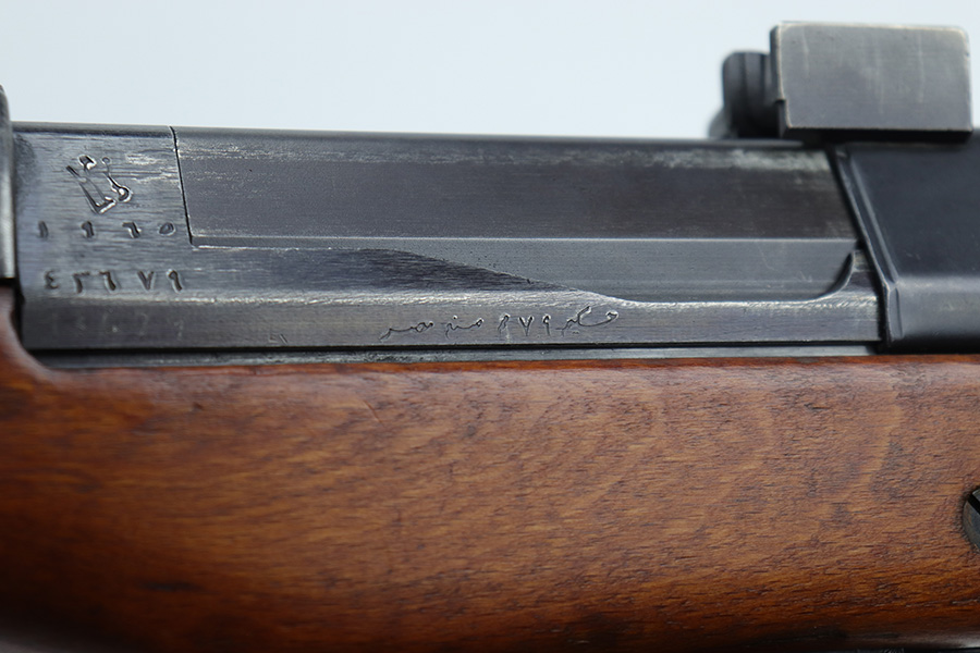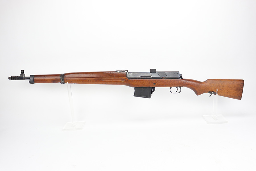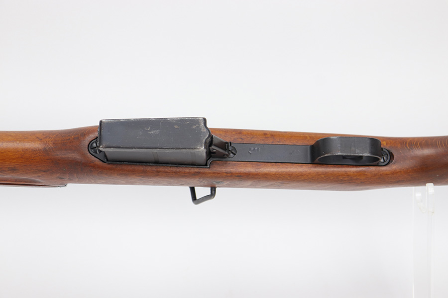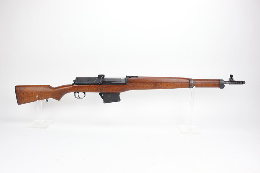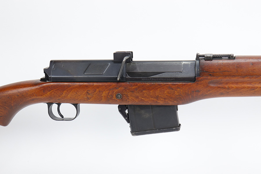 6/13/23 – The Hakim Rifle is a gas operated semi-automatic rifle. It was originally designed by Sweden and produced as the Ag m/42 for the Swedish Army. The tooling and design were later sold to Egypt, and the Hakim was produced there during the 1950s and early 1960s. It was replaced in the mid-1960s by the Maadi AK-47 (a licensed copy of the Soviet rifle) but was stored in military reserve arsenals. In more recent years, it has been observed in use by some Egyptian police units. Around 70,000 were made. This particular example is all original with import mark on barrel. The finish is original and shows minor finish loss on the left side of the receiver and bolt carrier, as well as a little on the barrel. Excellent stock with minimal handling wear. Bore has strong rifling with minor frost.