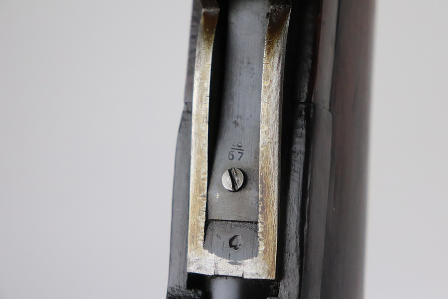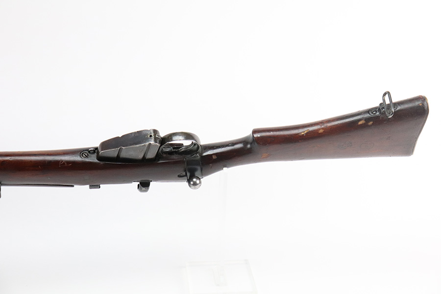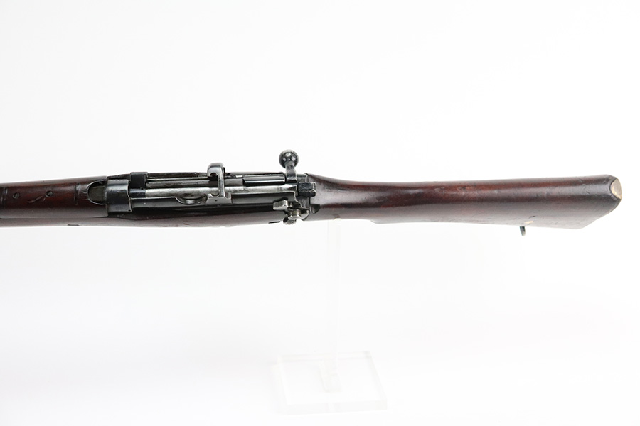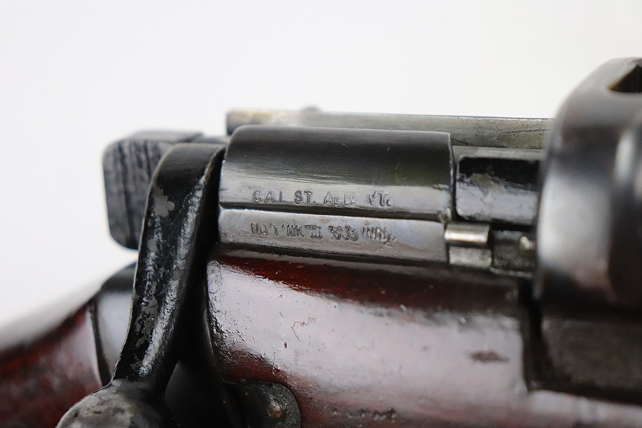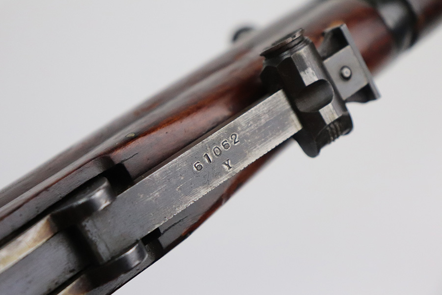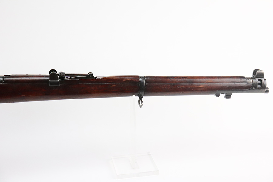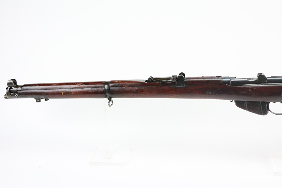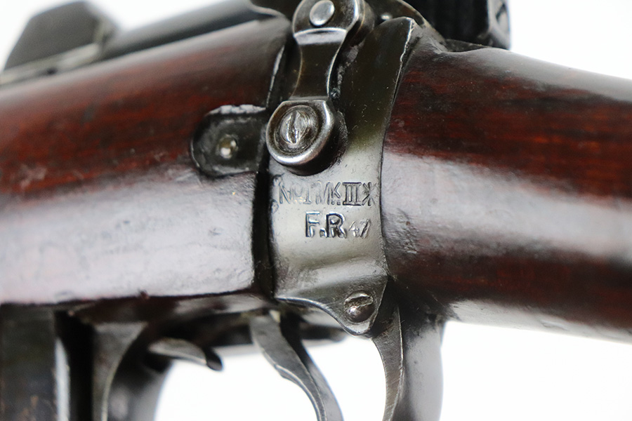 7/13/21 – This is a nice example of an Enfield No 1 Mk III* Rifle that was likely manufactured between WW1 and WW2. It has an “RF 47” marking on the receiver. This indicates it was factory repaired in India in 1947. The gun is matching to itself but the bolt is mismatched to the gun. Import mark on the right side of the receiver. There is spotty wear near the muzzle and on the receiver. Areas of spotty discoloration on the receiver as well. Scratchy wear and patina on the magazine and trigger group. The stock has noticeable dings, dents, and scratches throughout. There is a rack number painted on the left side of the butt stock. The bore is shiny and minty.
