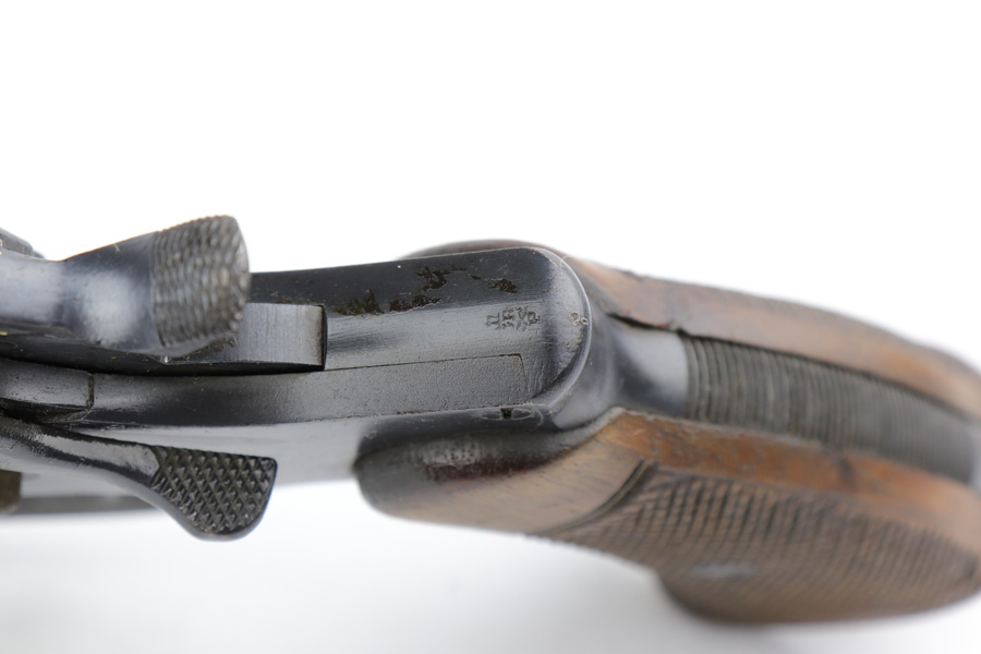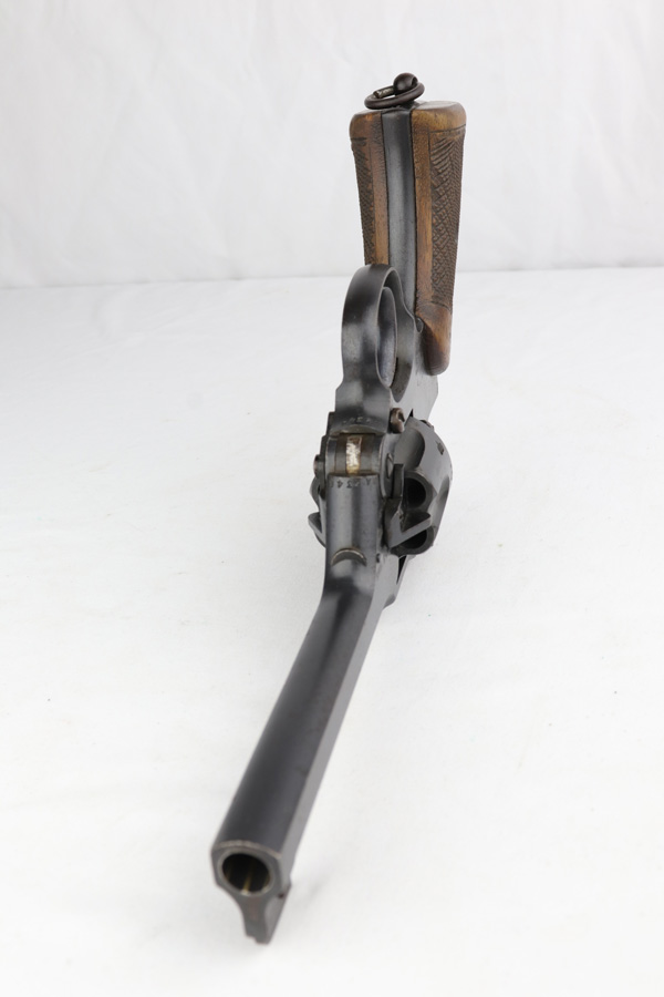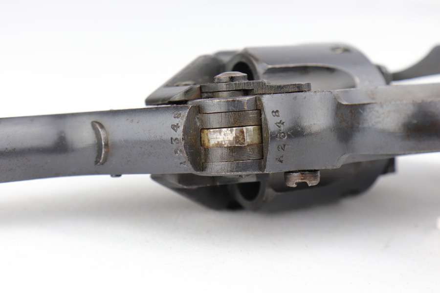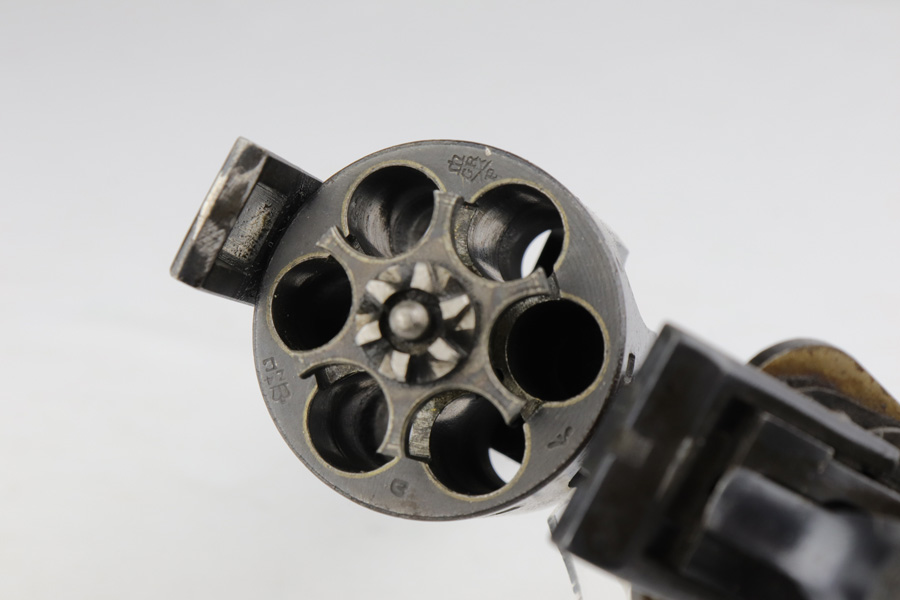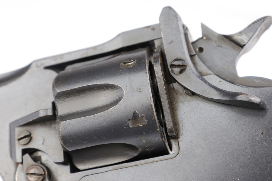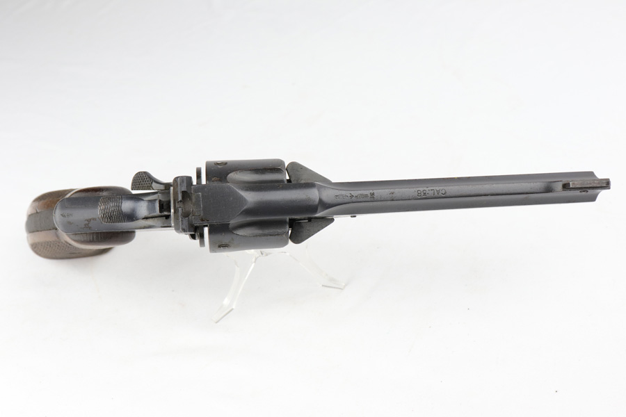 9/16/20 – This is a near-mint Enfield No 2 Mk I revolver, manufactured in 1931 with all original, matching parts. The gun retains 99% blue, with minimal bluing loss but a few small areas of surface pinpricking, mostly along the barrel. Minty bore. Excellent grips. Good timing/action. Comes with an original canvas holster with internal inkstamp dated to 1951.