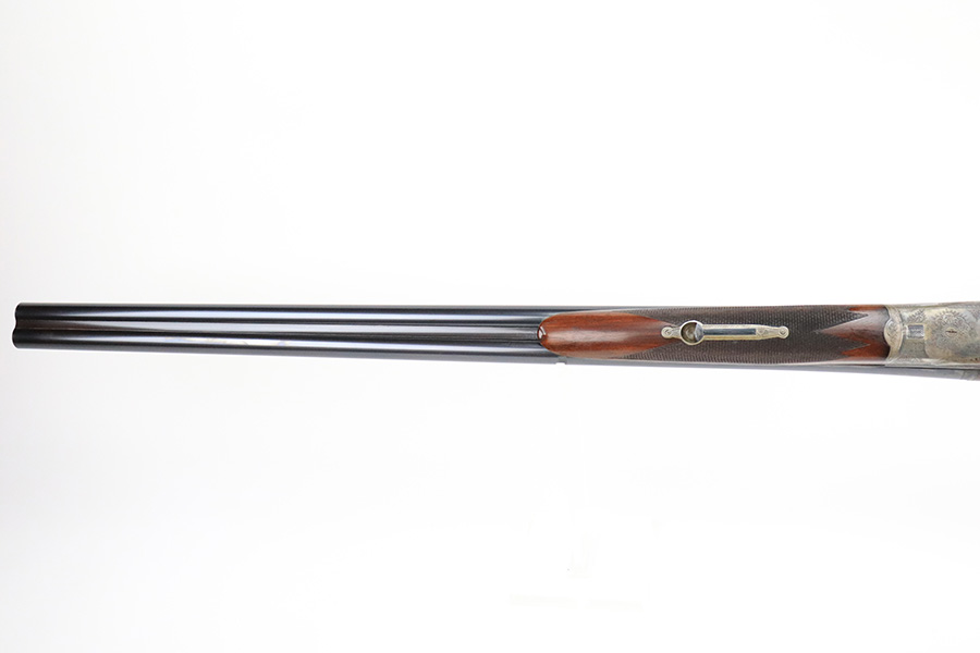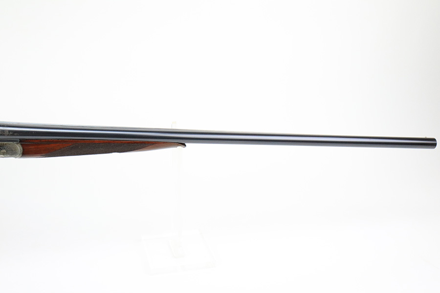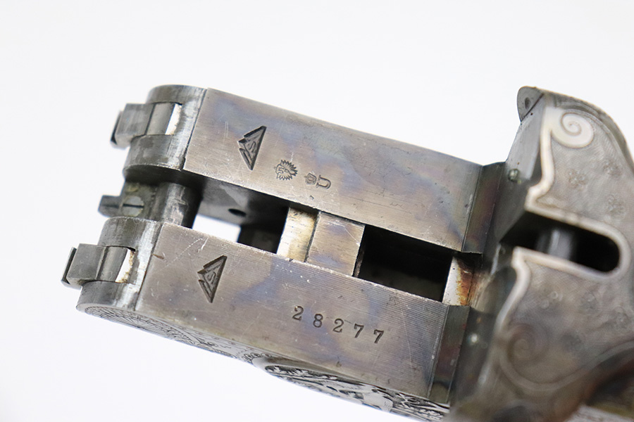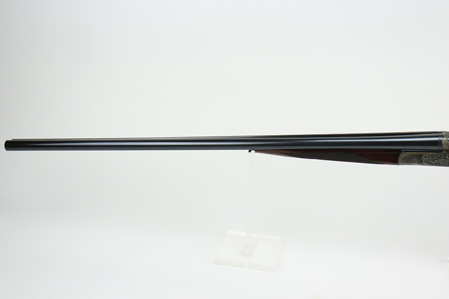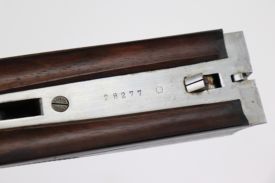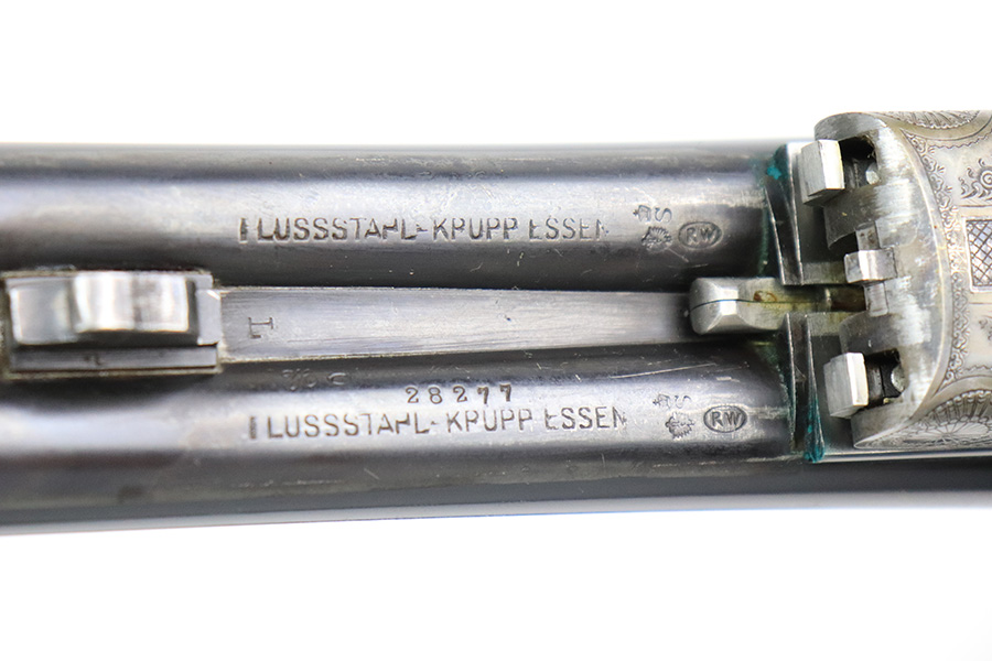 8/19/22 – This is a very nice example of a Pre-WW2 Simson Suhl side-by-side hunting shotgun, chambered in 16GA. It is all matching, has the proper German proofs, and is dated 1925. The receiver has a beautiful and intricate engraving pattern that features ducks and pheasants. There is very little actual finish loss on this gun. On the right side of the barrels, there is one small spot of spotty discoloration and some tiny handling marks along the barrels here and there. Beautiful case-hardening on the receiver. Comes with an excellent wood stock and foregrip with just a few tiny handling marks here and there. A couple of tiny chips in the butt plate. Minty bores.