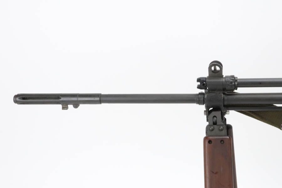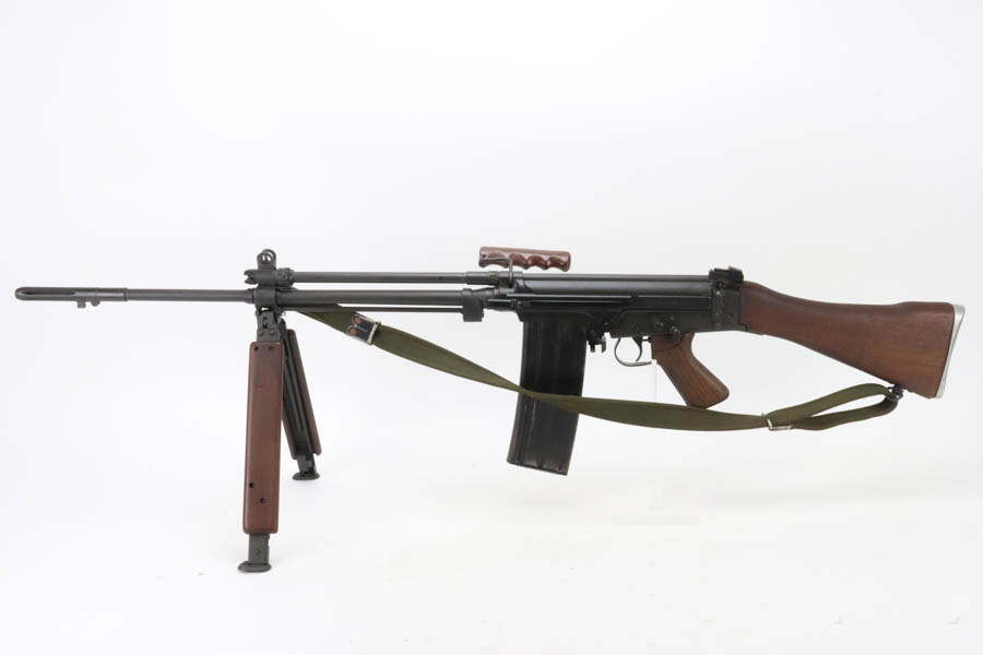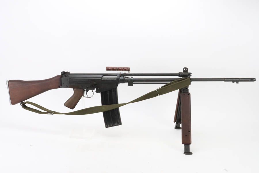 07/09/2024 – For sale is an Entreprise Arms L1A1 FAL receiver built using a mix of Commonwealth Parts. This FAL is an inch-pattern rifle. The receiver is marked Entreprise Arms Irwindale, CA but there is no ABNI stamping. The lower receiver looks to be Australian and has L2A1 furniture and a bipod. The barrel is not correct for an L2A1 and uses a standard pencil barrel. The bipod mount has been modified and somewhat crudely welded on to attach the bipod and a ring was attached for the catch for the bipod legs when it is collapsed. The carry handle looks to be Canadian but we are not able to verify fully. The magazine is a L4A1 Bren magazine modified to fit the rifle. The overall condition is excellent and the bore is very bright. Please let us know if you notice any other details as we are not well versed in FALs.