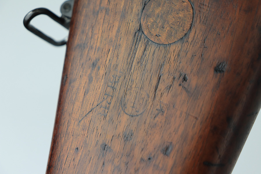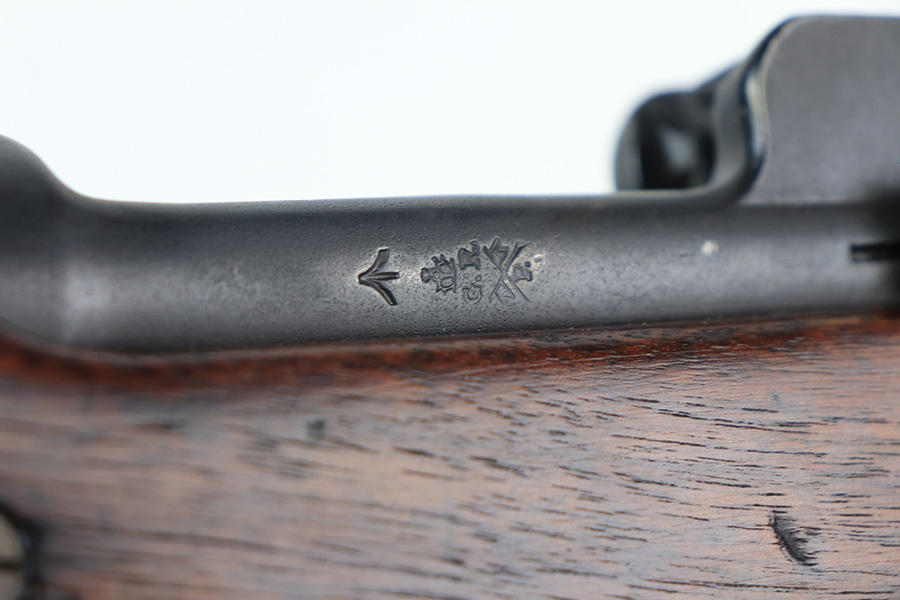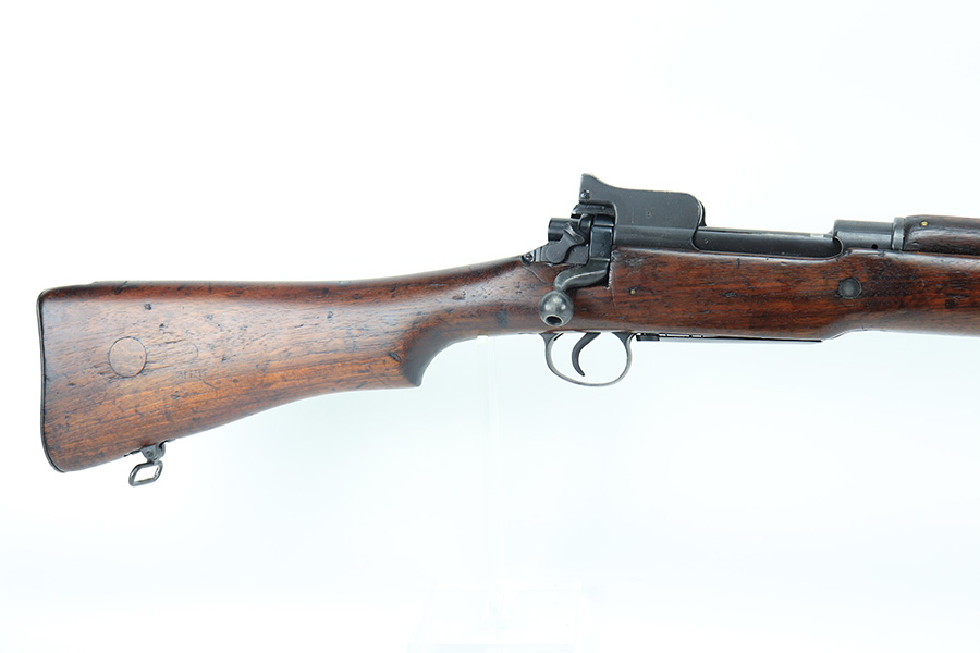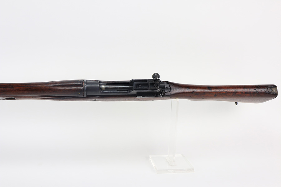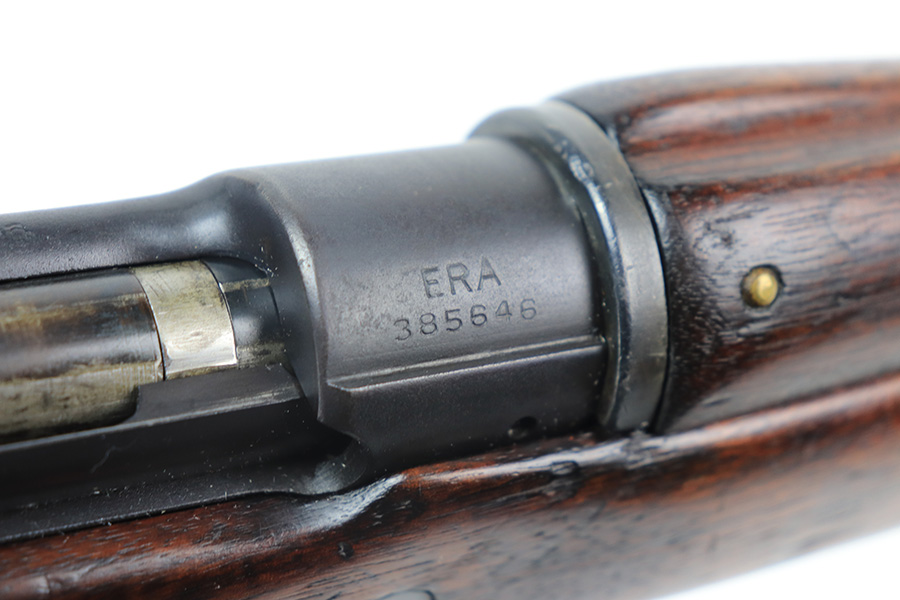 1/28/22 – This is a nice example of an ERA P14 rifle from the WWI era. Likely arsenal refurbished receiver to some extent, with matching serial number on the bolt. ‘E” proof marks on several of the small parts. Very good finish overall with wear around the muzzle and front band. Stock shows some age and handling wear but has numerous markings and cartouches still visible and no major defects. Bore has strong rifling but a little frost throughout, and would likely benefit from a cleaning.
