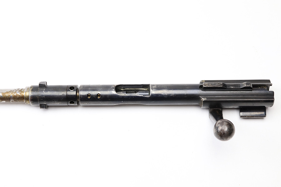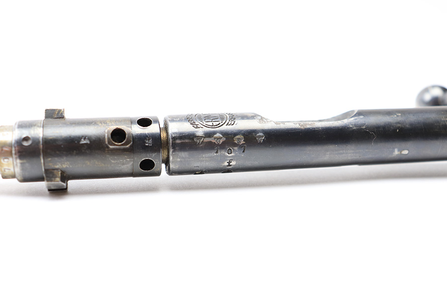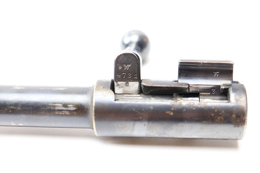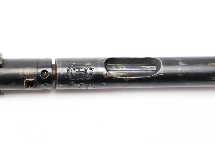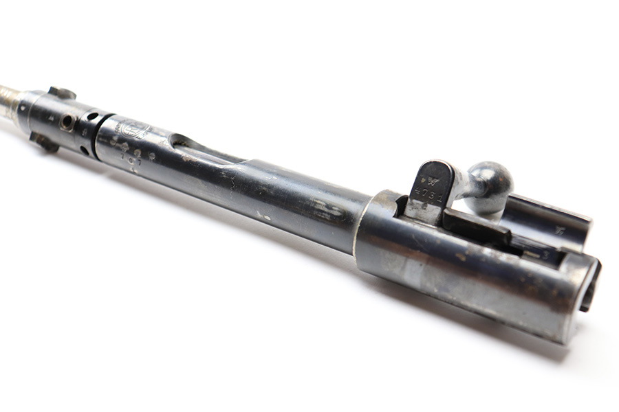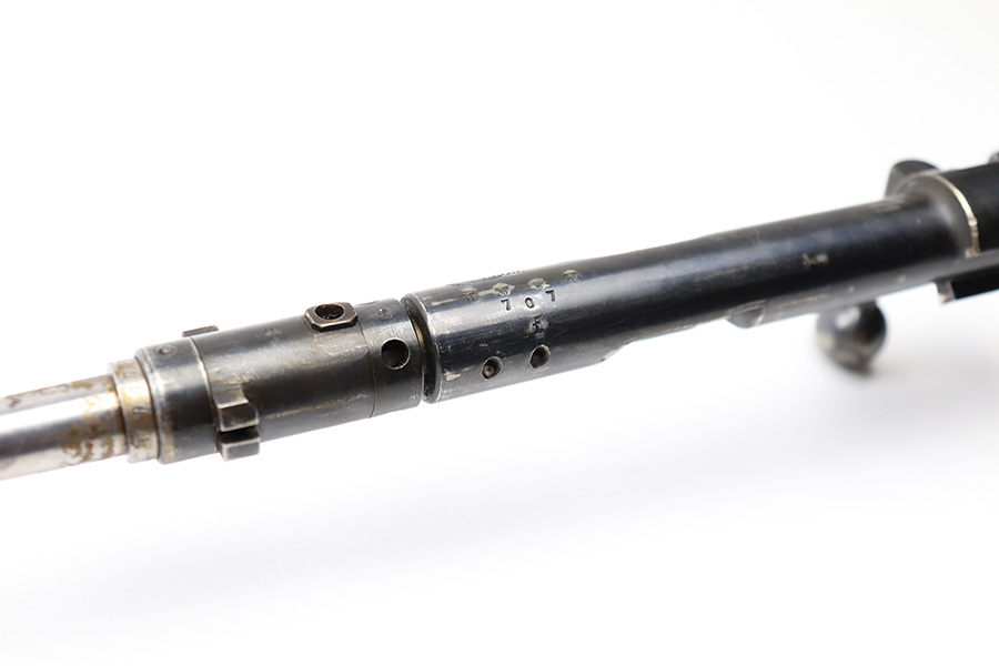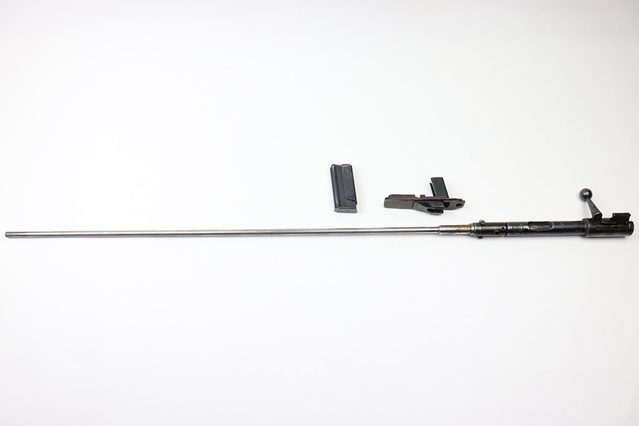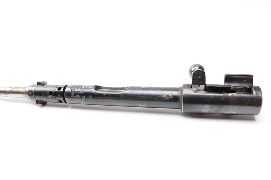 6/21/22 – This is an original .22 Conversion kit for a K98 rifle. Made by Erma-Erfurt during WW2 for training and practice. The kit includes everything shown in photos; barrel, receiver, bolt assembly, base plate, and magazine. All parts are matching numbered except for the bolt. All parts are eagle/77 proof stamped. There is some edge wear and mild finish loss throughout but there’s no rust or pitting. Smooth action and a clean bore with excellent rifling. All parts fully functional and all original.