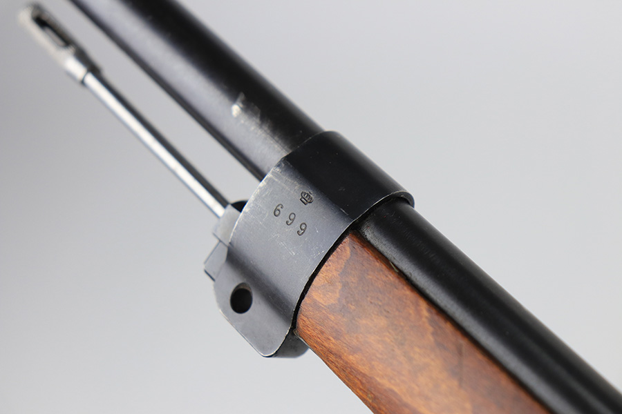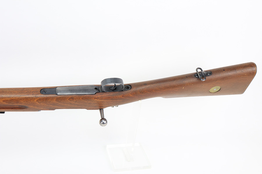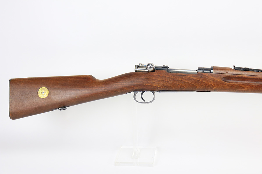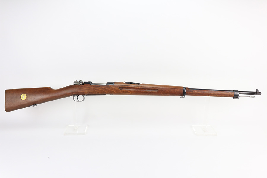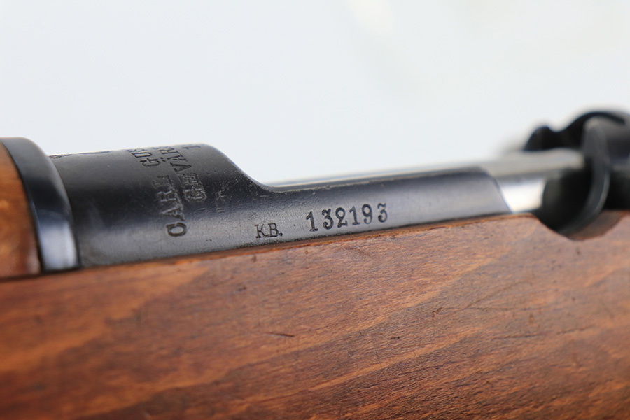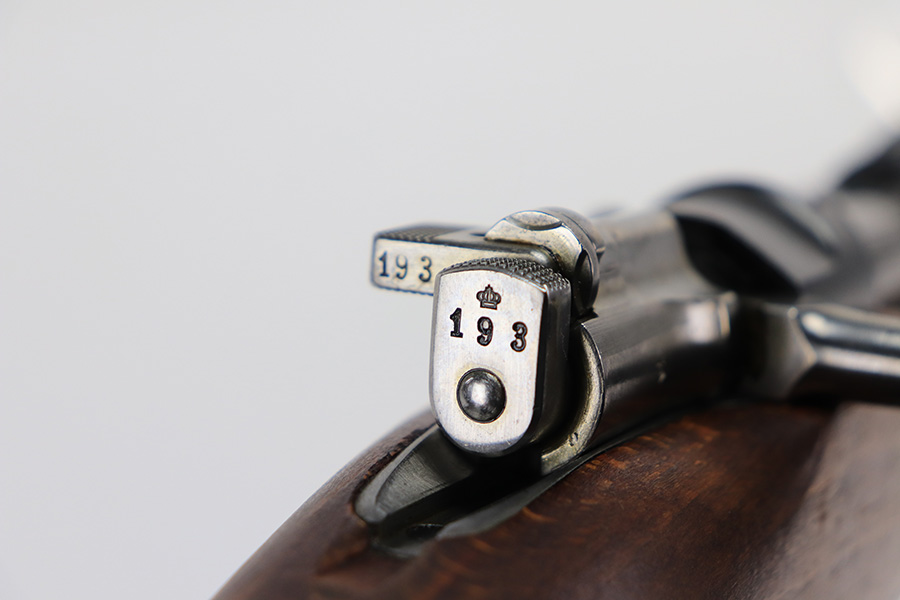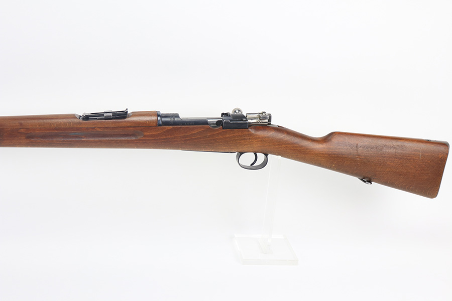 1/19/22 – This is an excellent example of a Swedish Mauser Model 1896 manufactured in 1903. The Model 1896 rifle in 6.5×55mm was adopted in 1896 for infantry use, replacing the Model 1867–1889 Remington rolling block rifle in 8×58mmR Danish Krag. Swedish production started in 1898 at Carl Gustafs, but additional rifles were produced by Mauser during 1899 and 1900 because of delays in shipping additional production machinery from Germany to Sweden. This one is mostly mismatched and has an import mark on the barrel. Comes with an original cleaning rod. The gun has retained most of its bluing, but there is spotty wear on the barrel and around the muzzle, minor wear on the high edges of the receiver, and thinning on the floor plate and trigger guard. Minty stock with very minor dings and scratches here and there. The bore is mint.