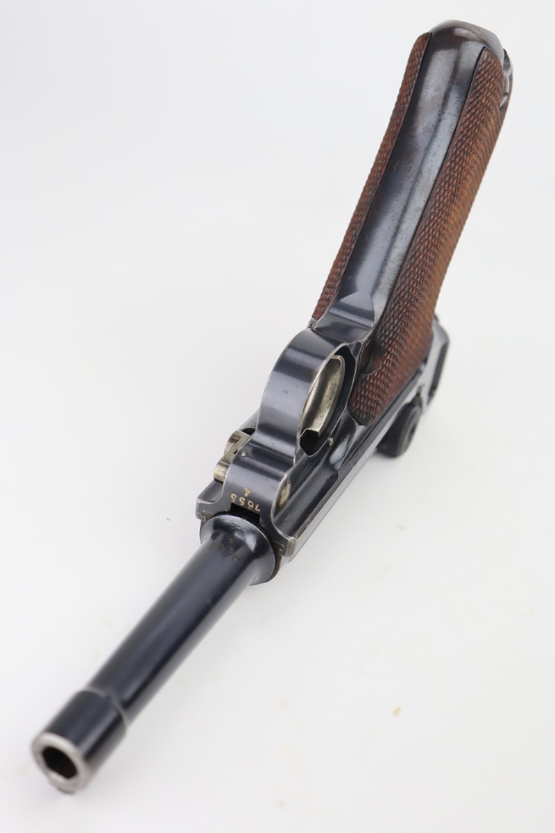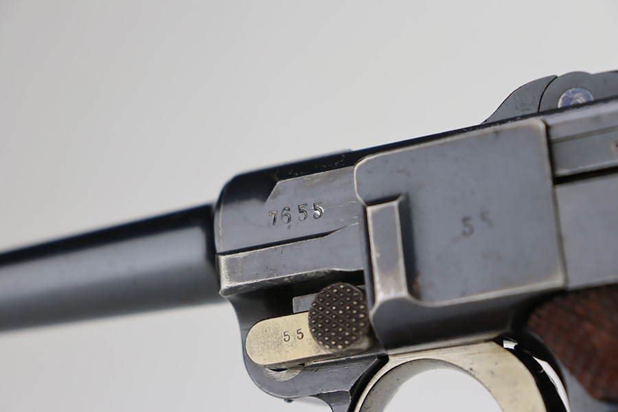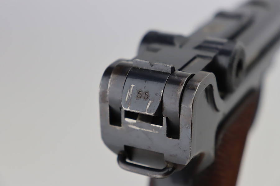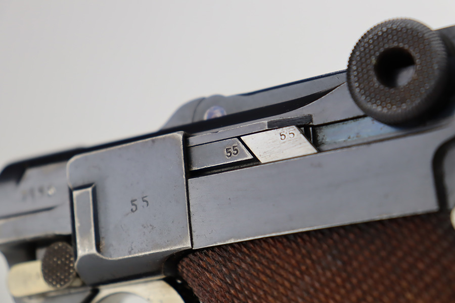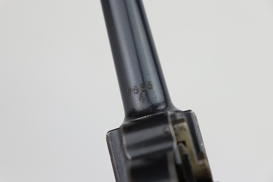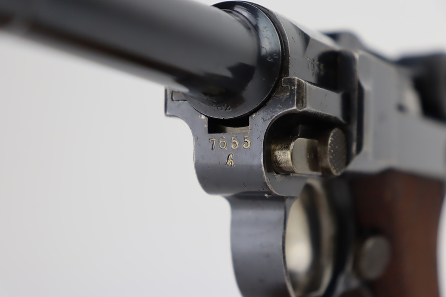 11/1/23 – This is an excellent DWM Luger issued to the Imperial German military in 1915. All matching with the proper Imperial military proofs. It has retained about 96% of its original finish. Just minor wear around the muzzle and on some of the high edges. Some freckling on the grip straps. Fitted with minty matching-numbered wood grips. Comes with a period-correct but mismatched magazine. The rifling in the bore is fairly worn with minor pitting throughout.