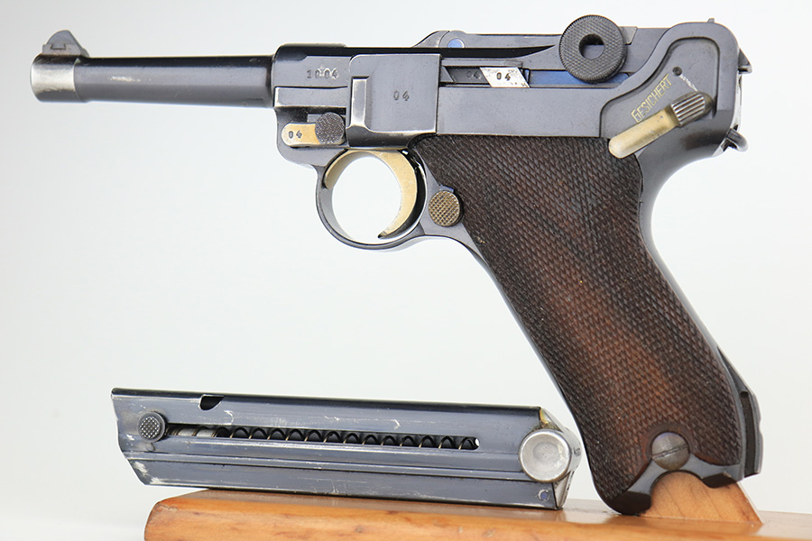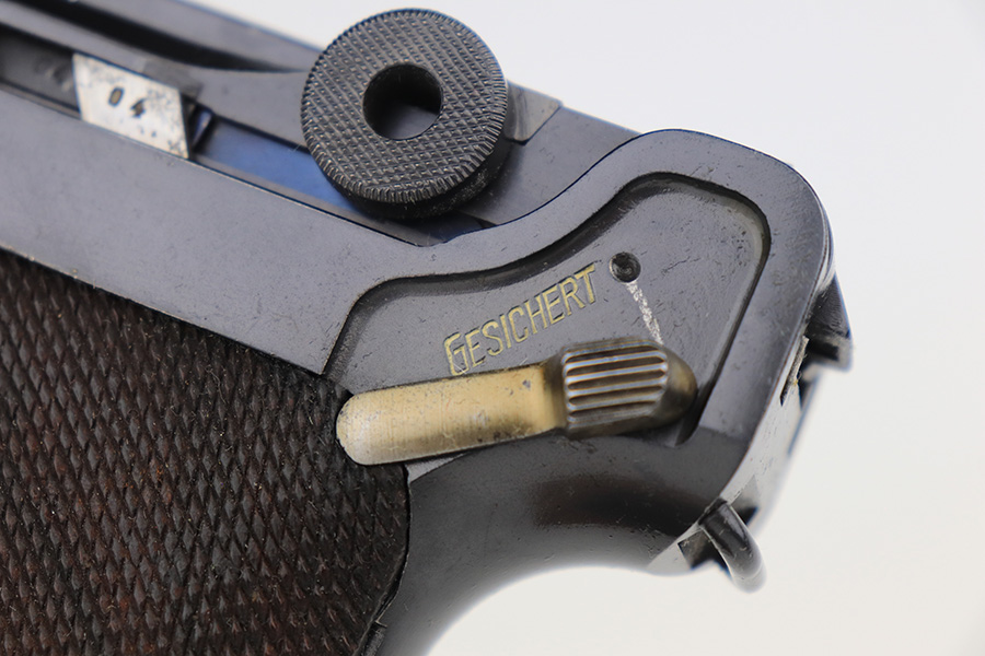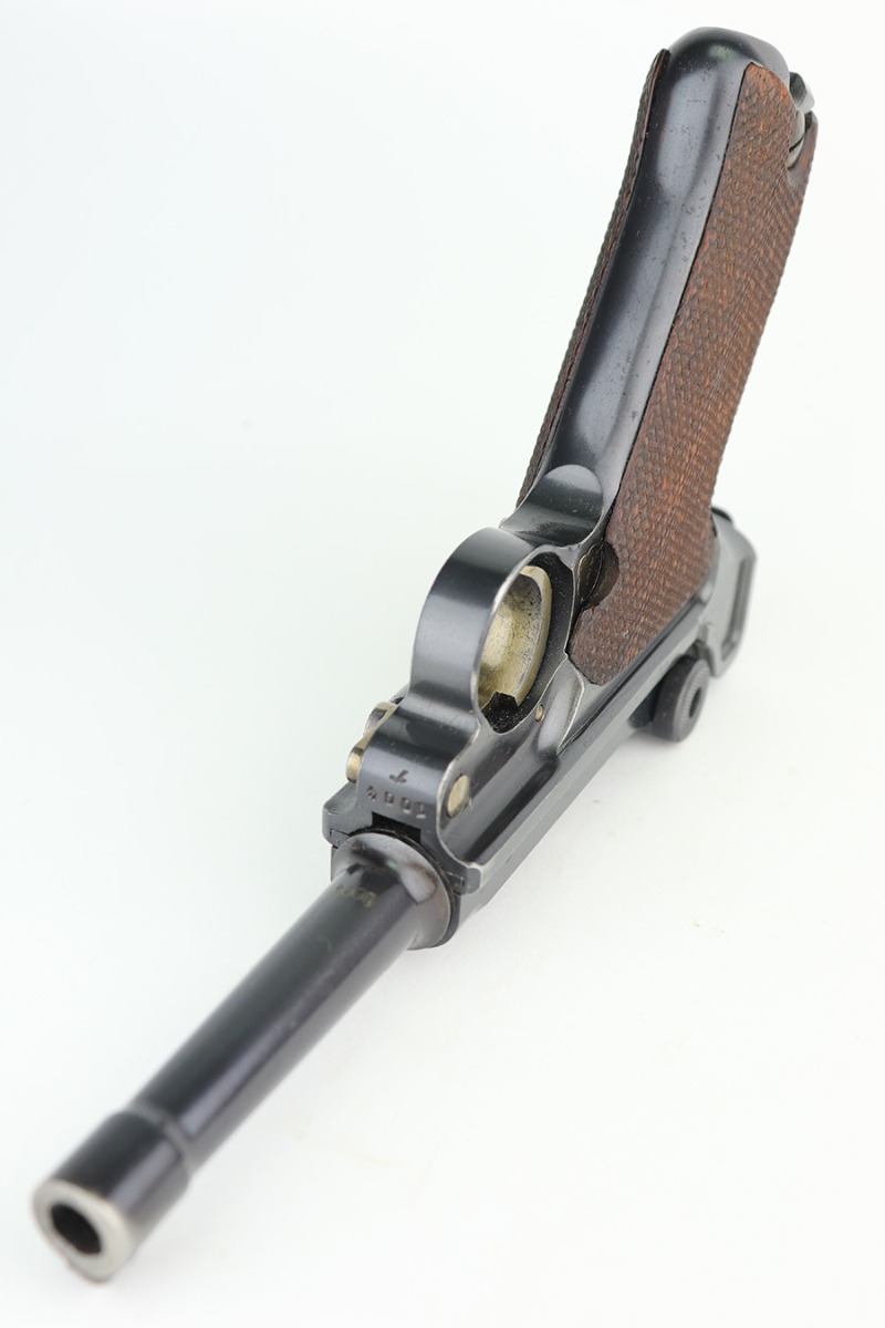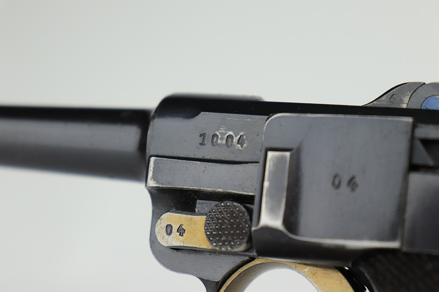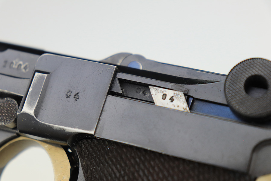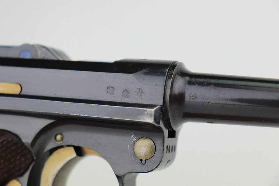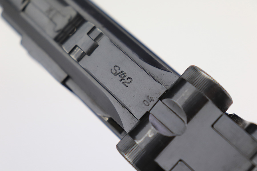 3/10/23 – This is an excellent example of a Mauser Luger issued to the Nazi military in 1937. It is all matching and has the proper military proofs. It has retained about 96-97% of its original finish. There is wear around the muzzle, on the side plate, and on the very front edges of the side rails. Very minor freckling on both grip straps. Minty un-numbered wood grips. Comes with a mismatched but period-correct magazine. Very nice bore with great rifling.