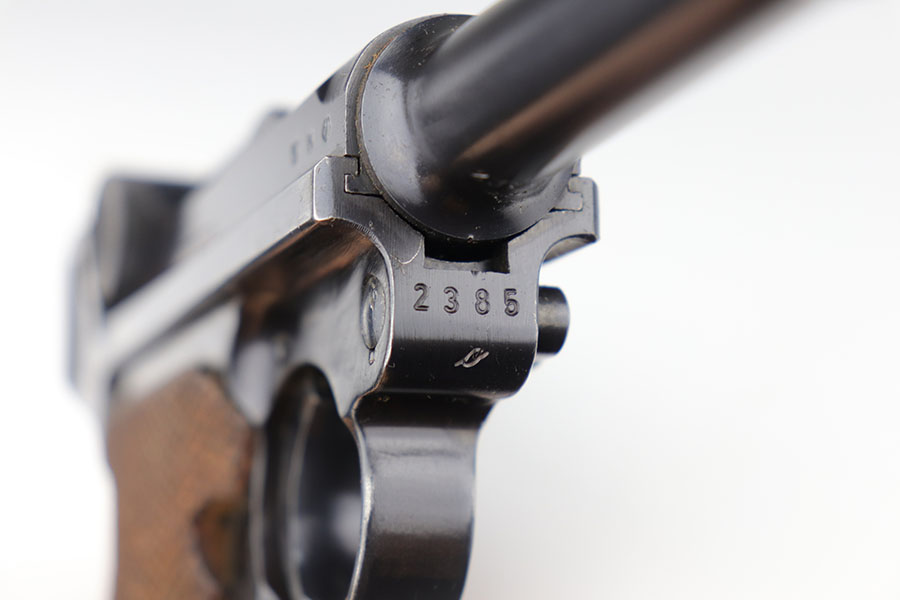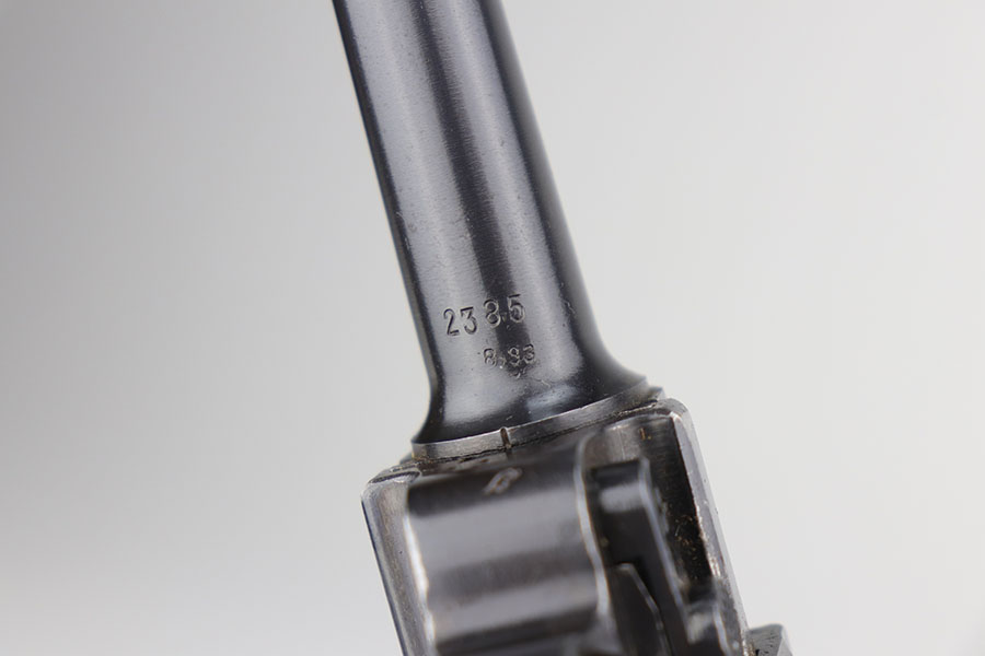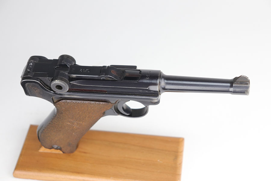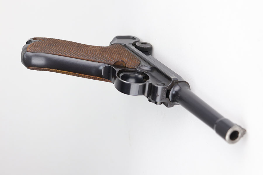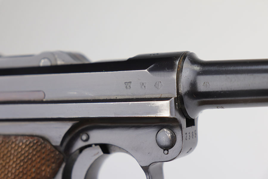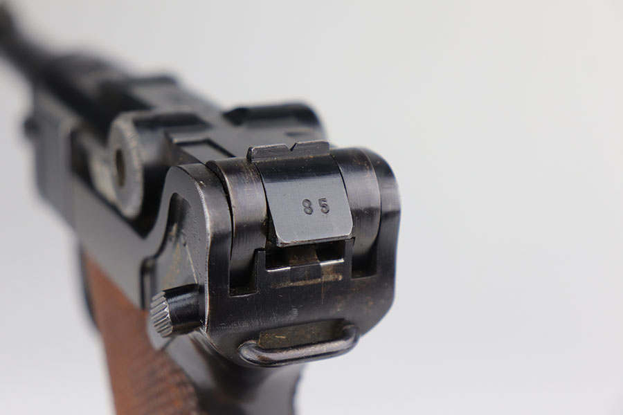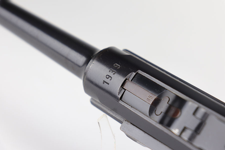 9/9/20 – This is an excellent 1939 Nazi Mauser Luger with about 95+% of the original blue remaining. It’s all matching, including the original grips. Magazine is period original but mismatched. There’s standard high edge wear on muzzle, sideplate and bottom of front strap. Otherwise, all in excellent condition. Terrific bore. Grips are minty except the letter ‘H’ was scratched into the right panel. NOTE: The listing only comes with the one magazine, numbered 6309.