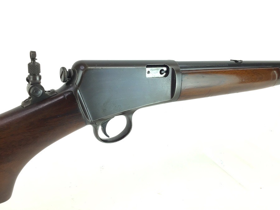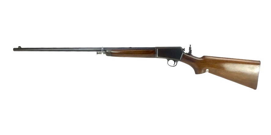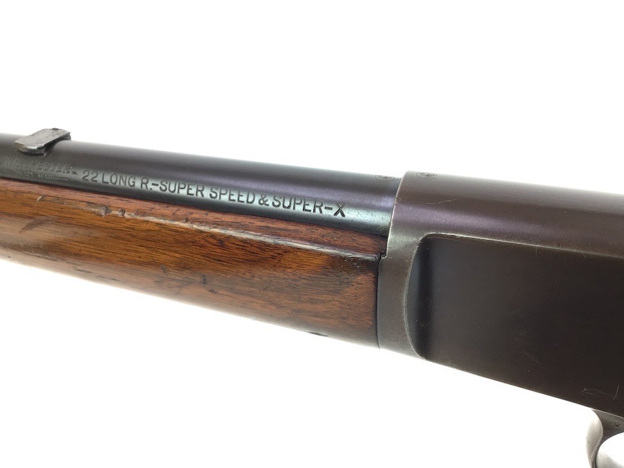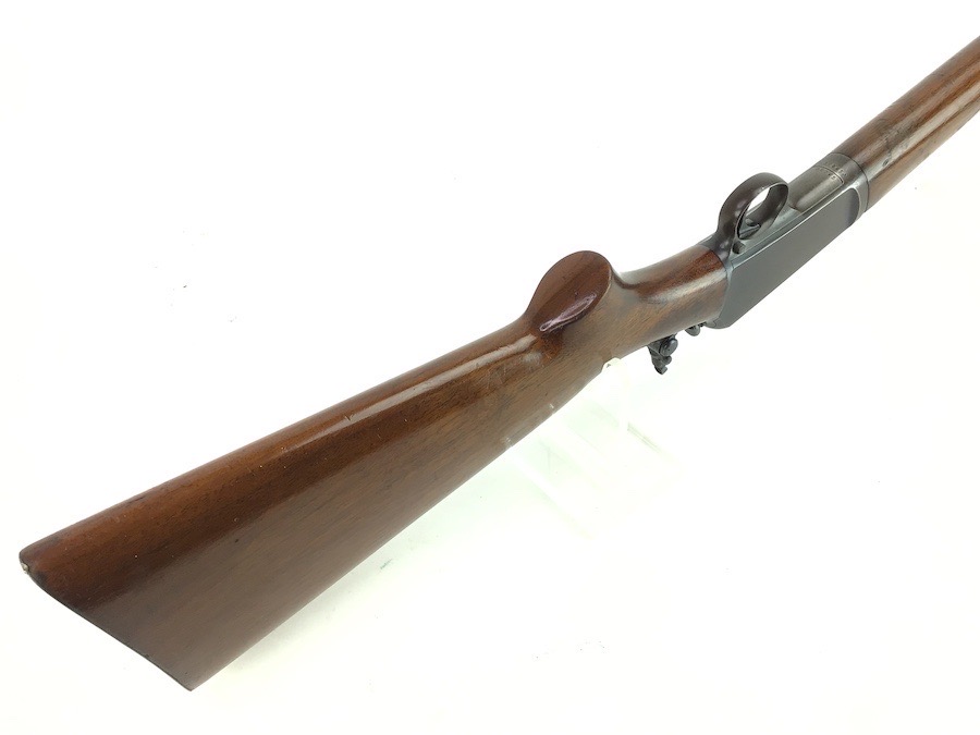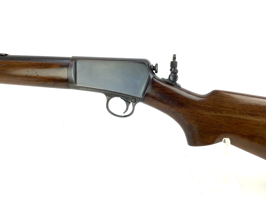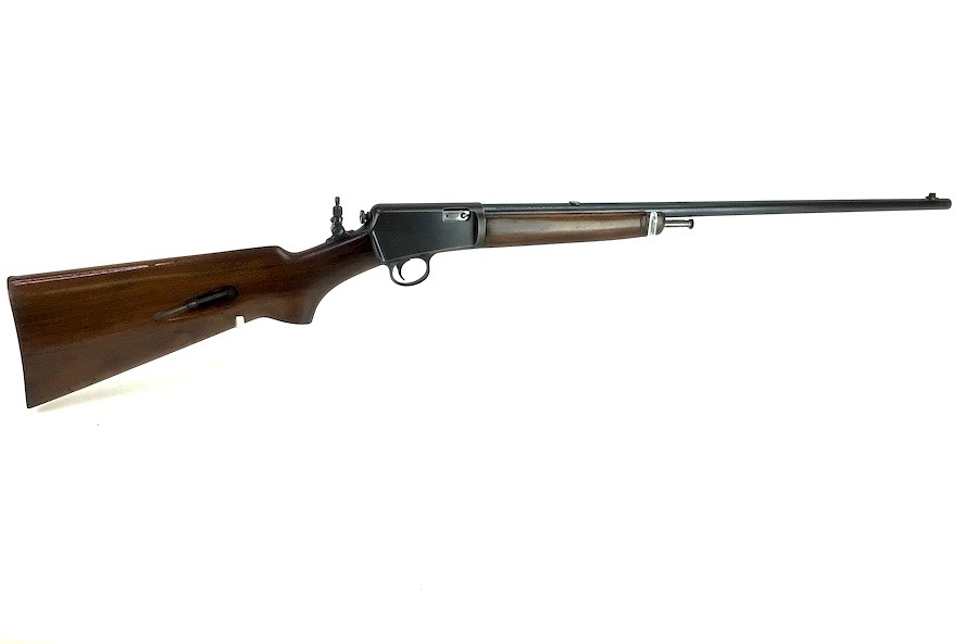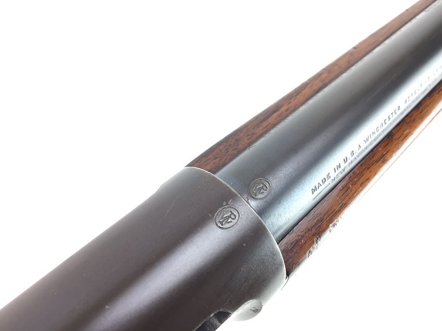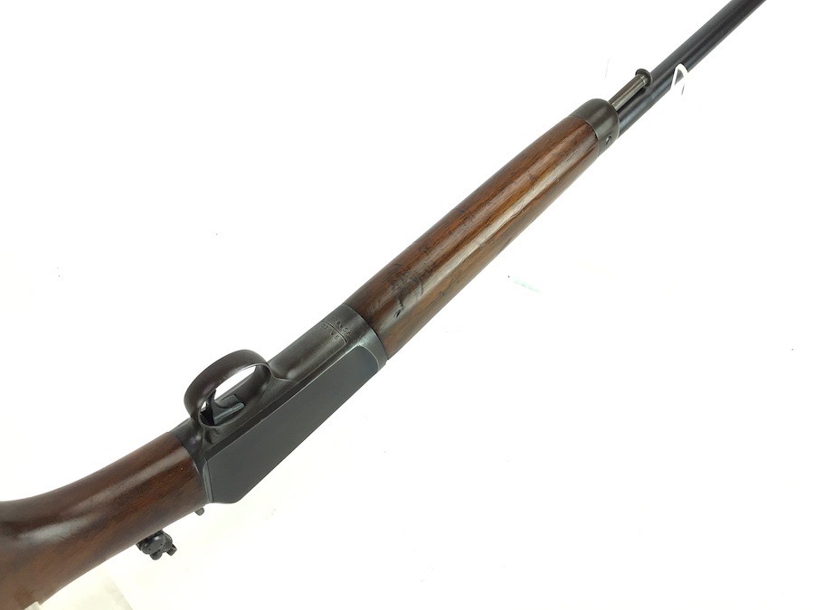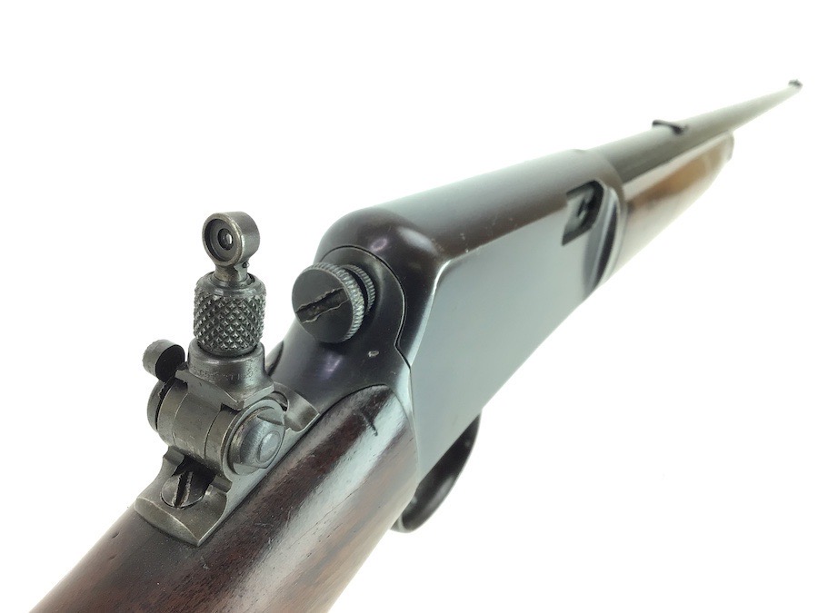 3/11/24 – This is an excellent example of a Winchester Model 63 manufactured in 1939. Chambered in .22 LR. It is all matching and has retained about 97% of its original finish. The rifle features an original rear, tang peep sight. There is just some minor wear on the high edges of the receiver, as well as some use wear around the trigger guard. The wood stock is in excellent condition with minor use wear. The photos show a very minor hairline crack just behind the trigger guard, however, there is no looseness or wiggle. Very minor.