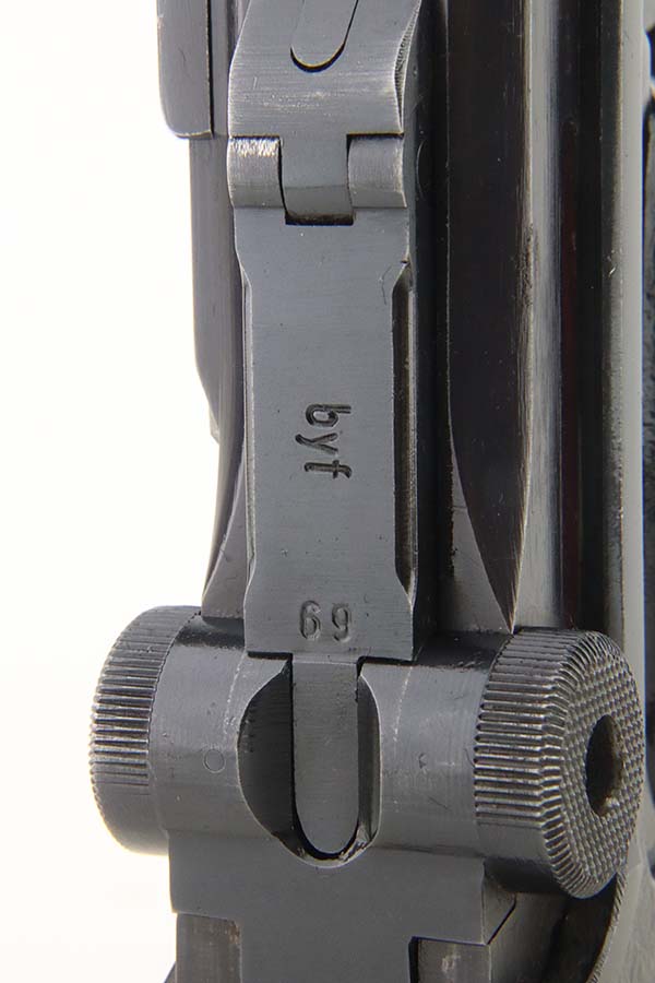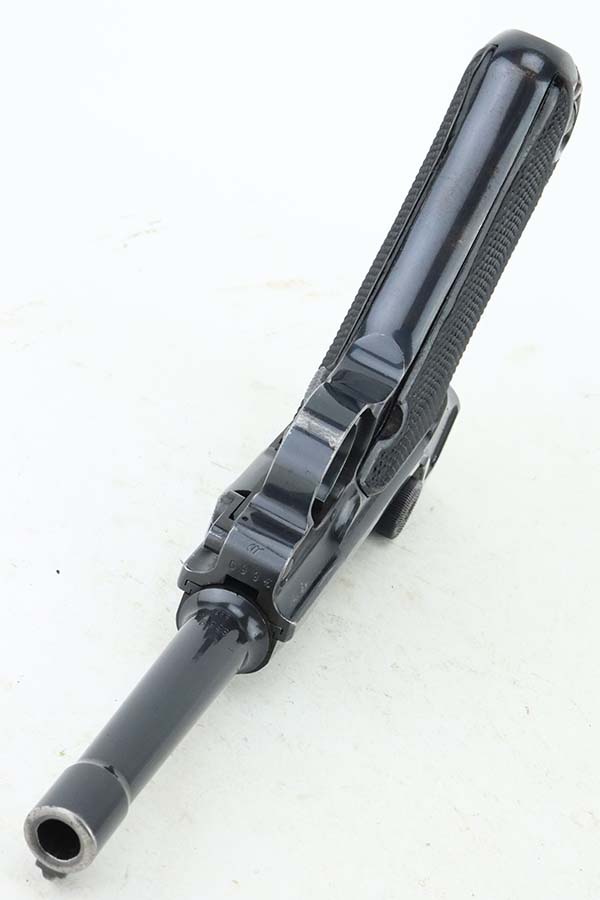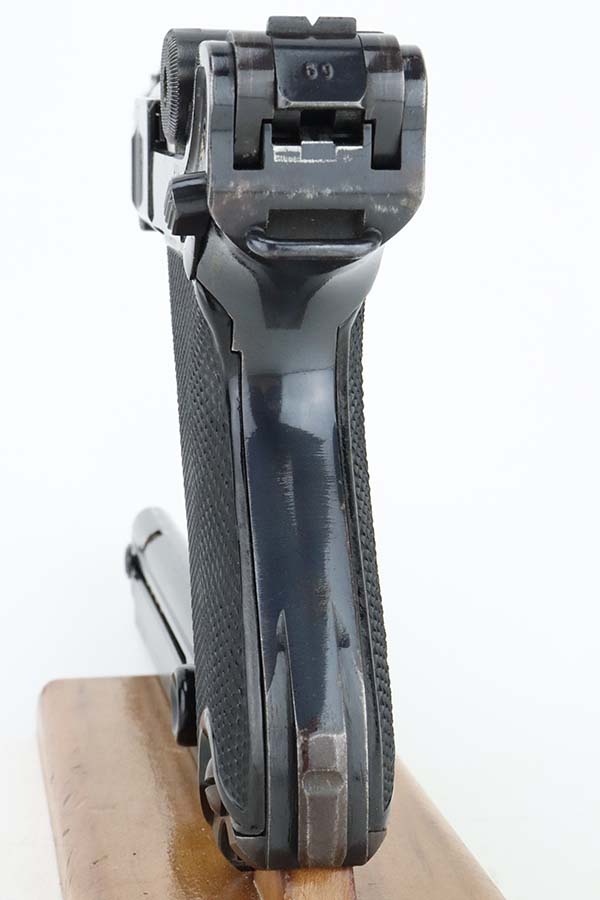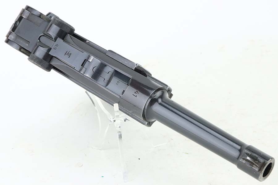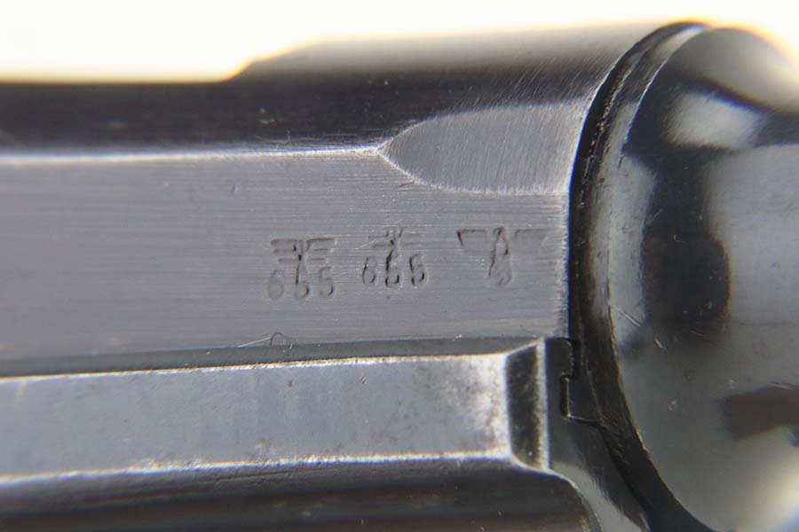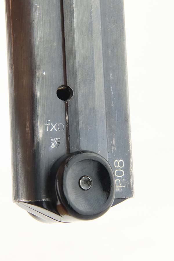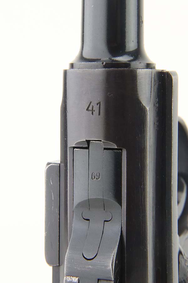 5/20/24 – This is an excellent example of a BYF 41 “Black Widow” Mauser Luger issued to the Nazi military in 1941. It is all matching, has the proper “Eagle 655” military acceptance proofs, and fitted with an excellent set of original “Black Widow” bakelite grips. It comes with one original “Black Widow” magazine. The gun has retained about 96% of its original finish with some minor muzzle wear, high edge wear, and some very light wear on the grip straps. Excellent, shiny bore.