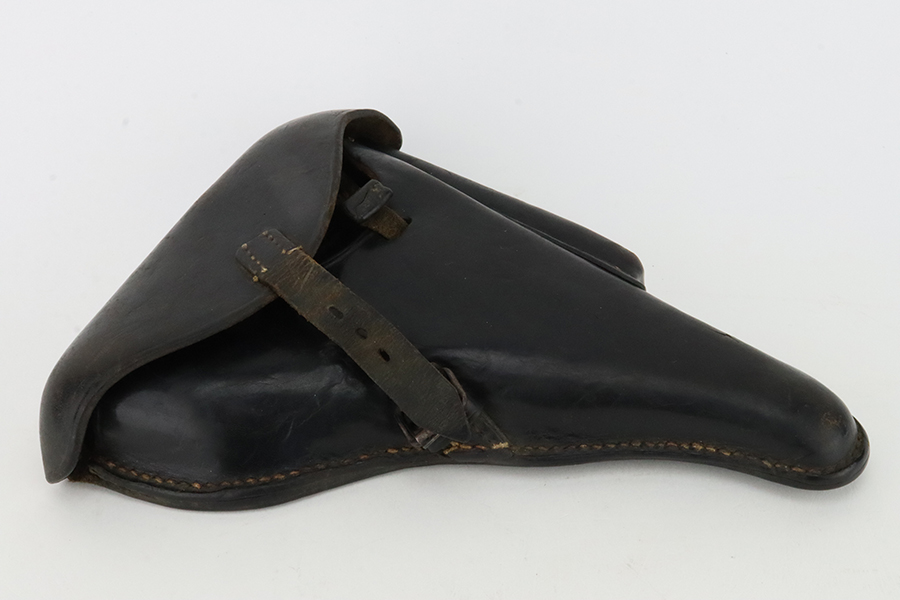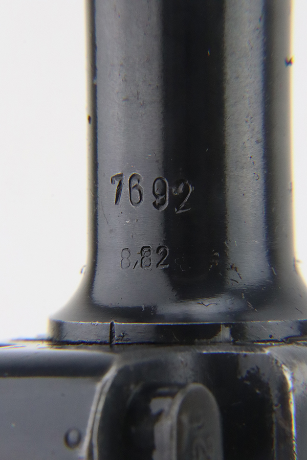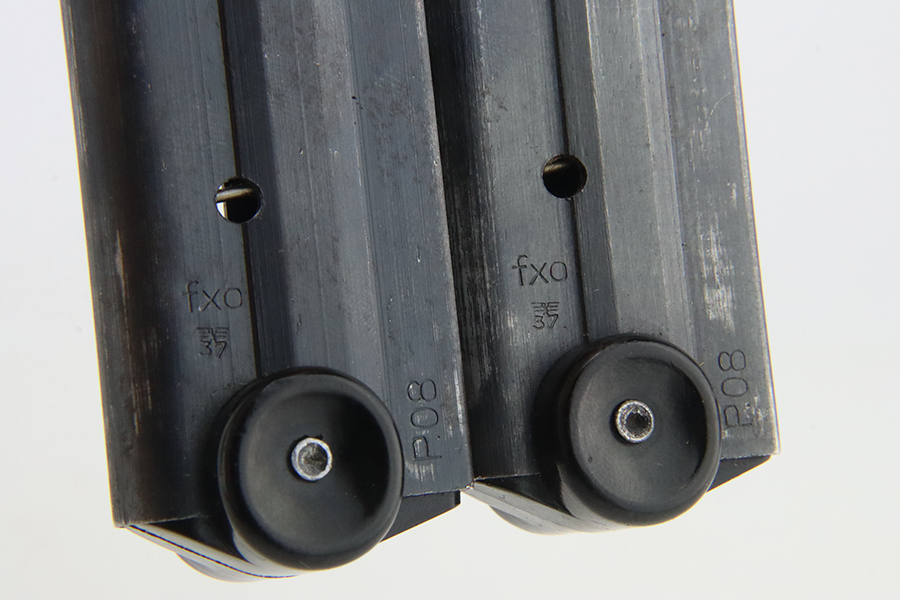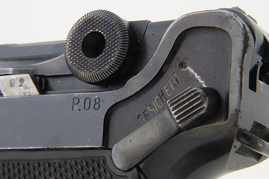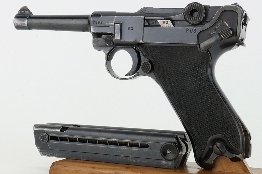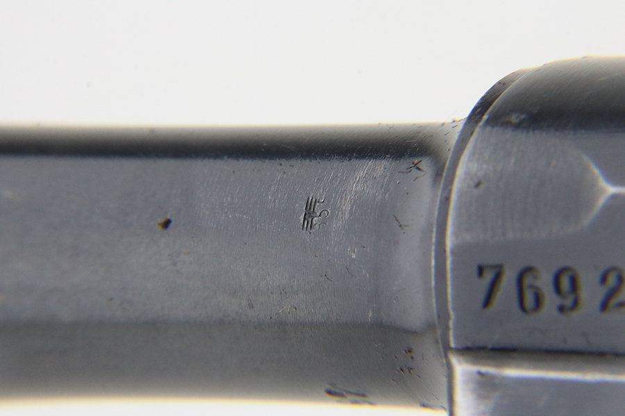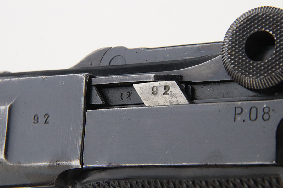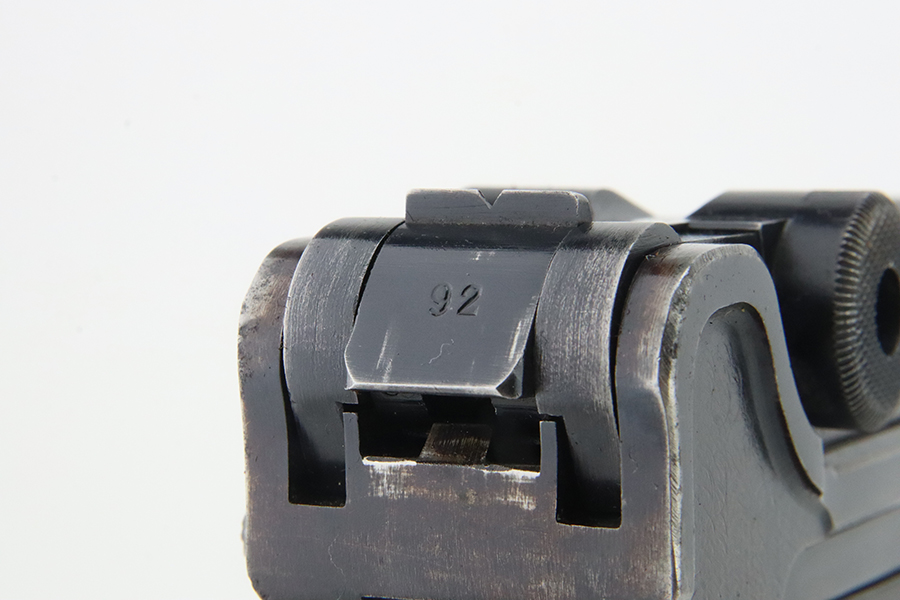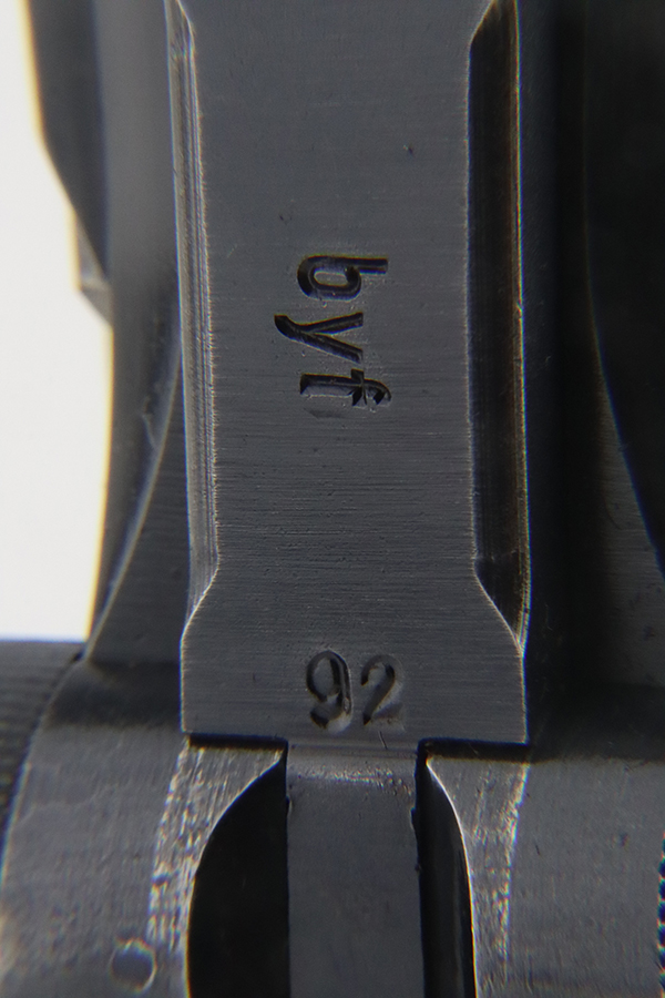 1/29/24 – This is an excellent example of a BYF 41 “Black Widow” Mauser Luger issued to the German military in 1941. It is all matching, has the proper “Eagle 135” military acceptance proofs, and fitted with an excellent set of original “Black Widow” bakelite grips. It comes as a rig with two original “Black Widow” magazines and a very nice 1942-dated holster. The gun itself has retained about 94-95% of its original finish. There is very minor general high edge wear, some muzzle wear, and a spot of wear at the base of the front strap. Minty bore.
