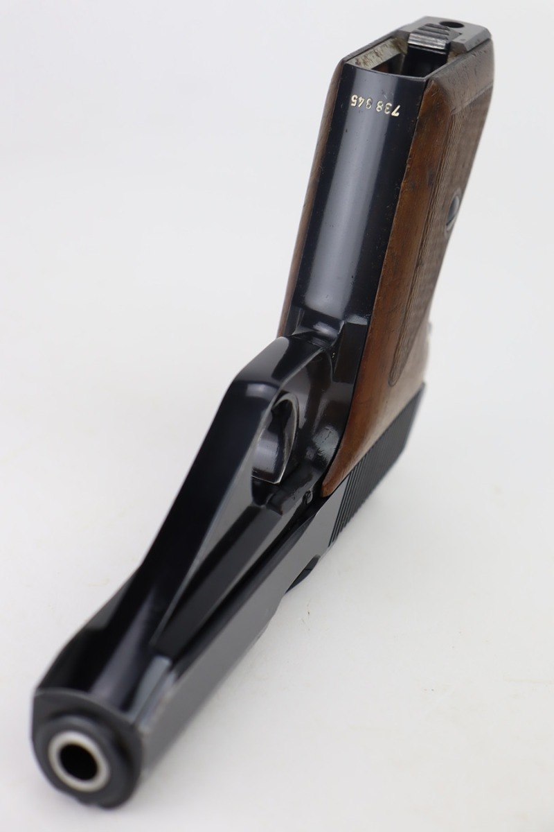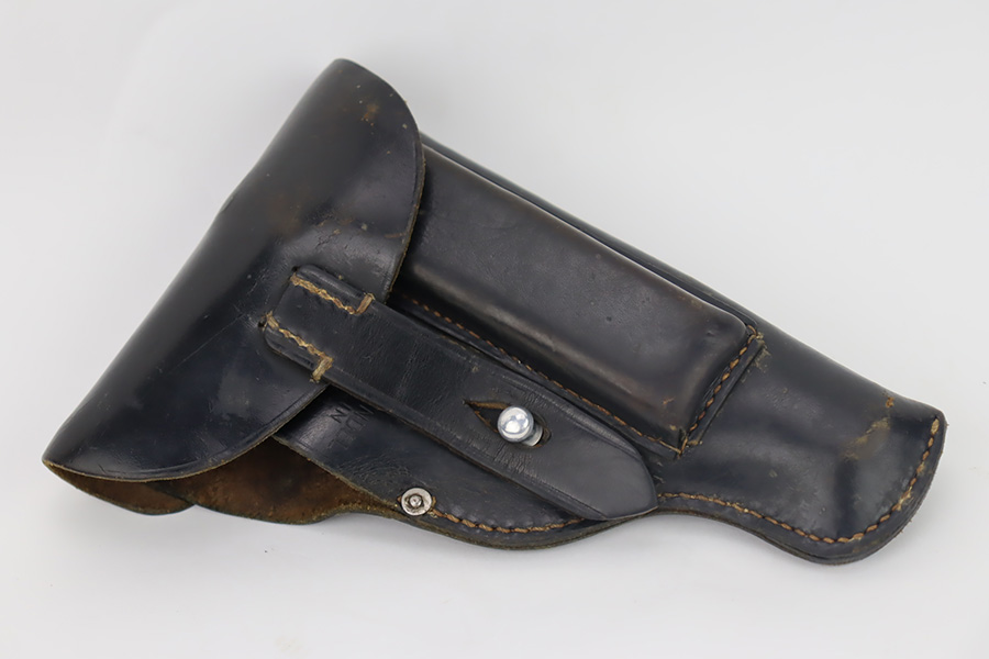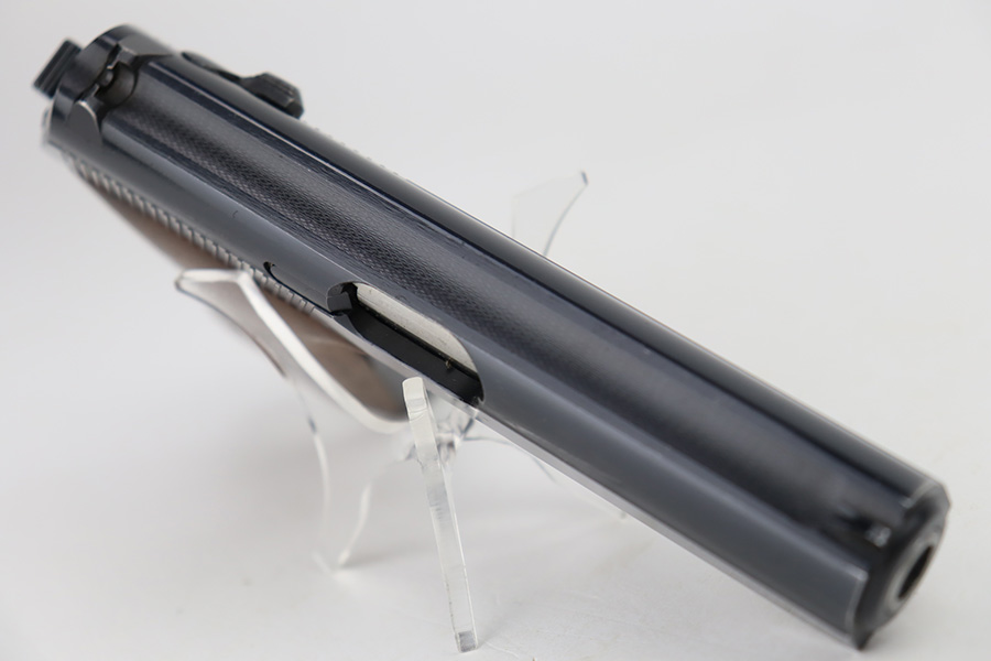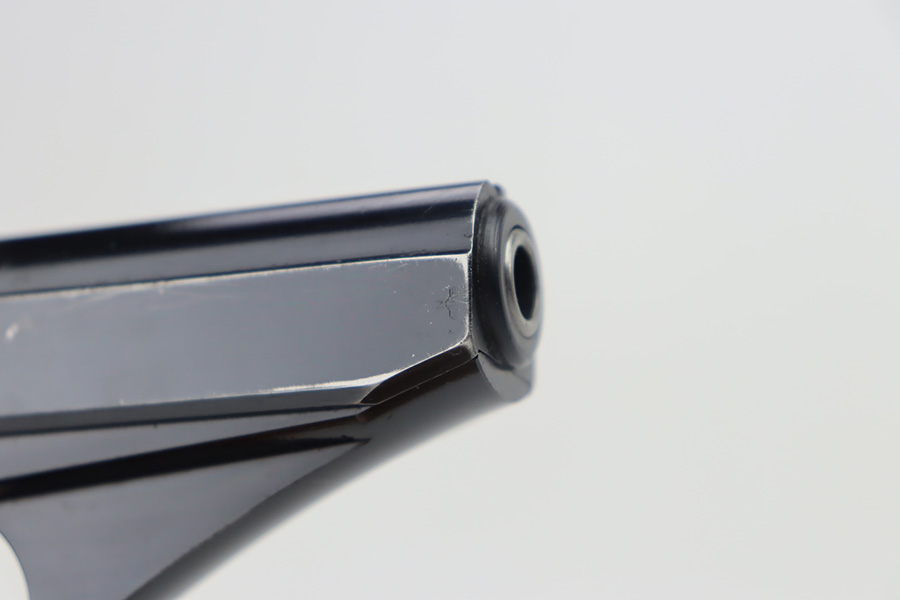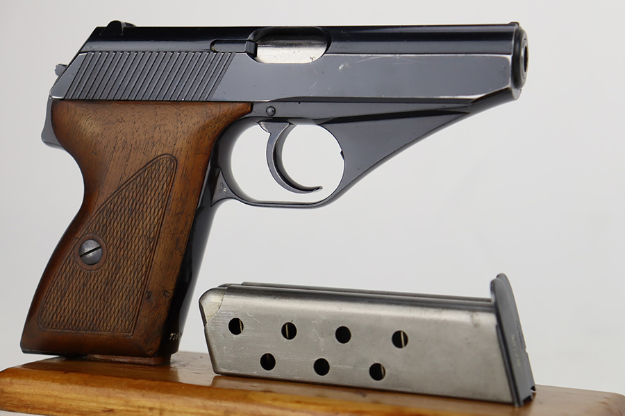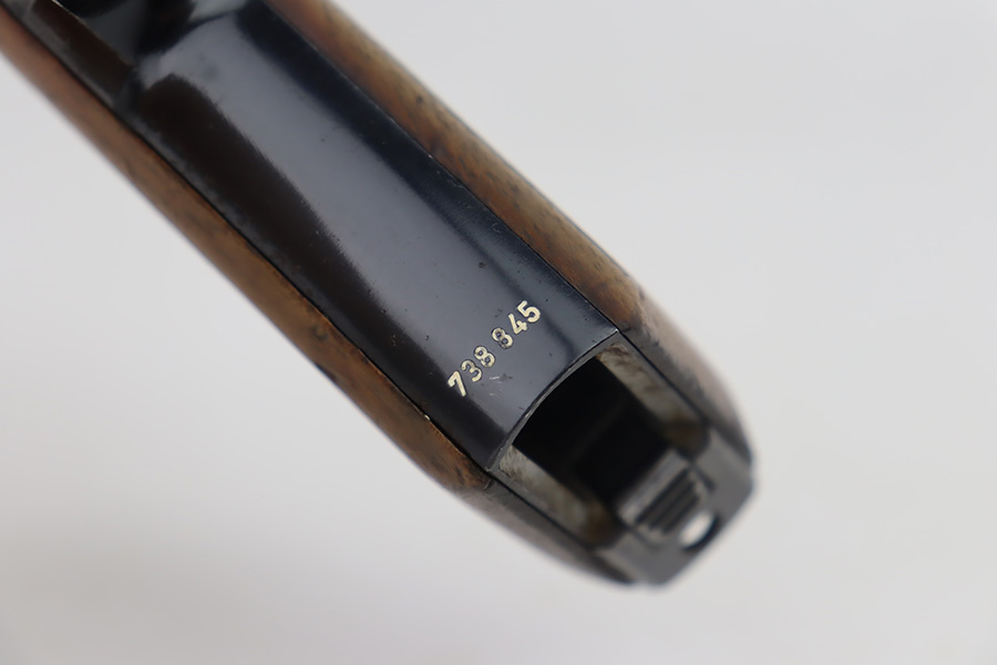 9/25/23 – This is an excellent example of a Mauser HSC issued to the Nazi police force in 1941. It is all matching and has the proper “Eagle L” police proof on the trigger guard. It comes as a rig with a really nice 1941-dated police holster and two Mauser banner magazines. The gun itself has retained about 97% of its original high polish finish. Just some very minor muzzle wear, a few light scratches on the right side of the slide, and one small area of very light freckling on the front strap. Very nice period-correct wood grips. Mint bore.