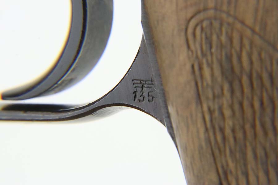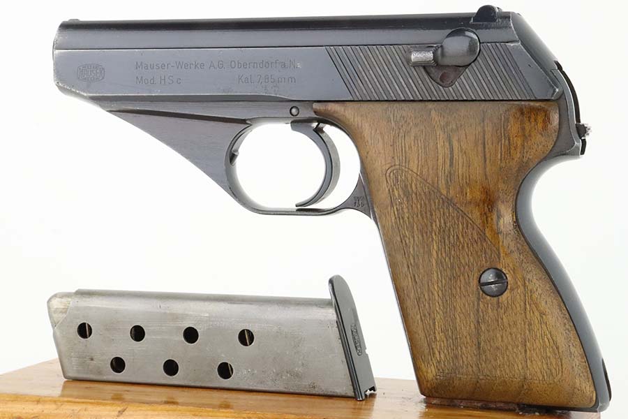 3/12/24 – This is an excellent example of a Mauser HSC issued to the Nazi military in 1942. All matching with the proper “Eagle 135” military acceptance proof. It has retained about 97% of its original finish with just very minor muzzle wear and a light streak of wear on the front strap. Some very light freckling on the front strap as well. Fitted with period-correct grips and comes with a proper magazine. Mint bore.