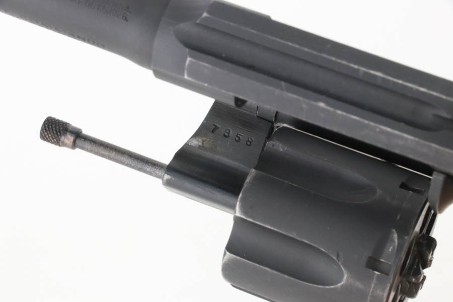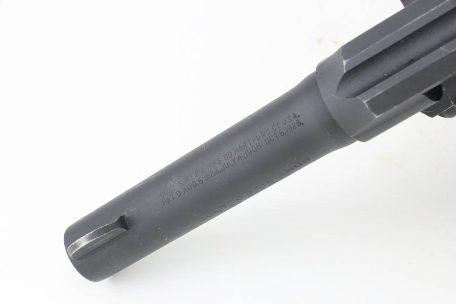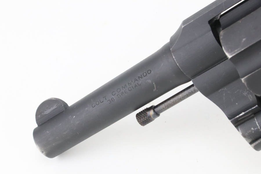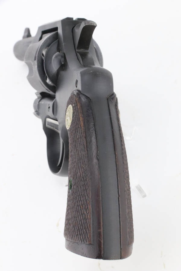 10/7/24 – This is an excellent Colt Commando Revolver issued to the US military in 1942. It is matching and with a small flaming bomb military proof on the left side of the frame. The original parkerized finish rates about 97% with very minor muzzle and high edge wear and tiny surface scuffs throughout. Fitted with period-correct wood grips. Mint bore.