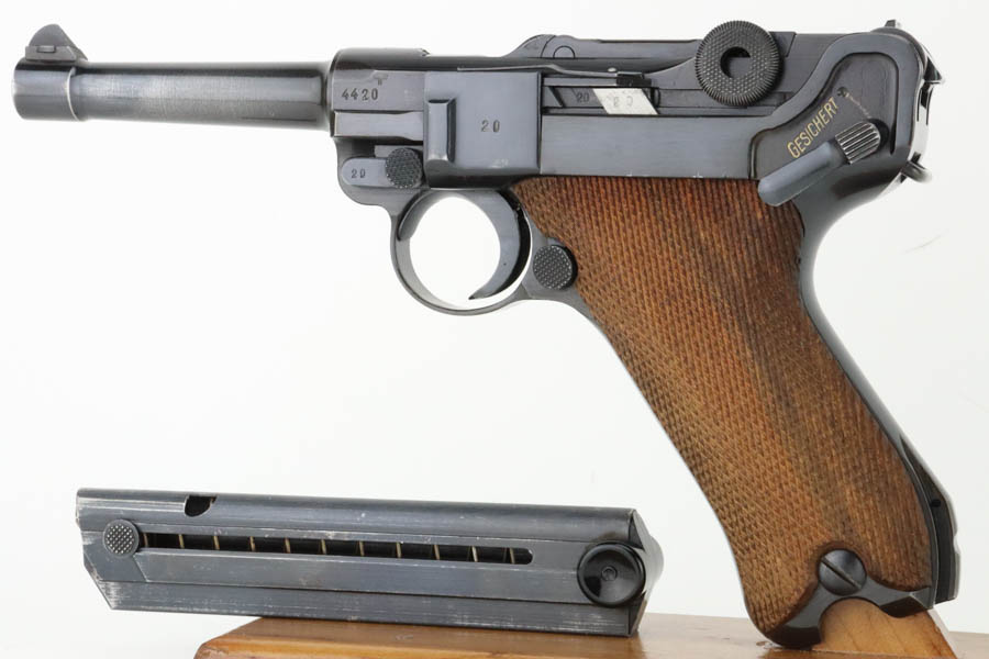 SOLD – Excellent 1942 Police Eagle/L Banner Mauser Luger