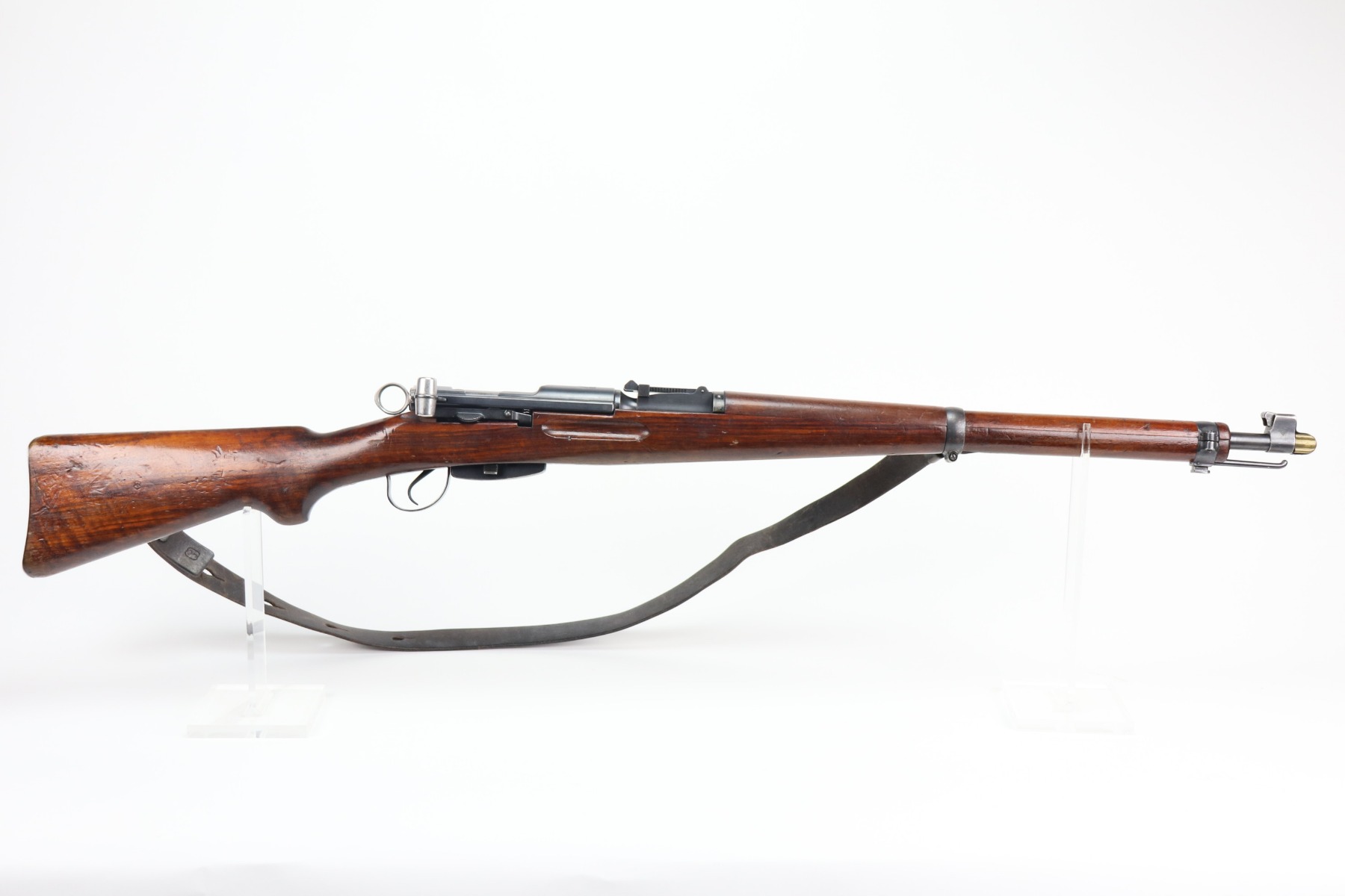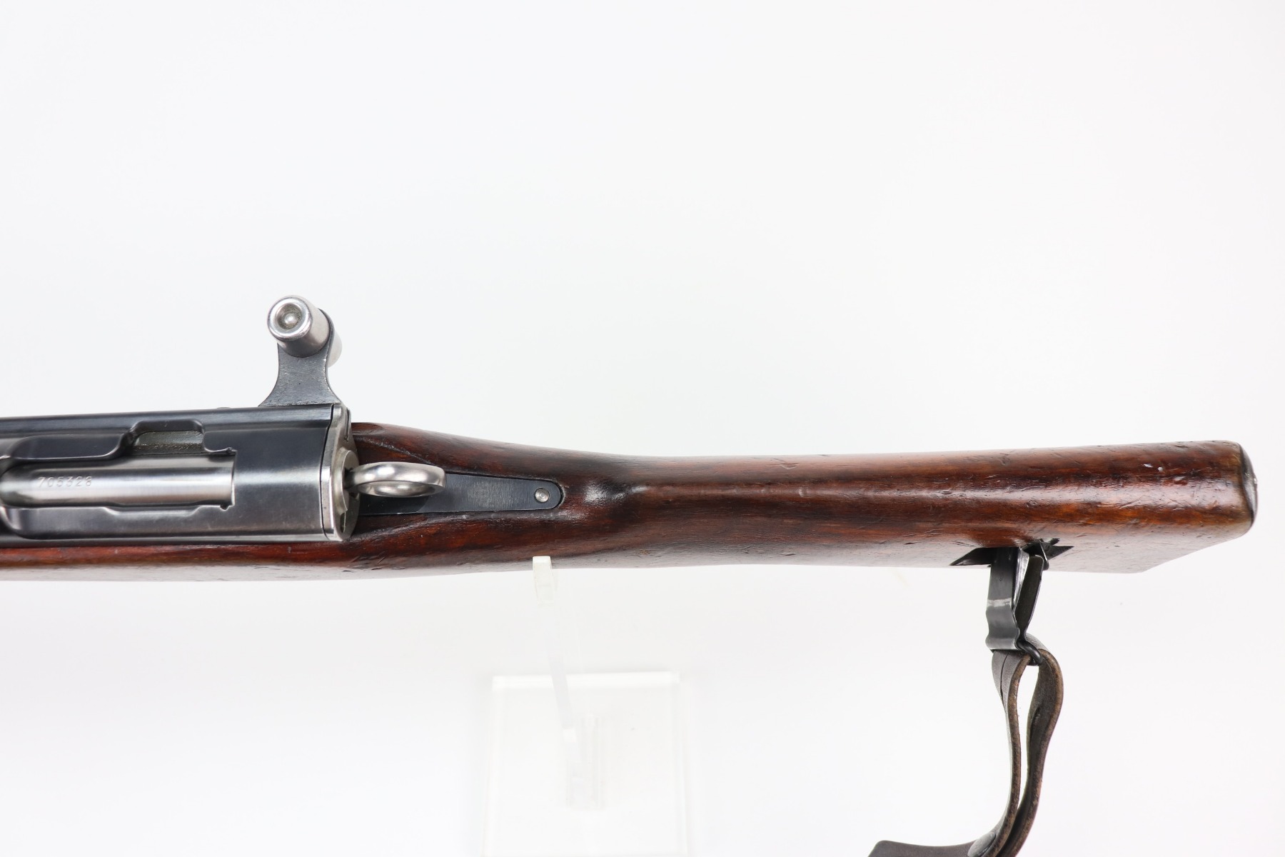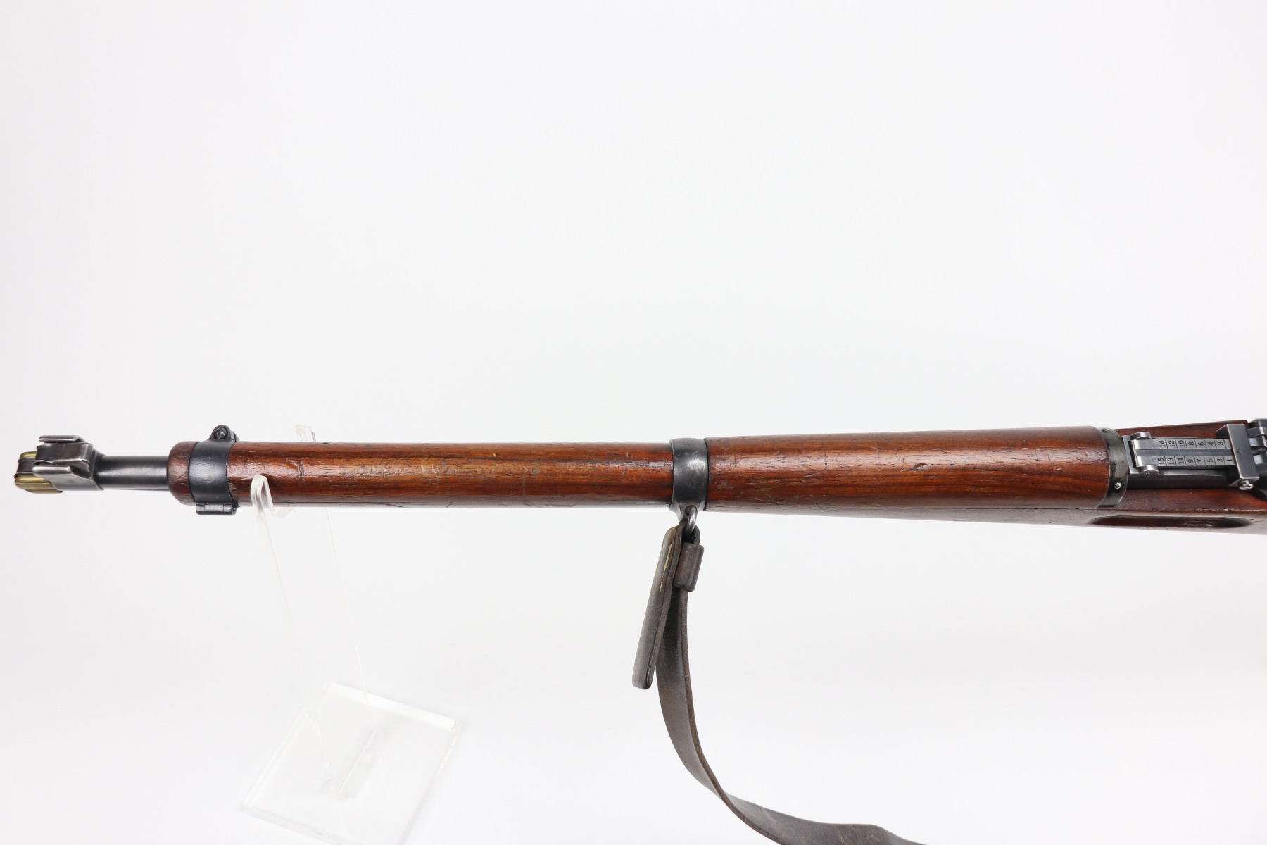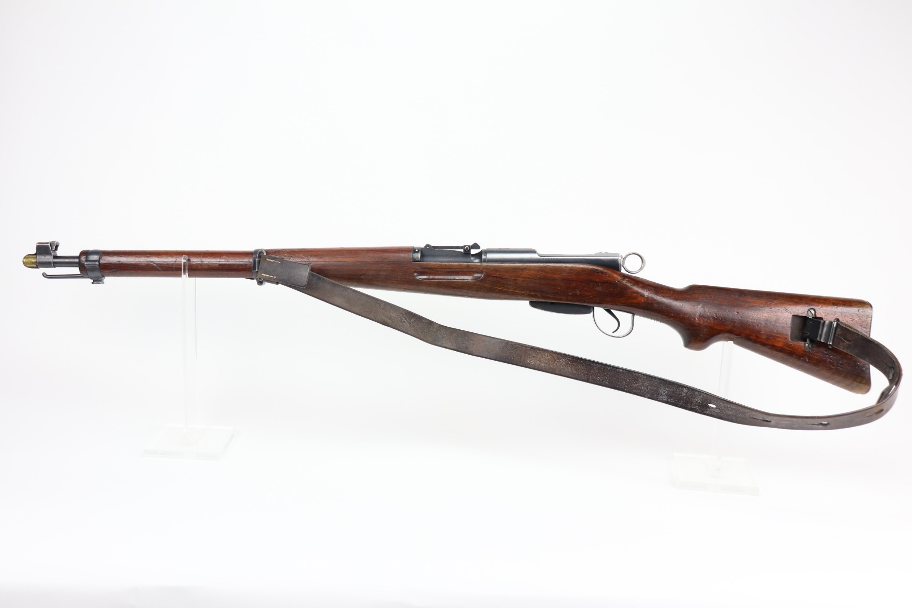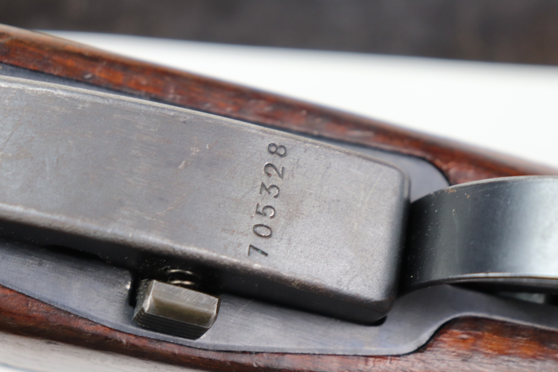 2/22/21 – This is an excellent example of a Waffenfabrik Bern Model K31 issued to the Swiss armed forces in 1942. This one is all matching and has a Swiss cross and shield on the receiver. It comes with an original muzzle cover and leather sling. There is an import mark on the left side of the receiver. The metal parts are excellent, retaining most of their finish. There is minor wear and handling marks on some of the high edges. The stock is very nice with minor dings, dents, and bruises throughout. The bore is excellent – shiny with strong rifling.